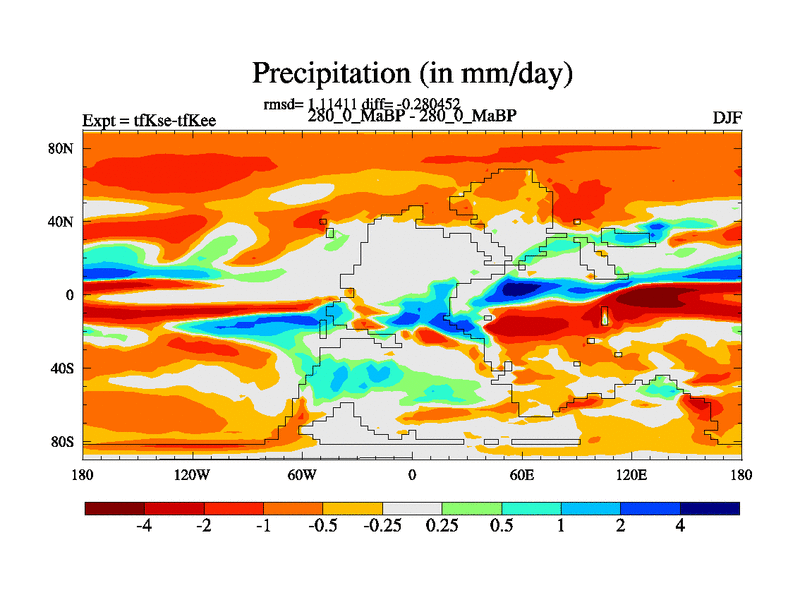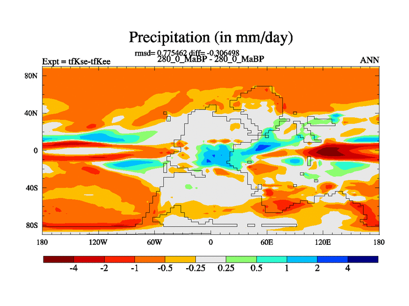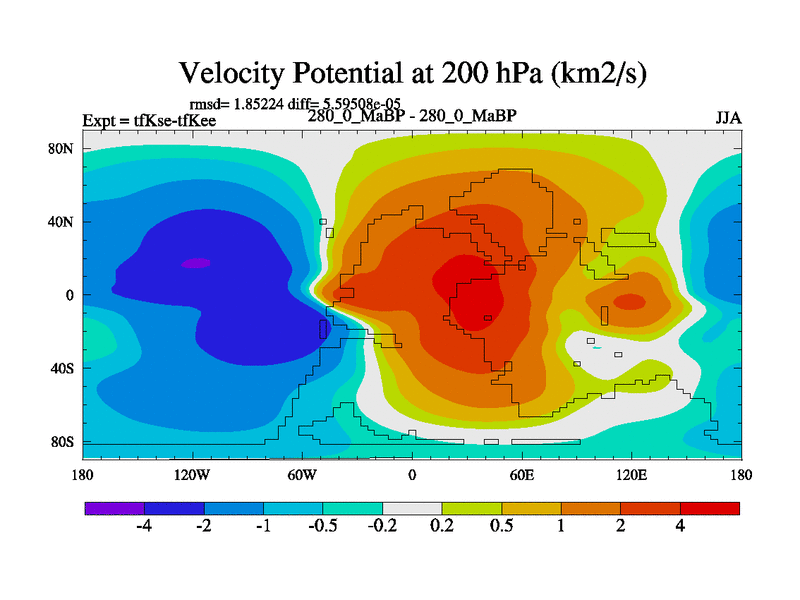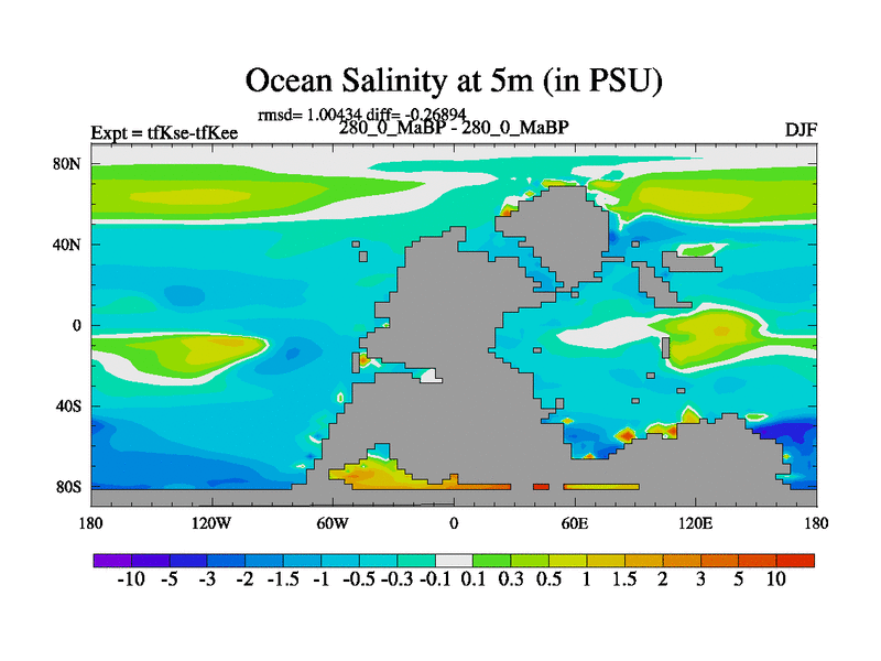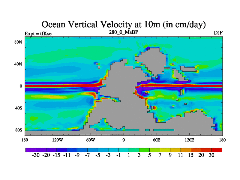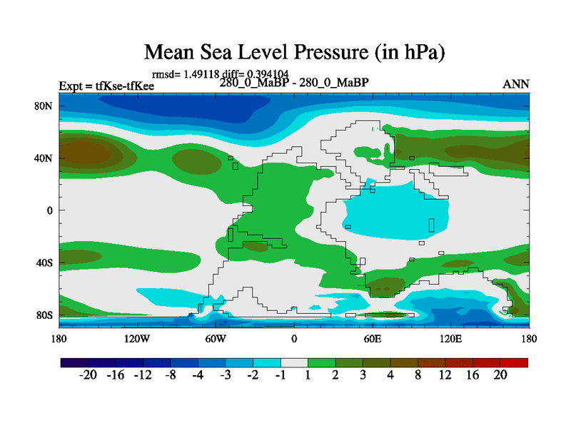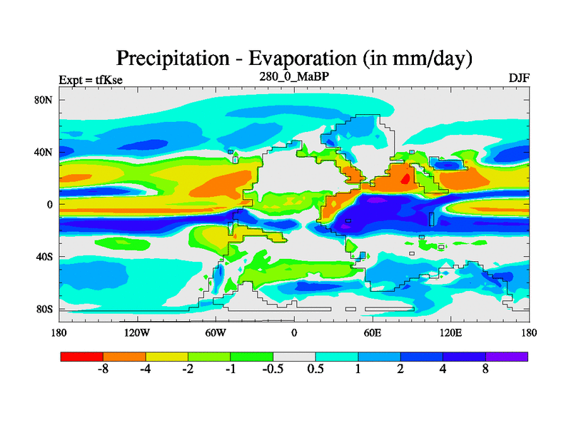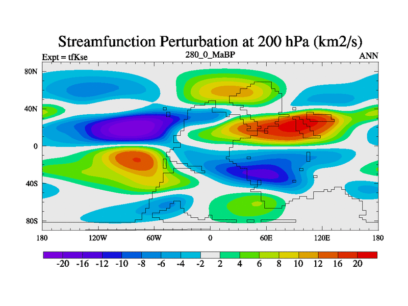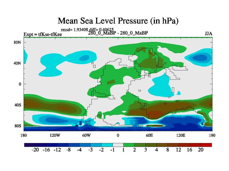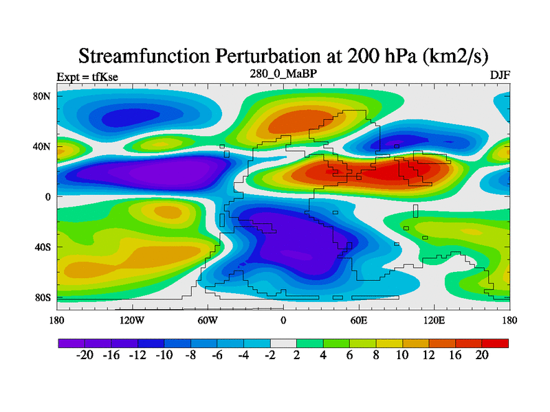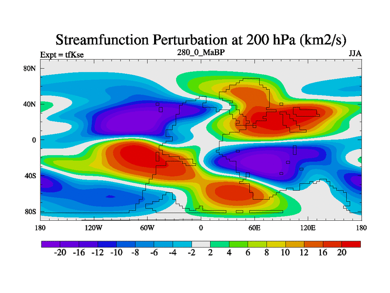 This is the 280.0 Ma simulation using the Scotese palaeogeographies and revised CCN etc. This version has islands and smoothing and desert albedo included. Tuned CO2 to give Scotese temperatures. Started from end of tfKee.