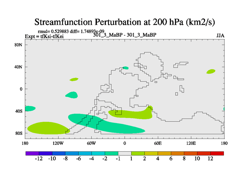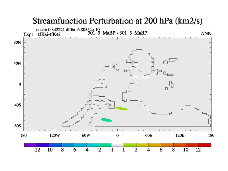 Scientifically as benchmark except using water age update, dark respiration, salinity conservation and revised ozone. Also using new orbital and solar update, and outputting leaf CO2. This version has islands included and atmospheric smoothing and desert albedo. Tuned CO2 to give Scotese temperatures. Started from end of tfKei.