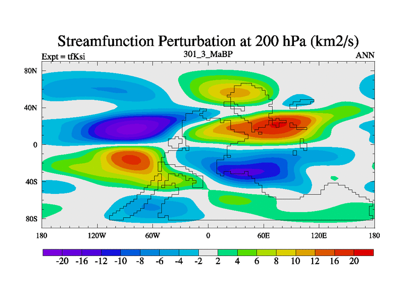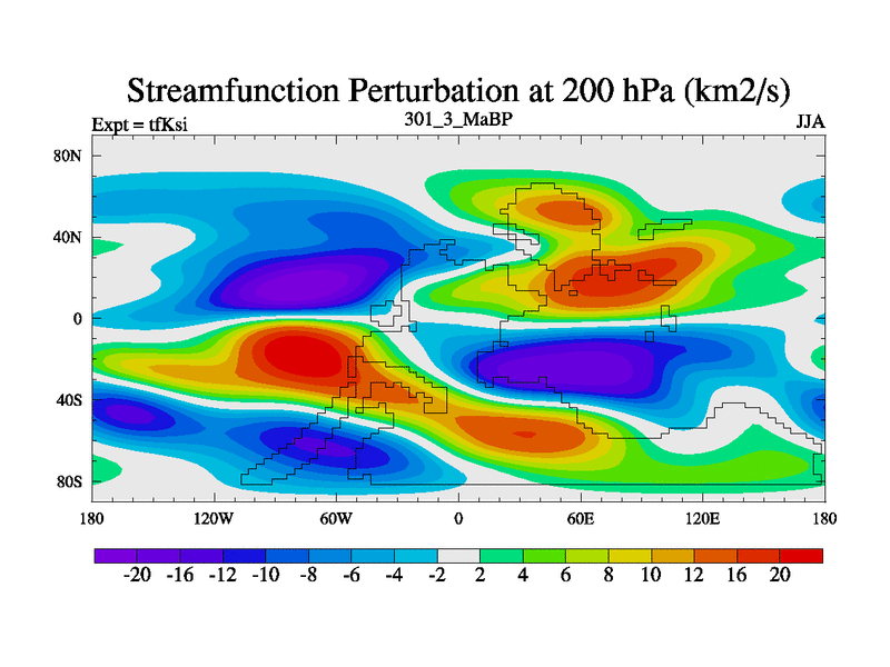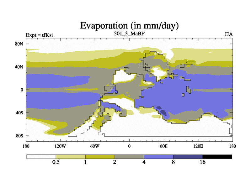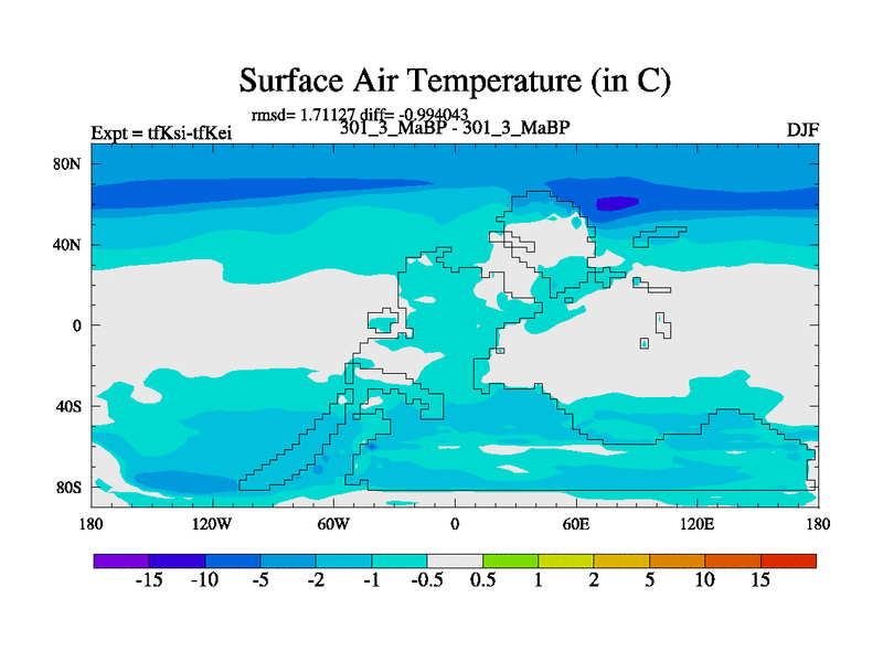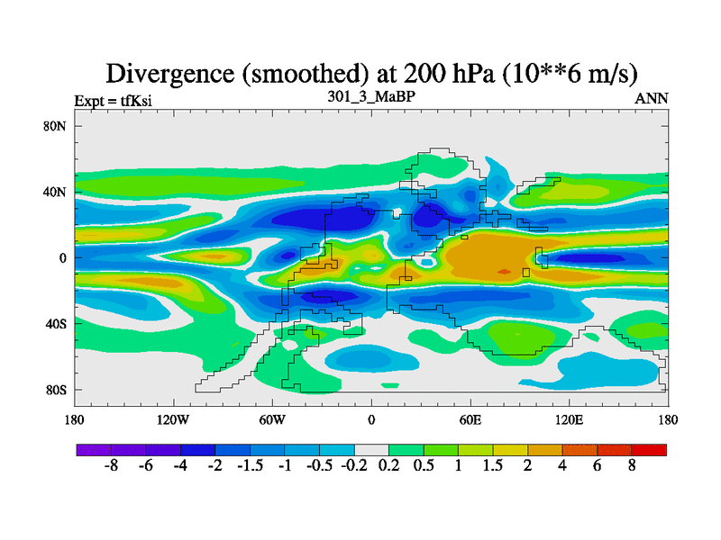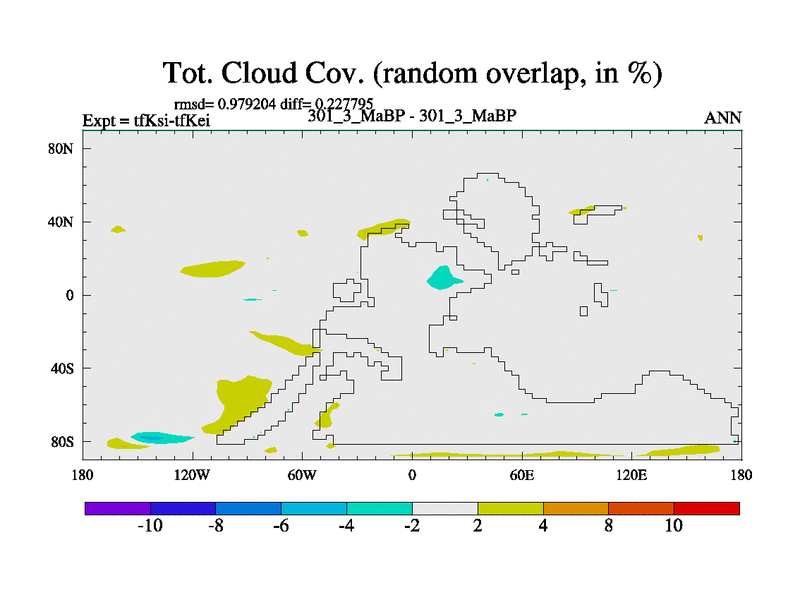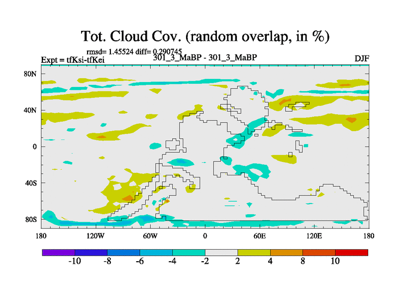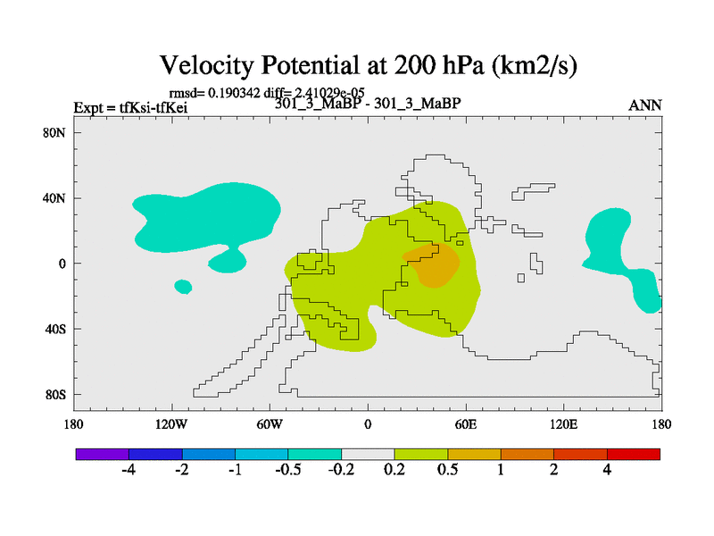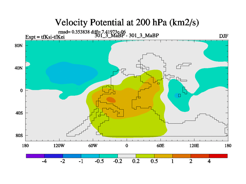 This is the 301.3 Ma simulation using the Scotese palaeogeographies and revised CCN etc. This version has islands and smoothing and desert albedo included. Tuned CO2 to give Scotese temperatures. Started from end of tfKei.