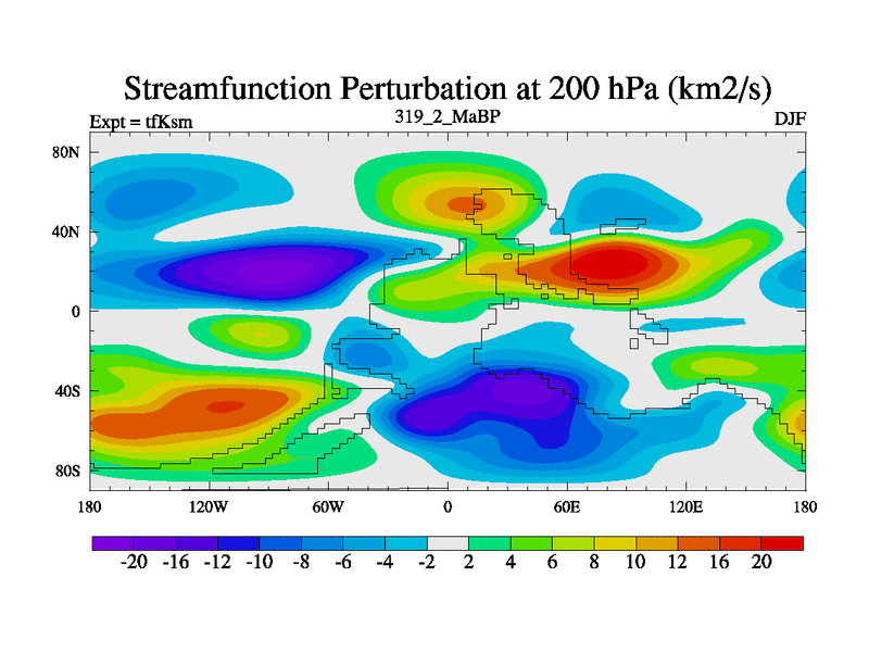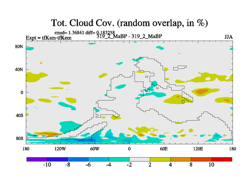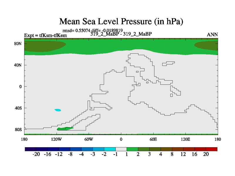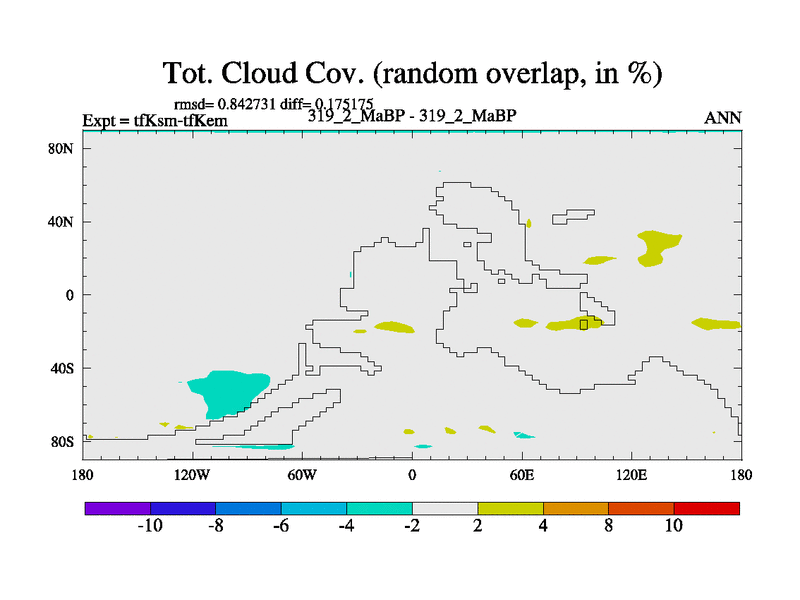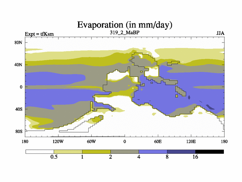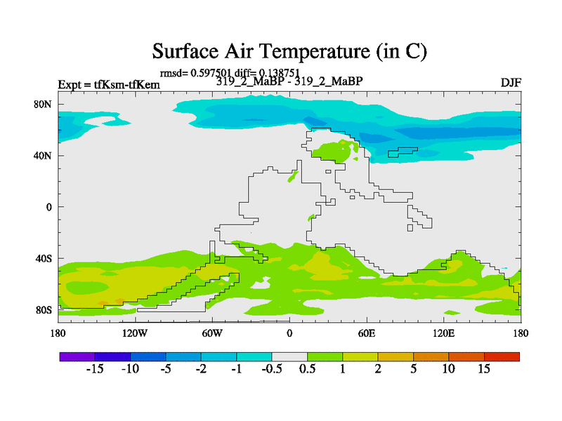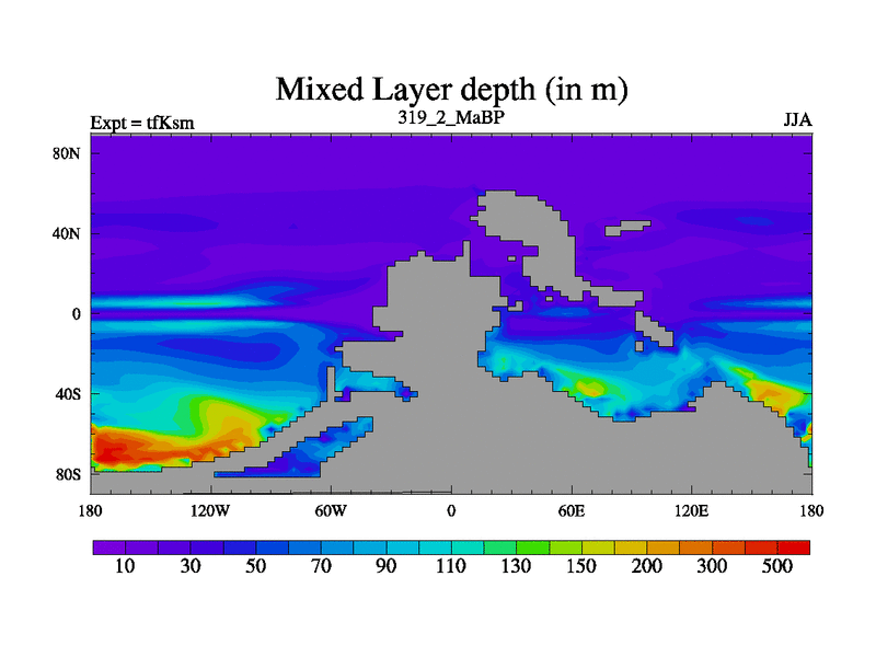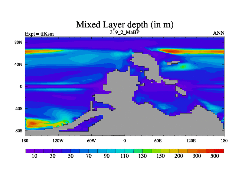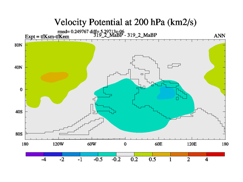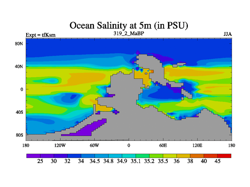 This is the 319.2 Ma simulation using the Scotese palaeogeographies and revised CCN etc. This version has islands and smoothing and desert albedo included. Tuned CO2 to give Scotese temperatures. Started from end of tfKem.