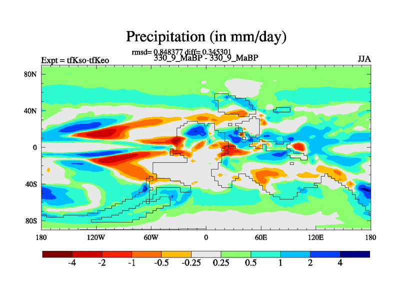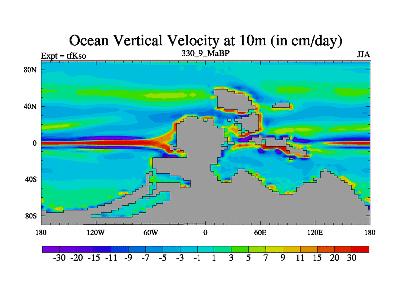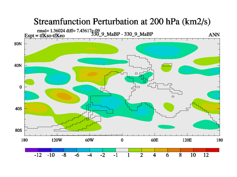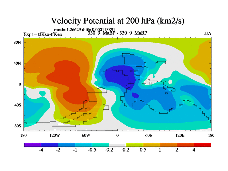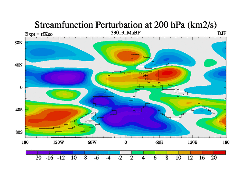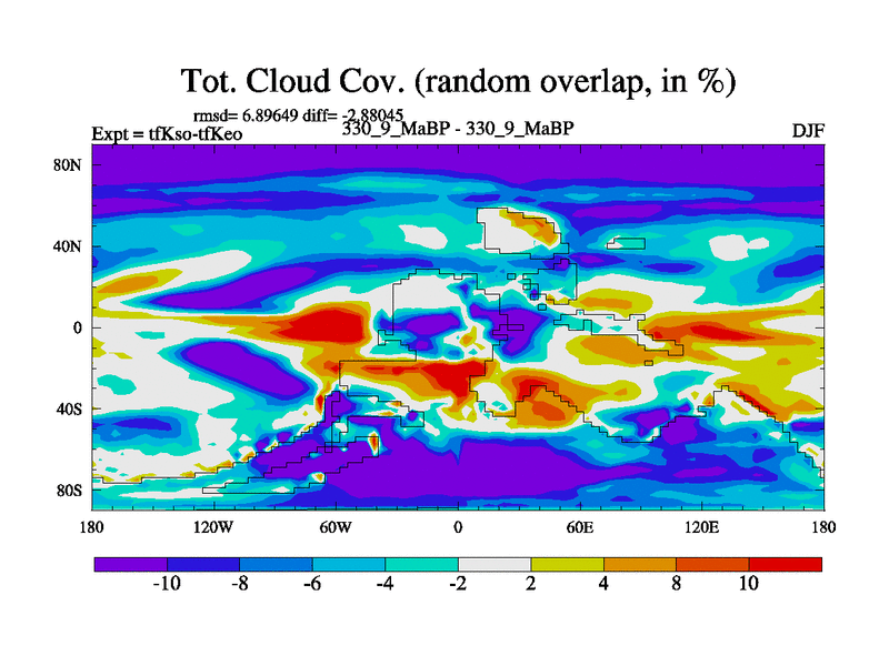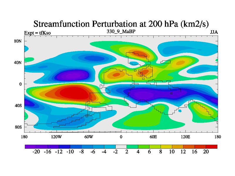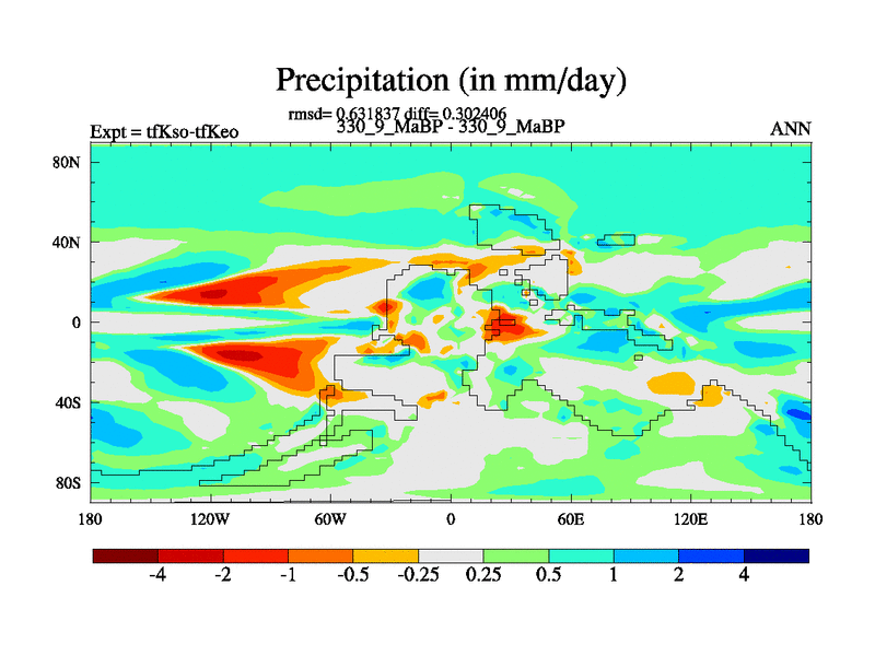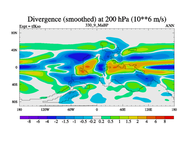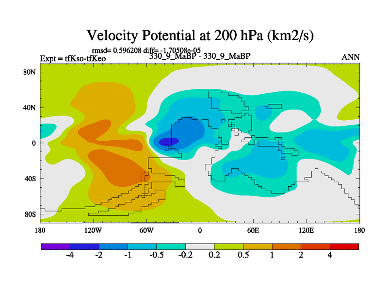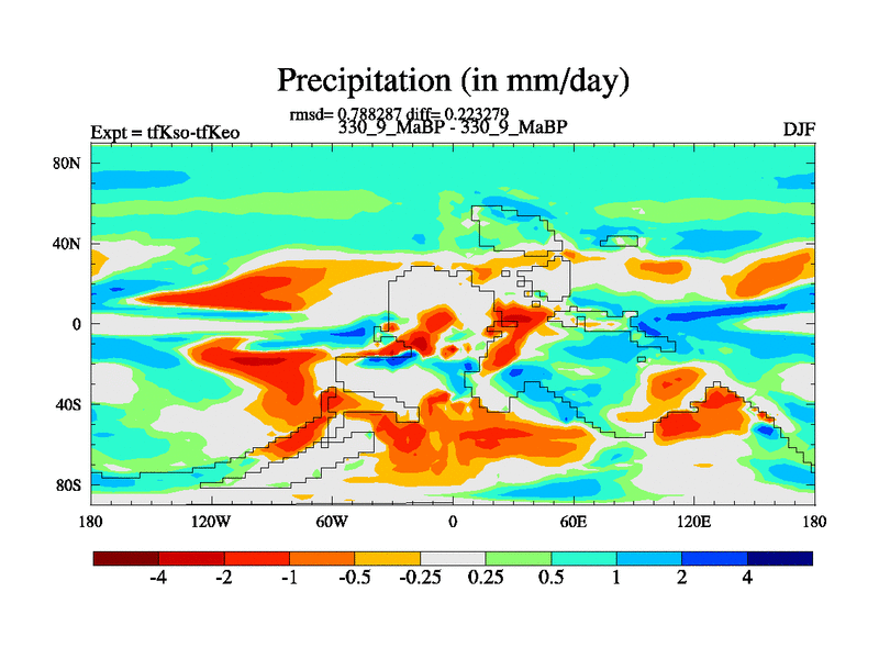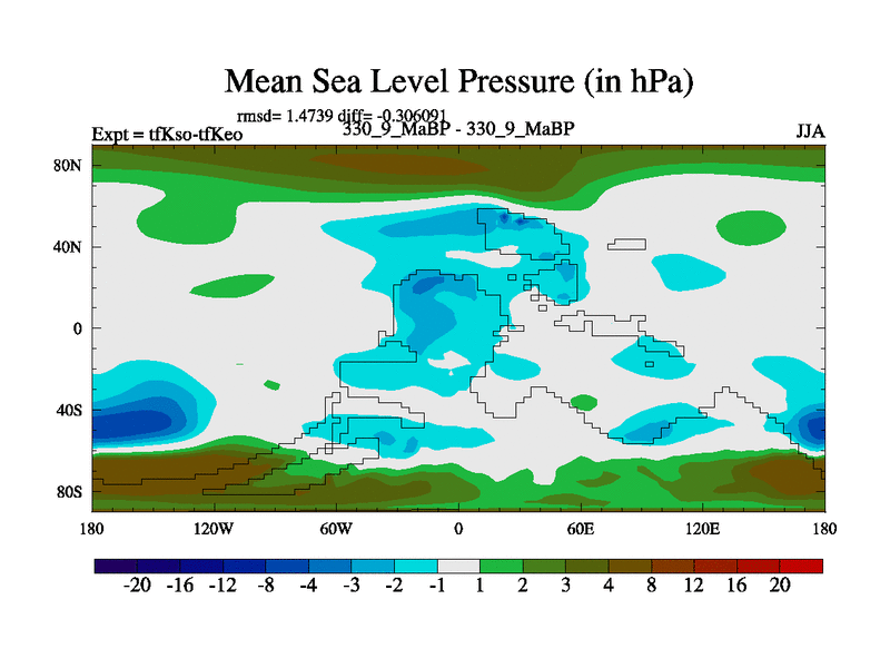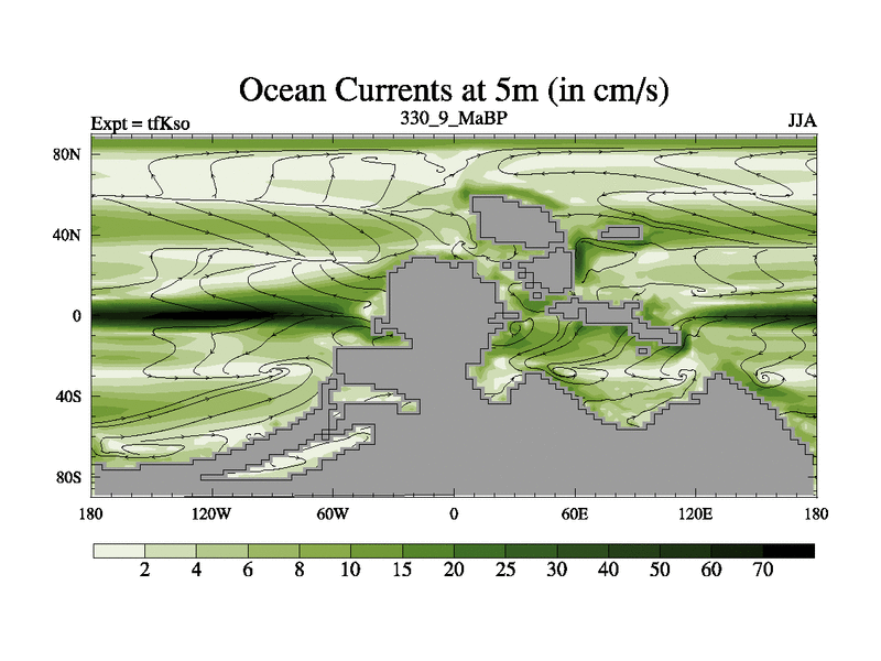 This is the 330.9 Ma simulation using the Scotese palaeogeographies and revised CCN etc. This version has islands and smoothing and desert albedo included. Tuned CO2 to give Scotese temperatures. Started from end of tfKeo.