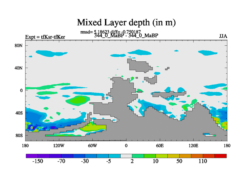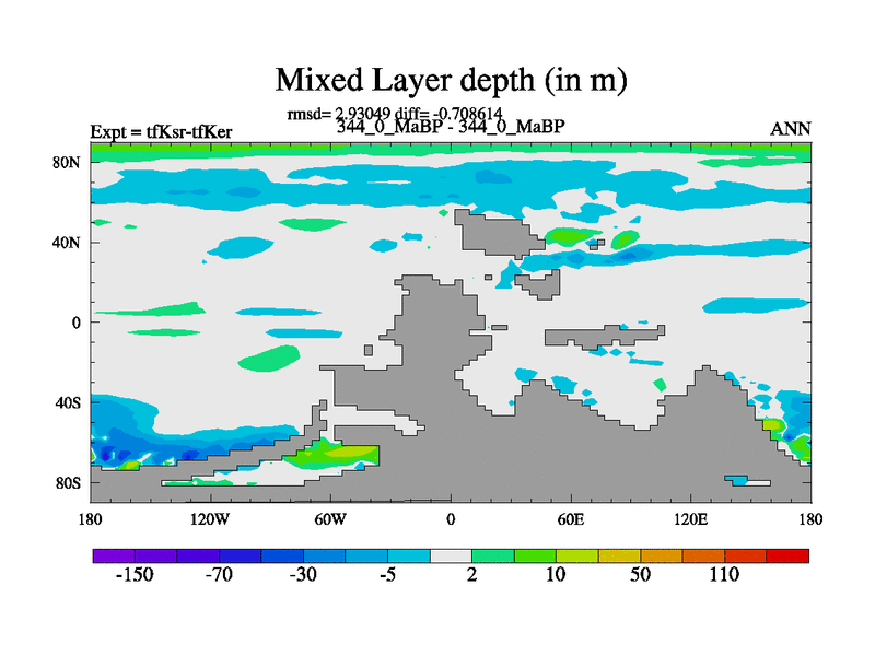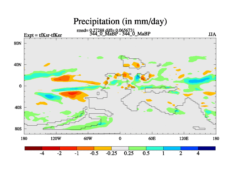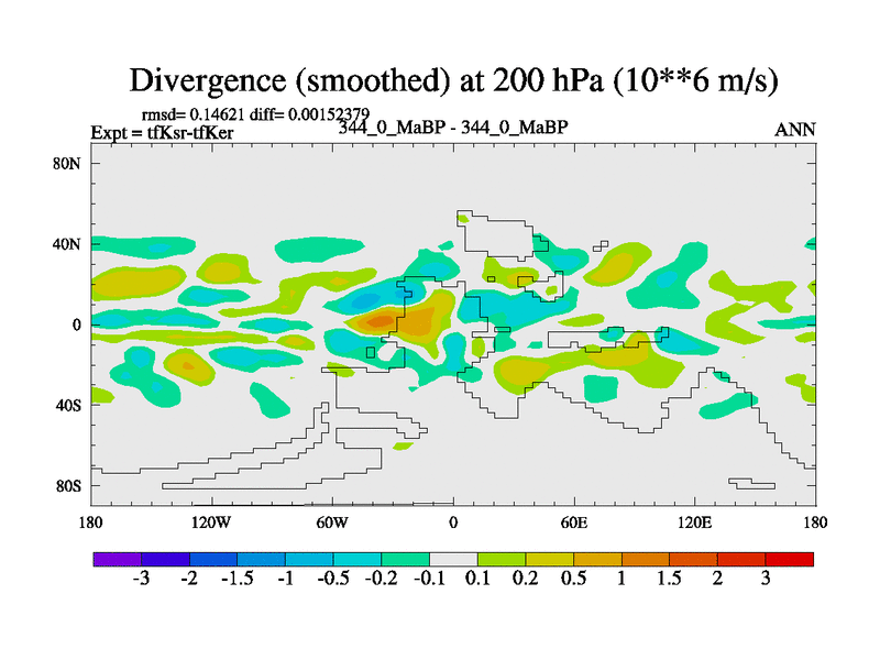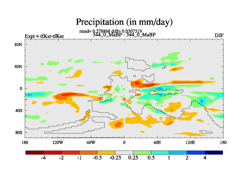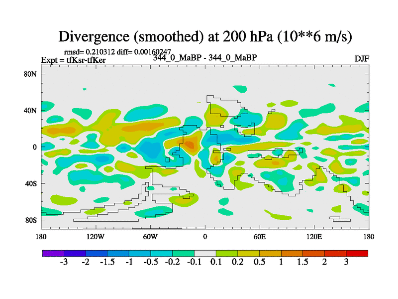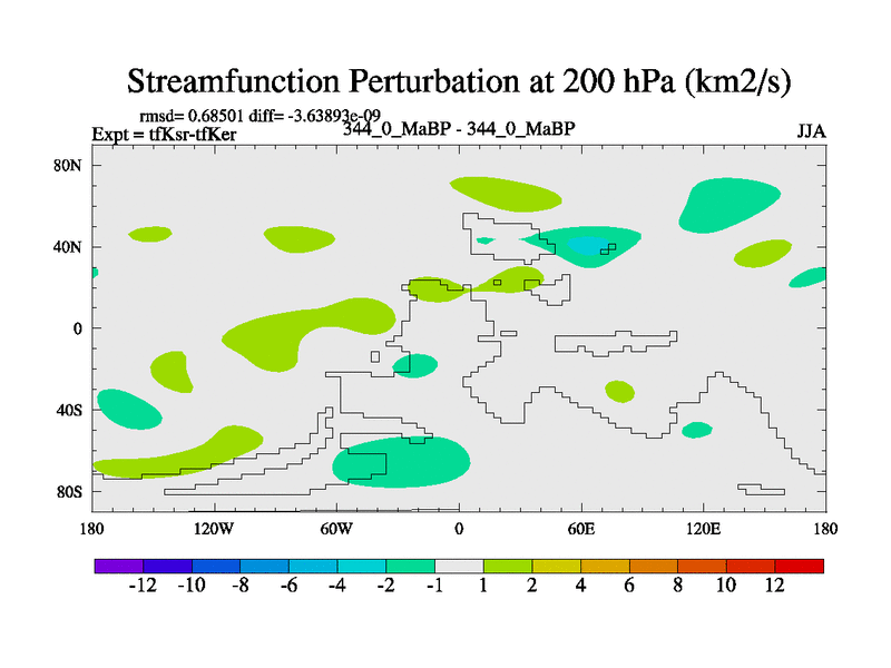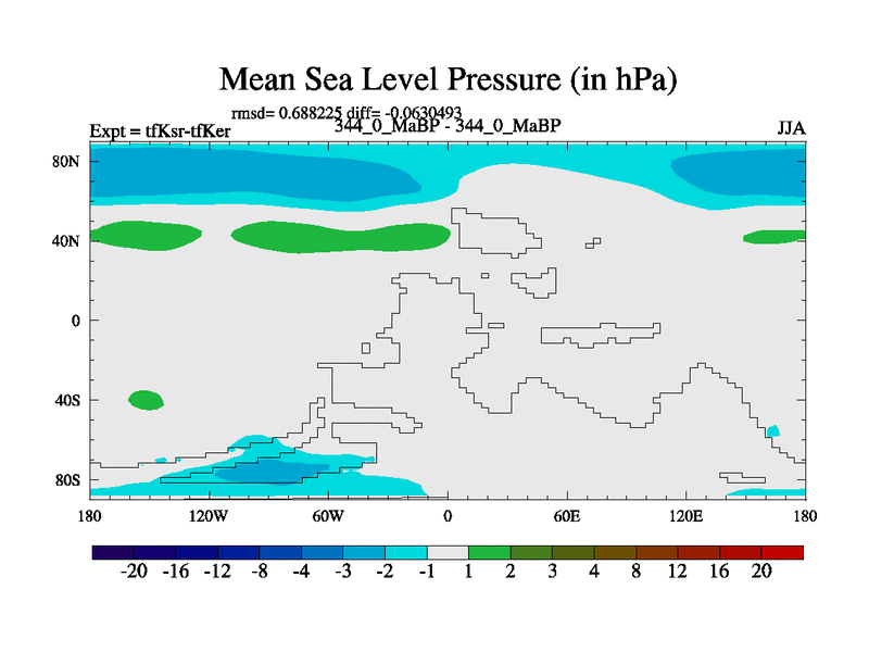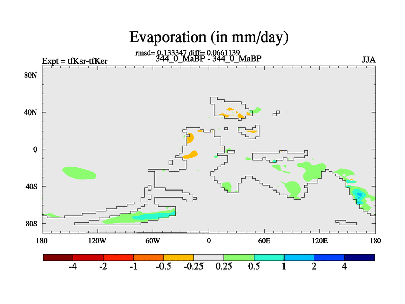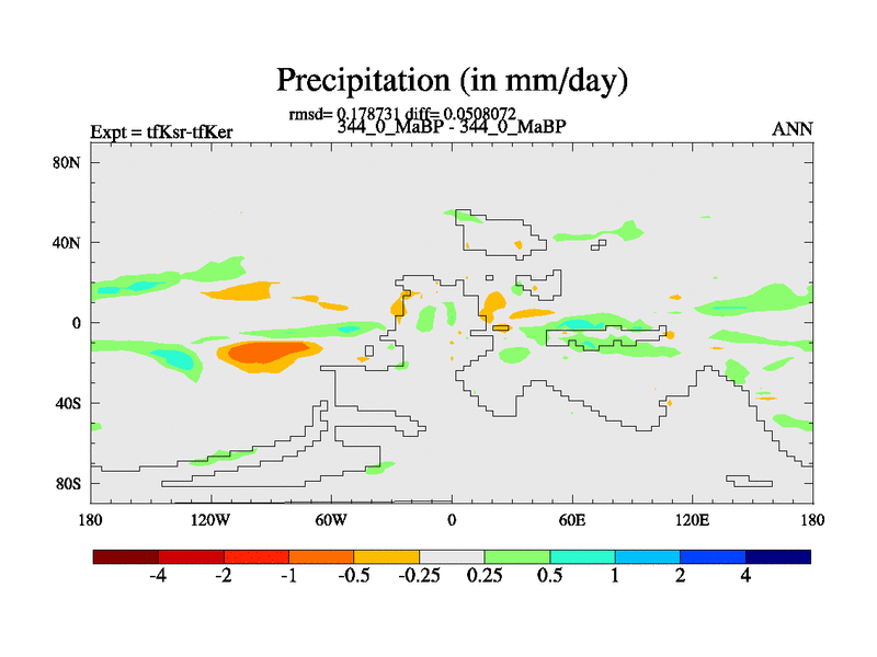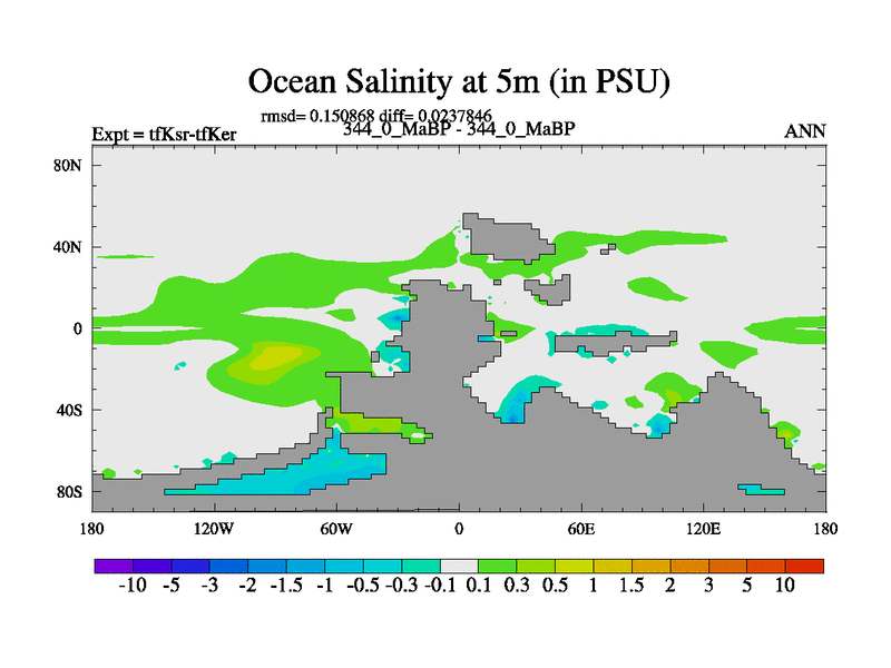 This is the 344.0 Ma simulation using the Scotese palaeogeographies and revised CCN etc. This version has islands and smoothing and desert albedo included. Tuned CO2 to give Scotese temperatures. Started from end of tfKer.