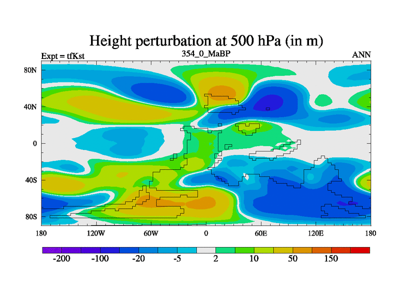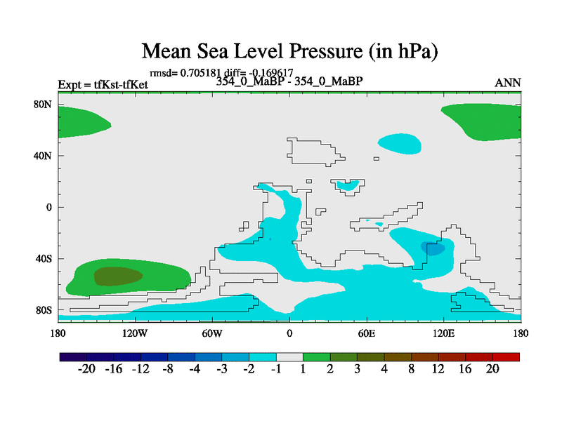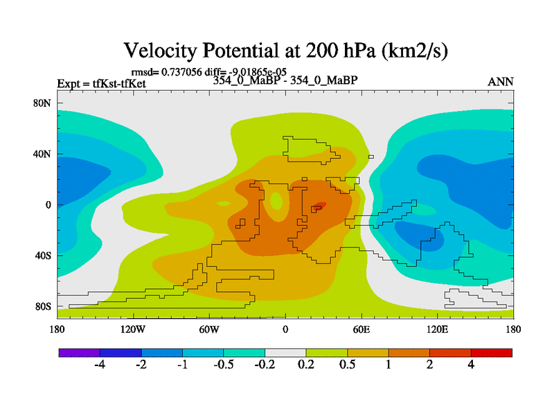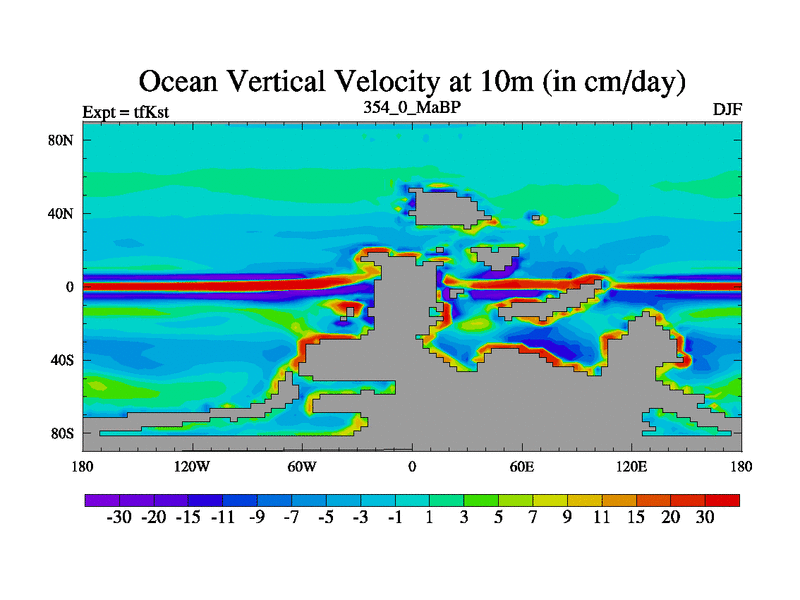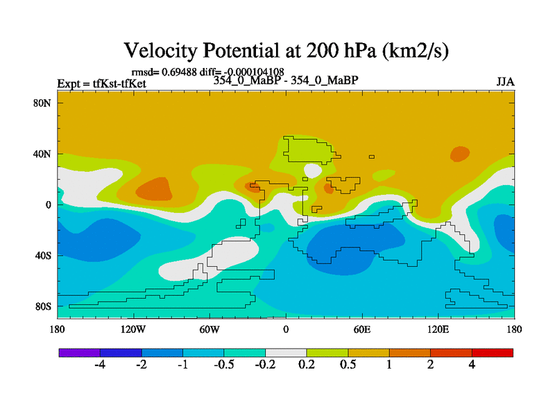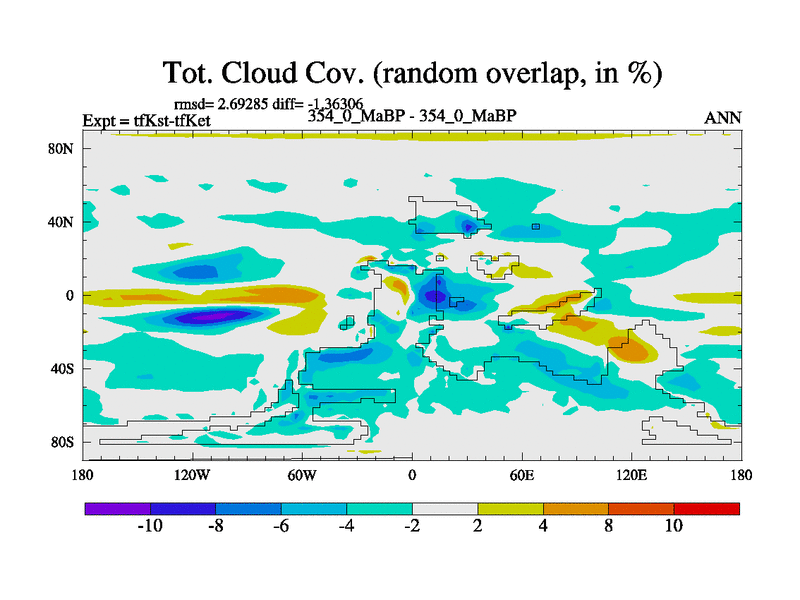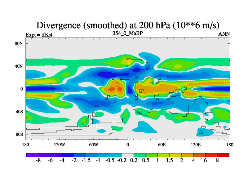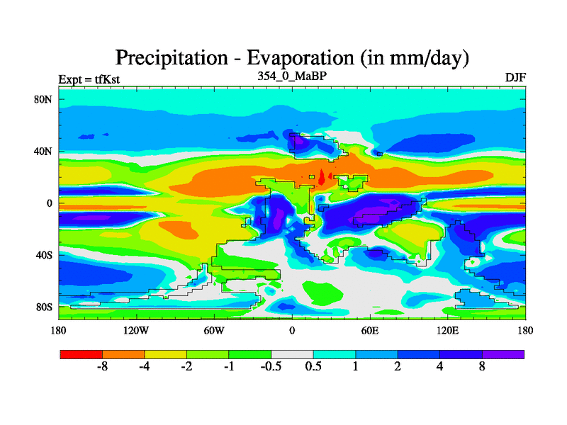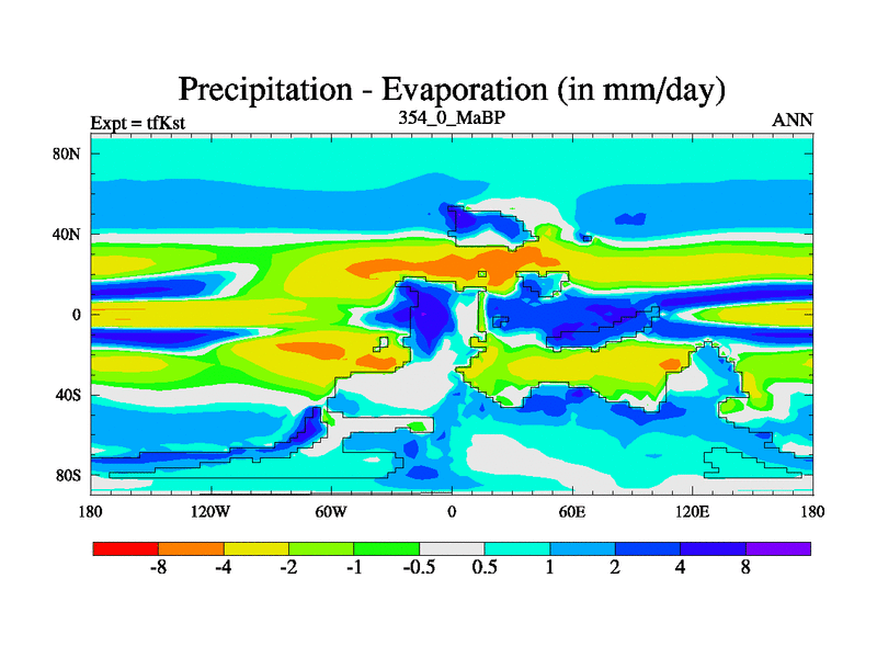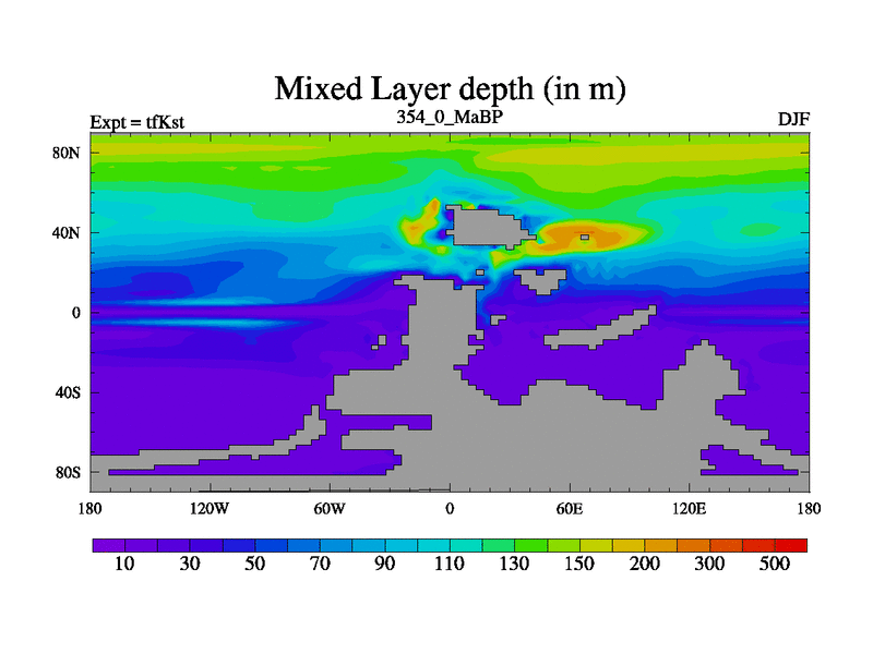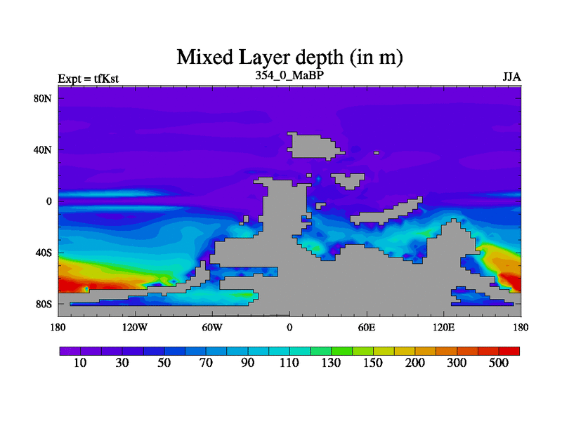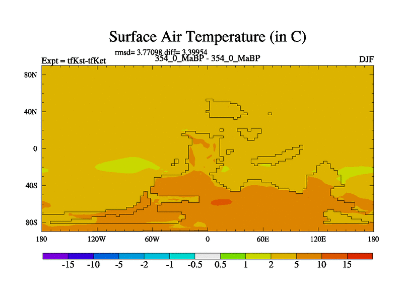 This is the 354.0 Ma simulation using the Scotese palaeogeographies and revised CCN etc. This version has islands and smoothing and desert albedo included. Tuned CO2 to give Scotese temperatures. Started from end of tfKet.