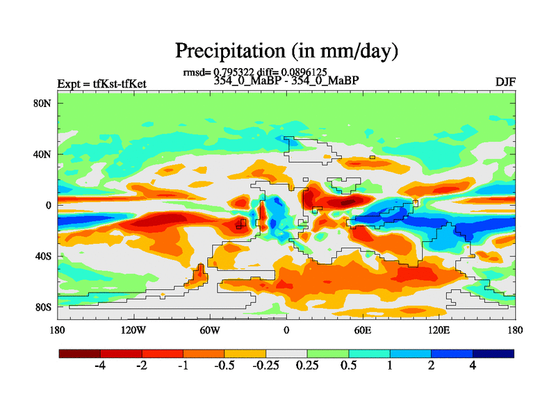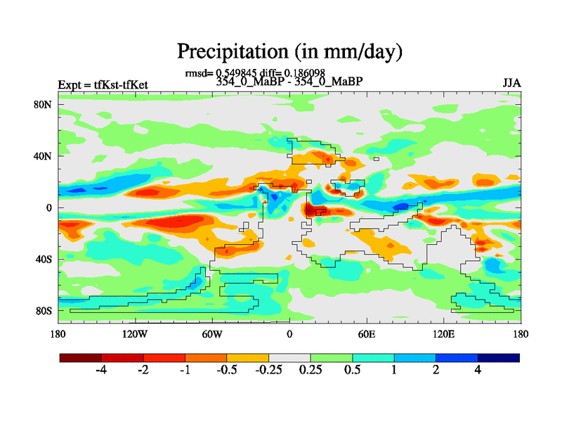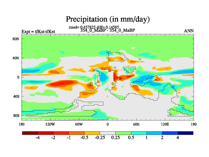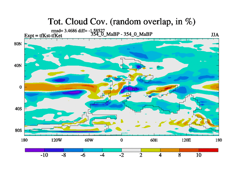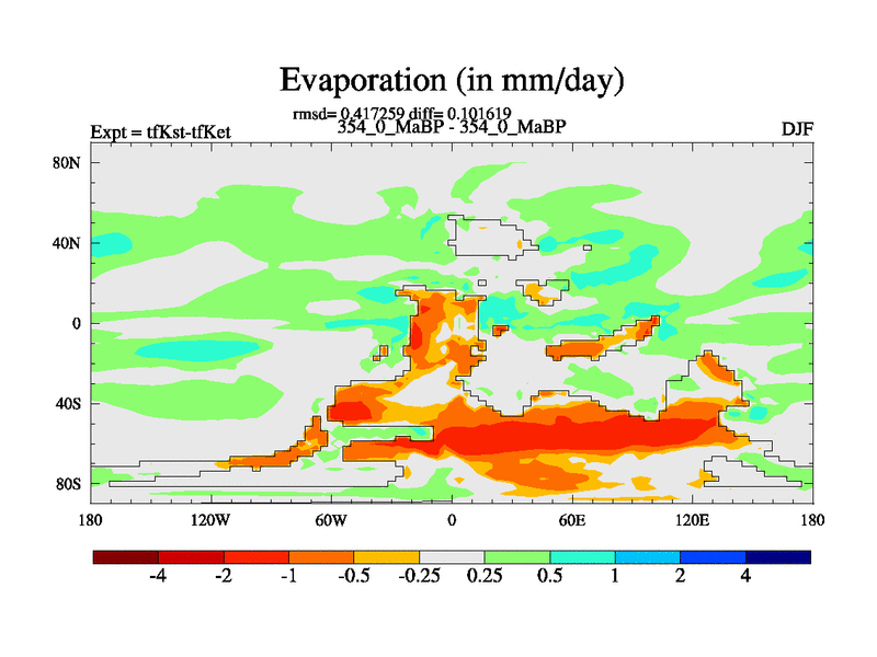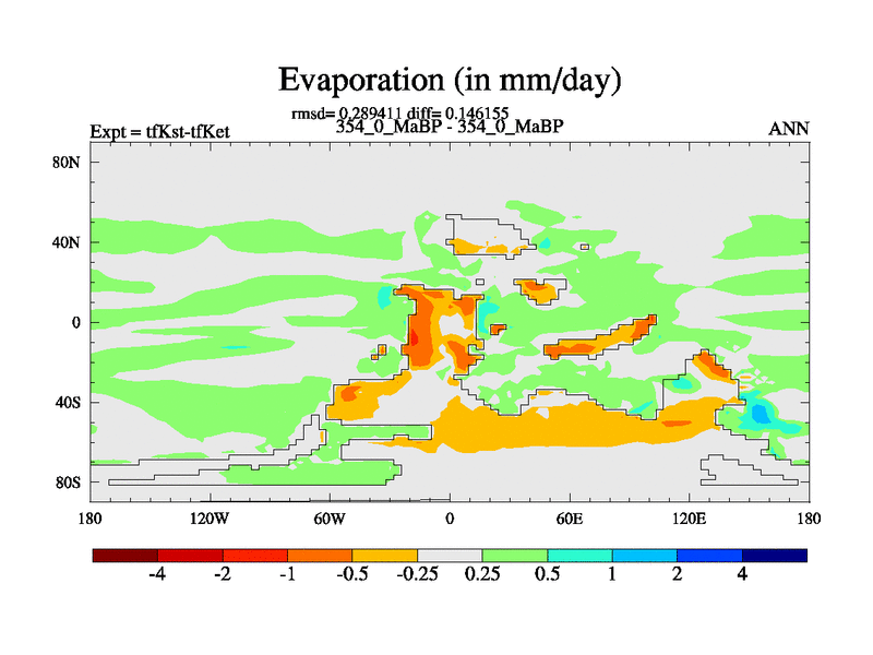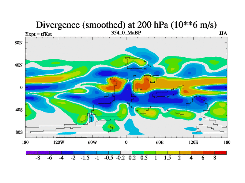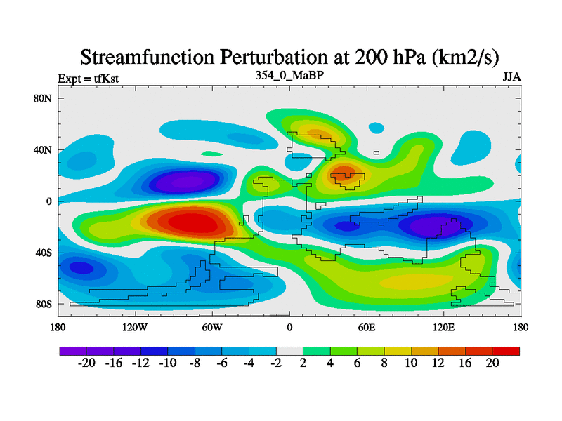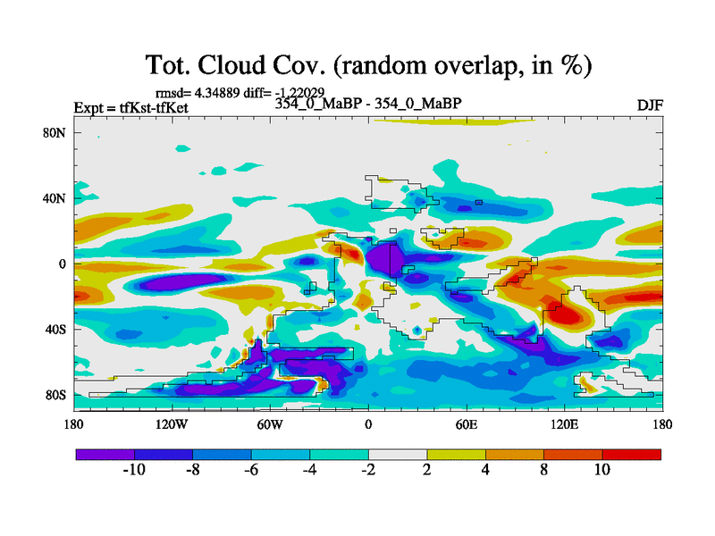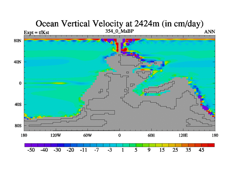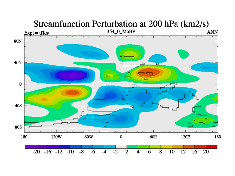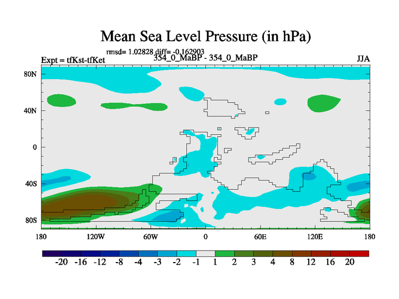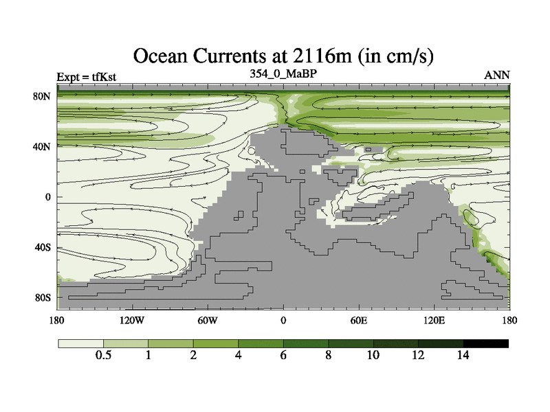 This is the 354.0 Ma simulation using the Scotese palaeogeographies and revised CCN etc. This version has islands and smoothing and desert albedo included. Tuned CO2 to give Scotese temperatures. Started from end of tfKet.