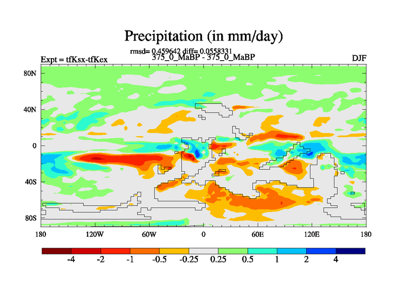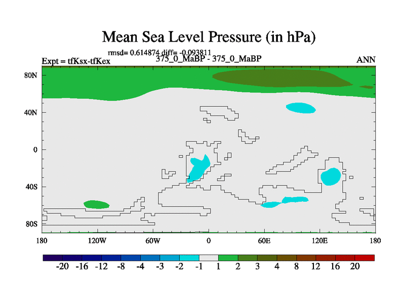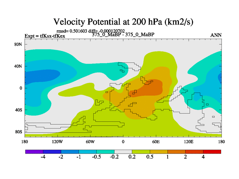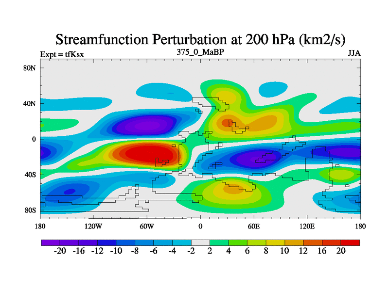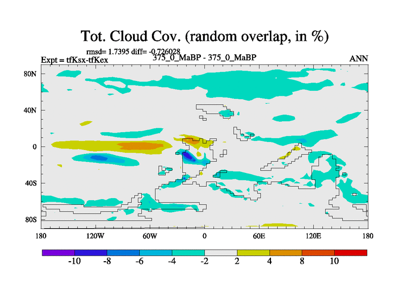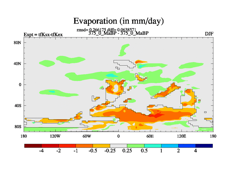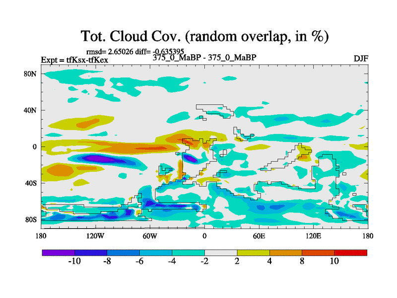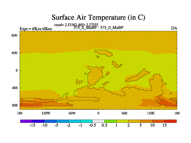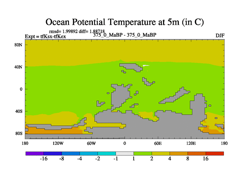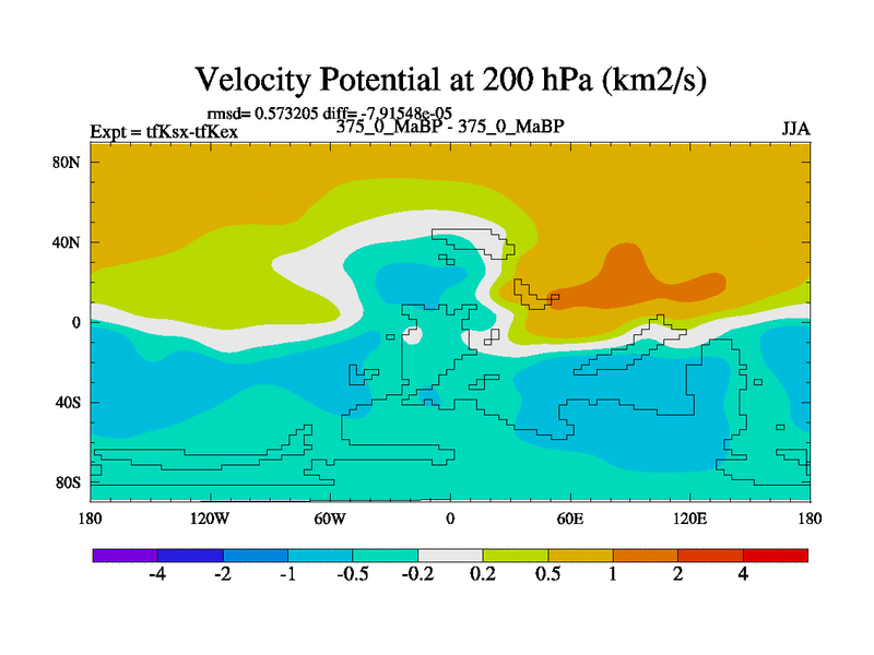 This is the 375.0 Ma simulation using the Scotese palaeogeographies and revised CCN etc. This version has islands and smoothing and desert albedo included. Tuned CO2 to give Scotese temperatures. Started from end of tfKex.