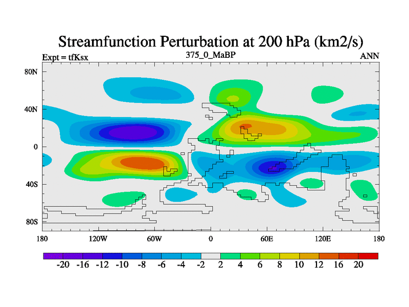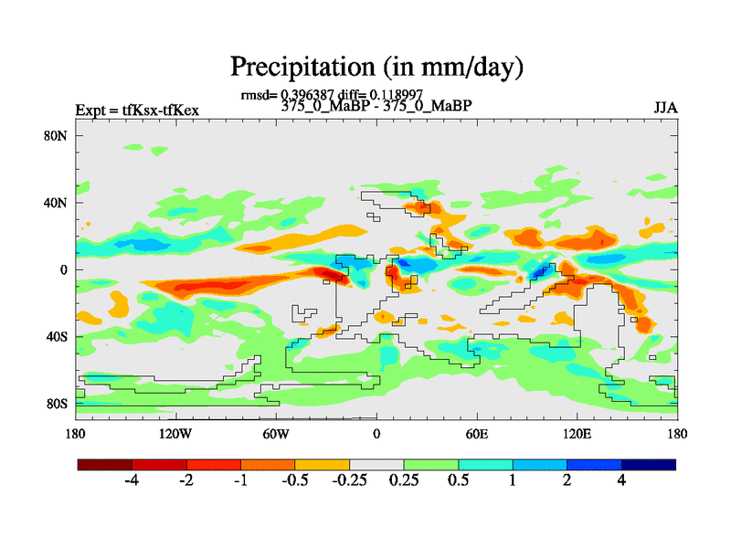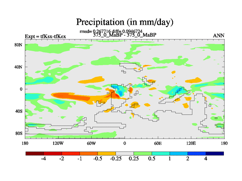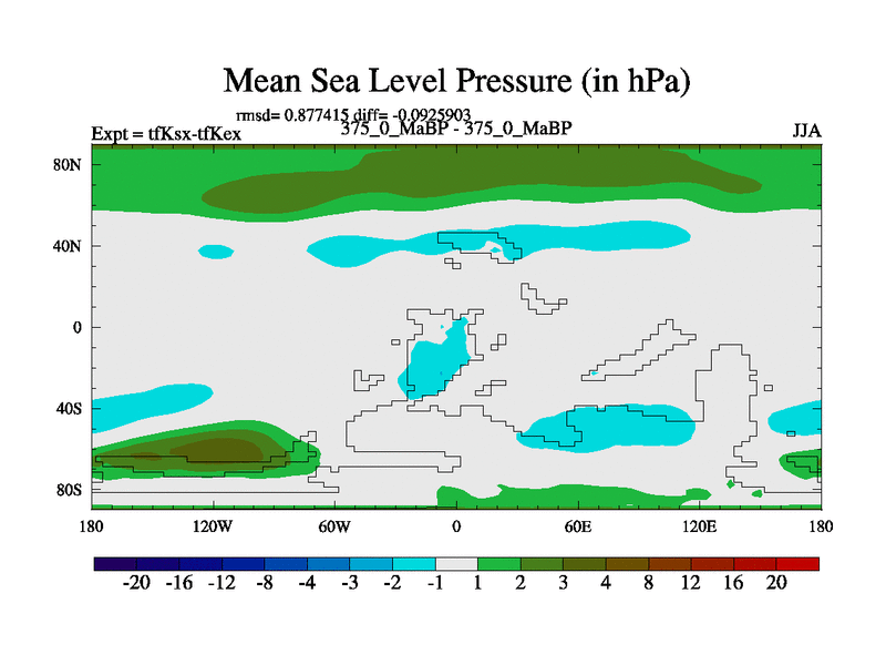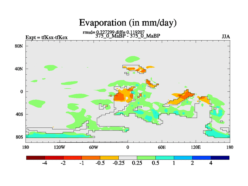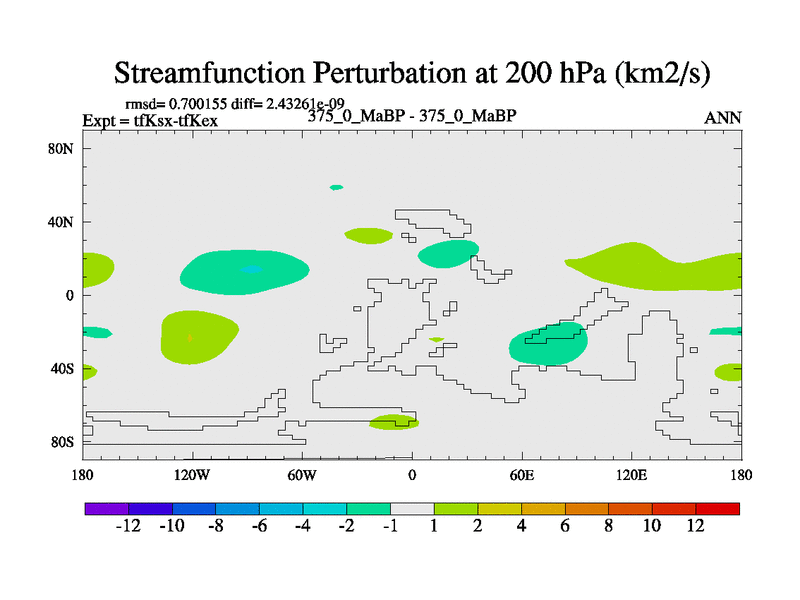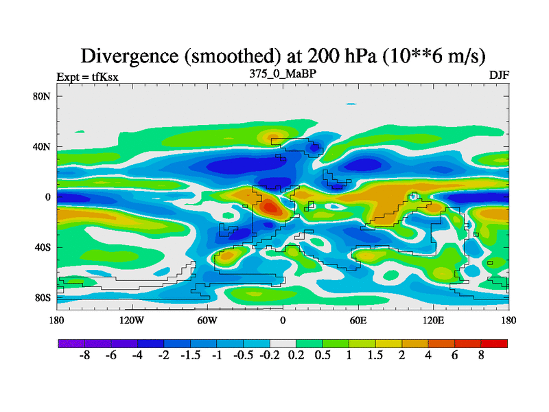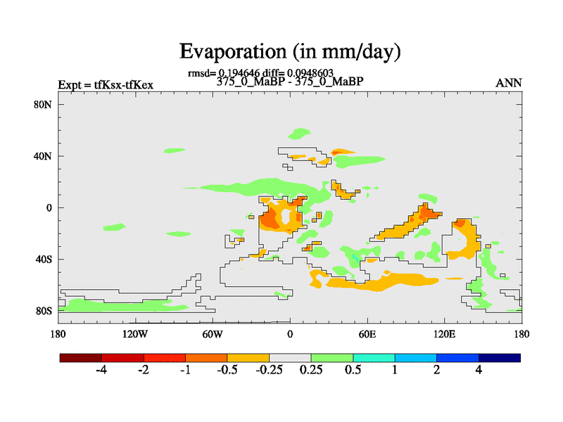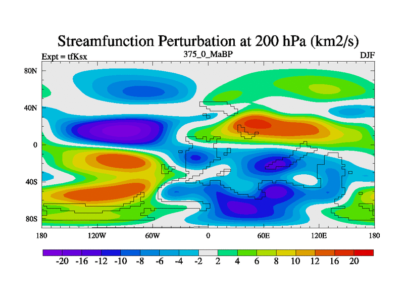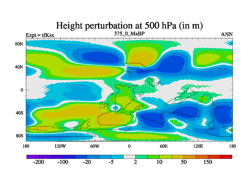 This is the 375.0 Ma simulation using the Scotese palaeogeographies and revised CCN etc. This version has islands and smoothing and desert albedo included. Tuned CO2 to give Scotese temperatures. Started from end of tfKex.