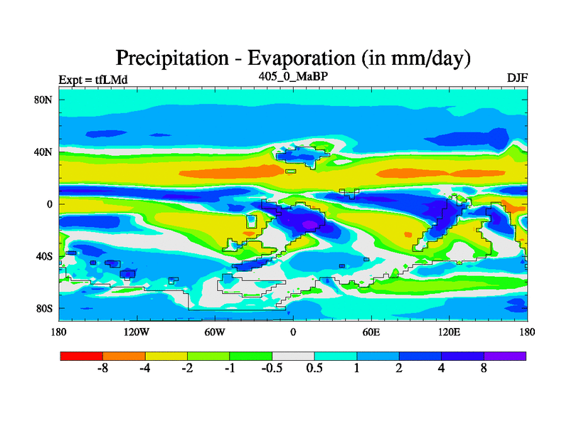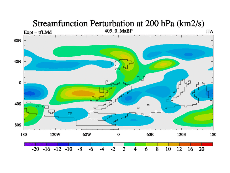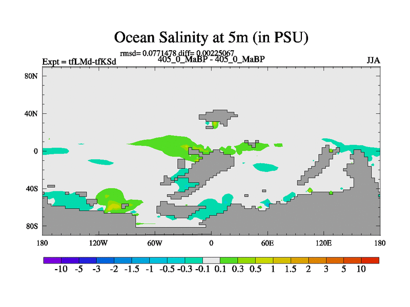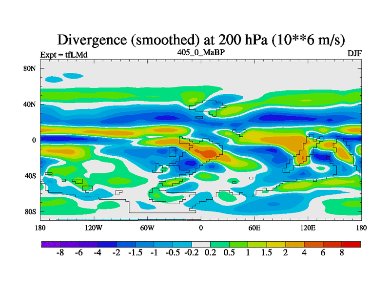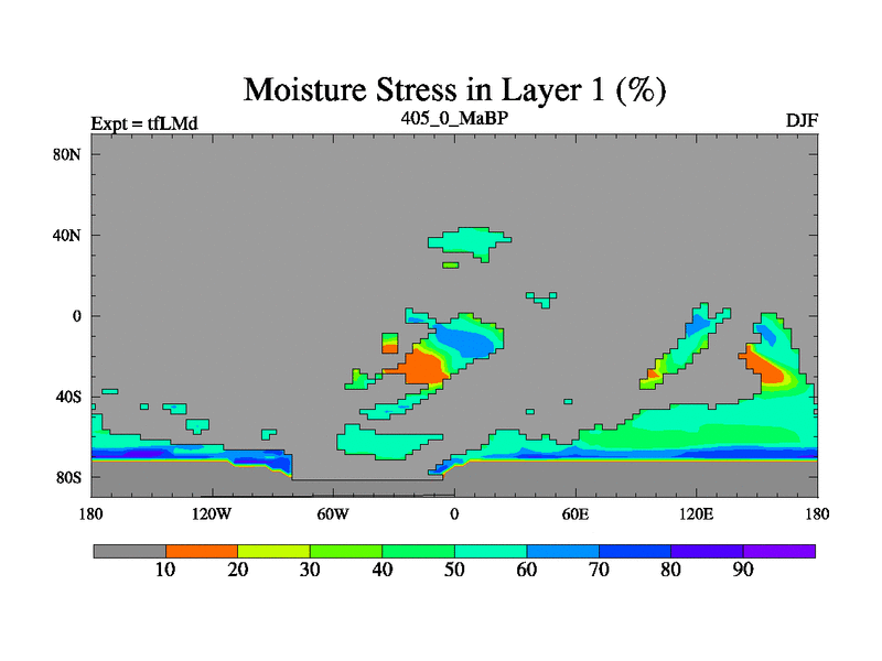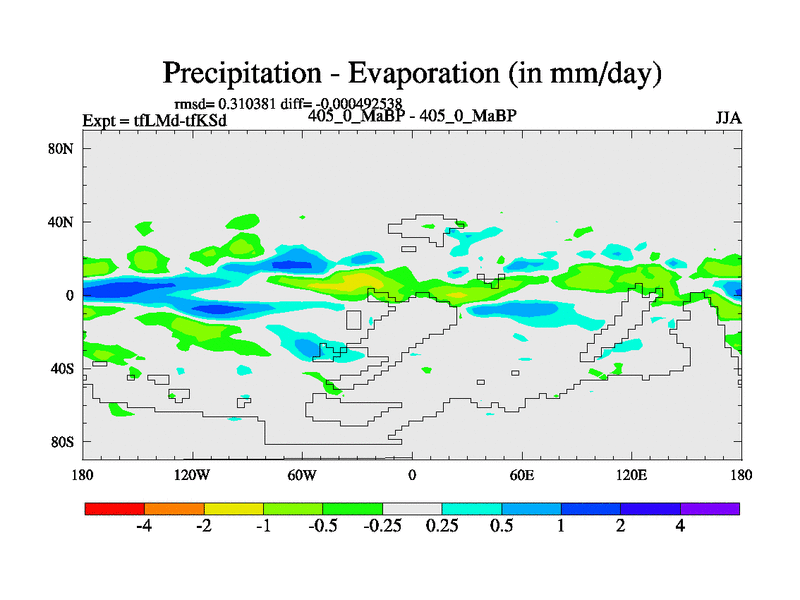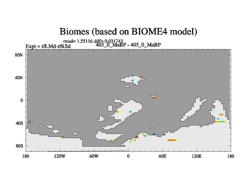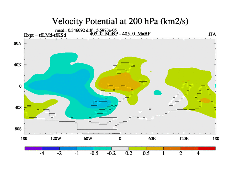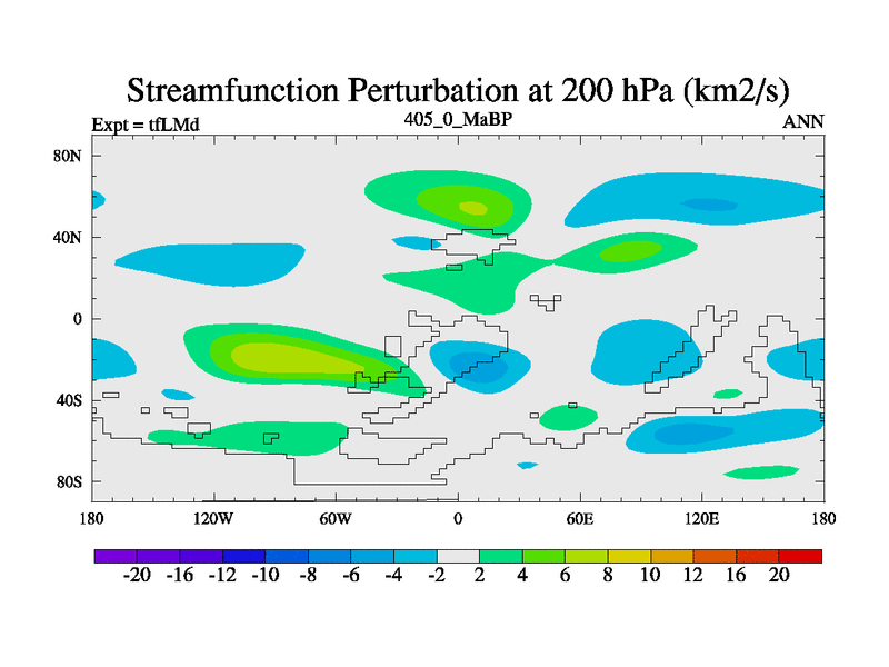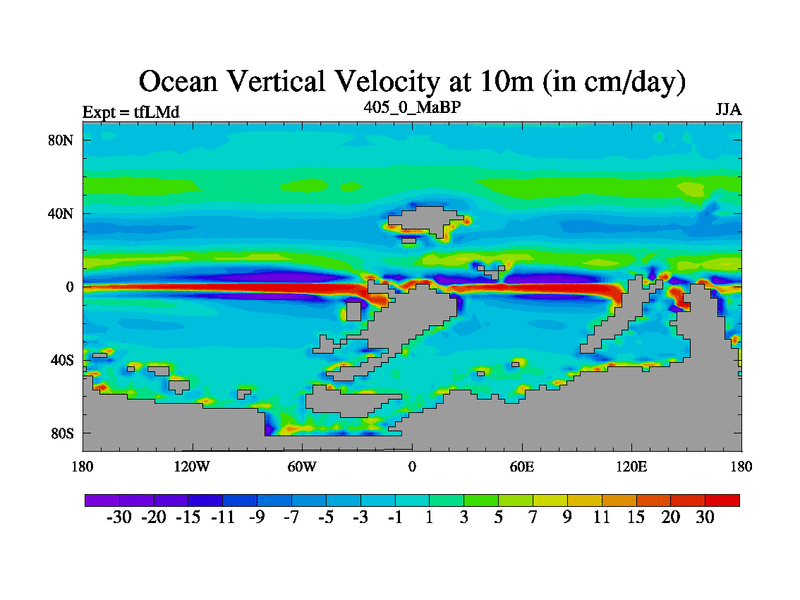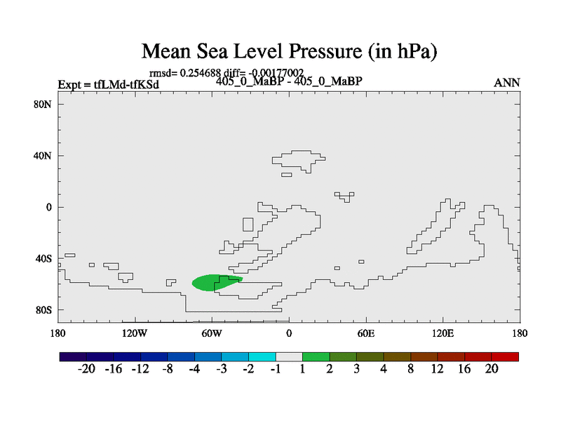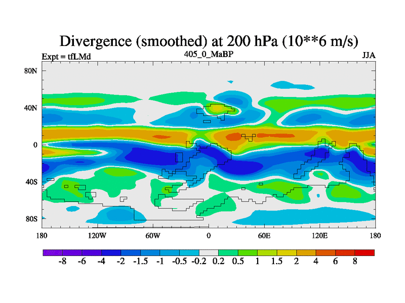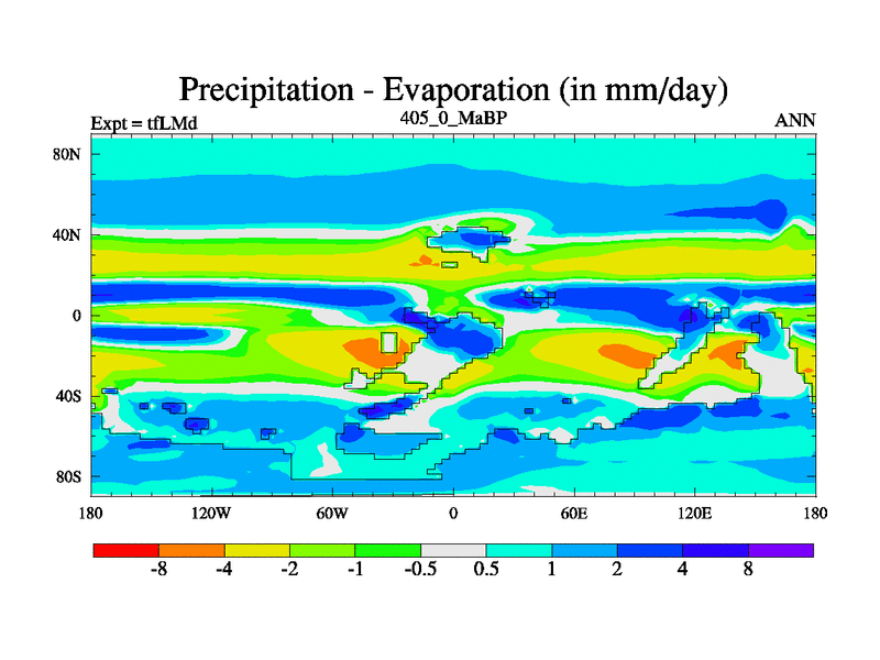 This is the 405.0 Ma simulation using the Scotese palaeogeographies and revised CCN etc. This version has islands and smoothing and desert albedo included. Tuned CO2 to give Scotese temperatures. Started from end of tfKSd. With JEDI output.