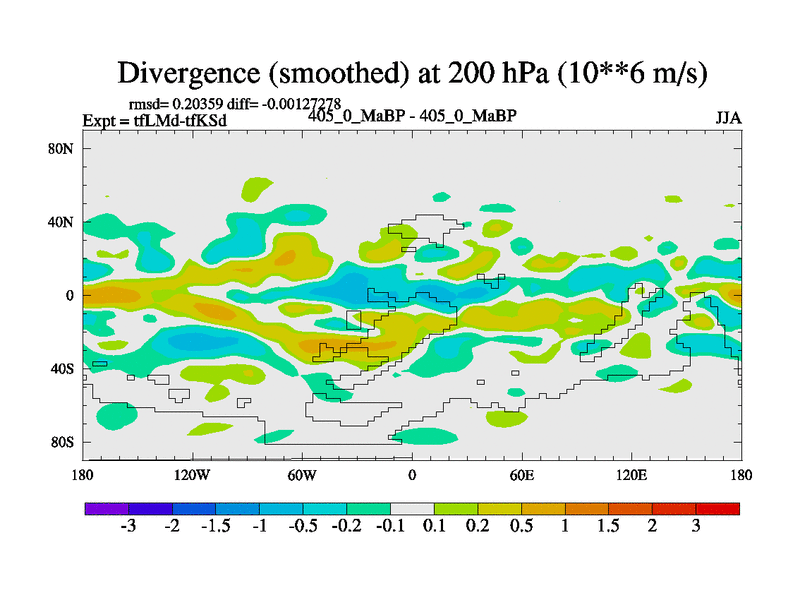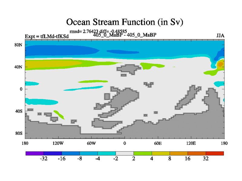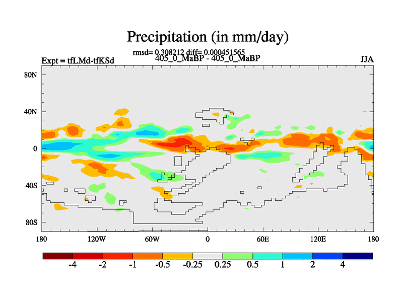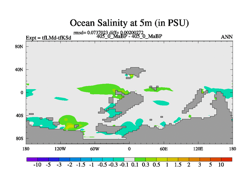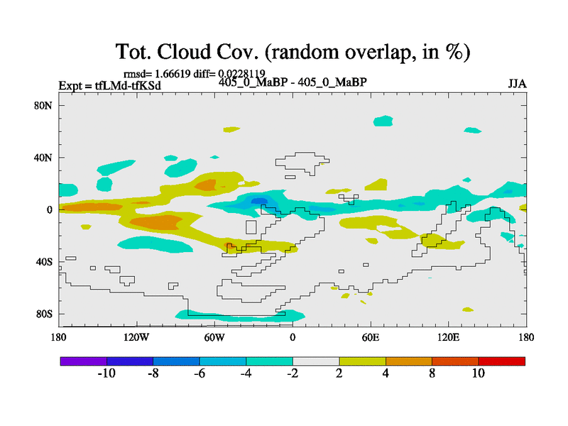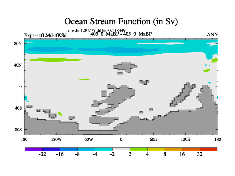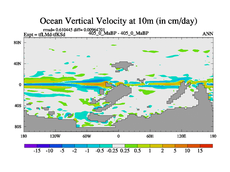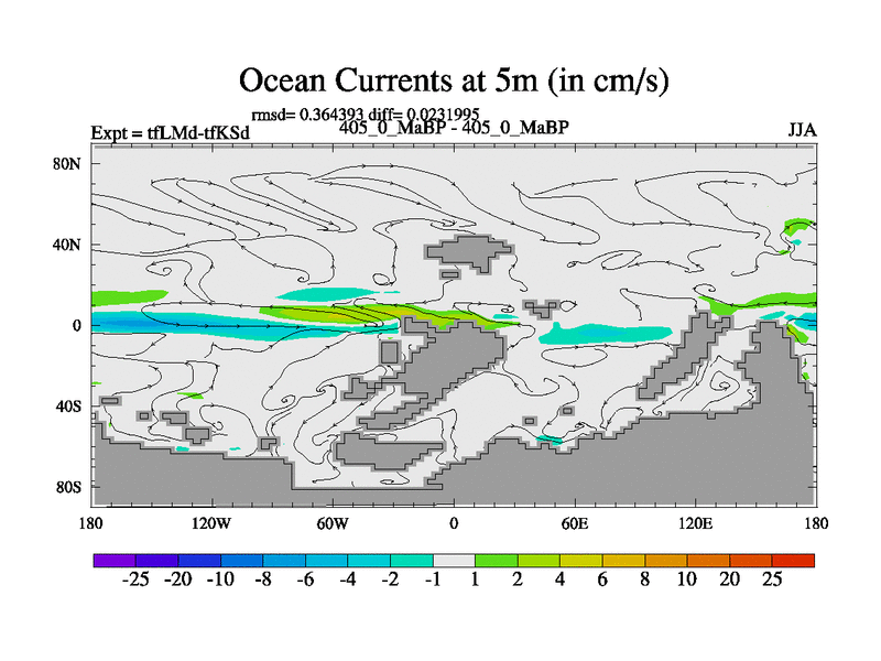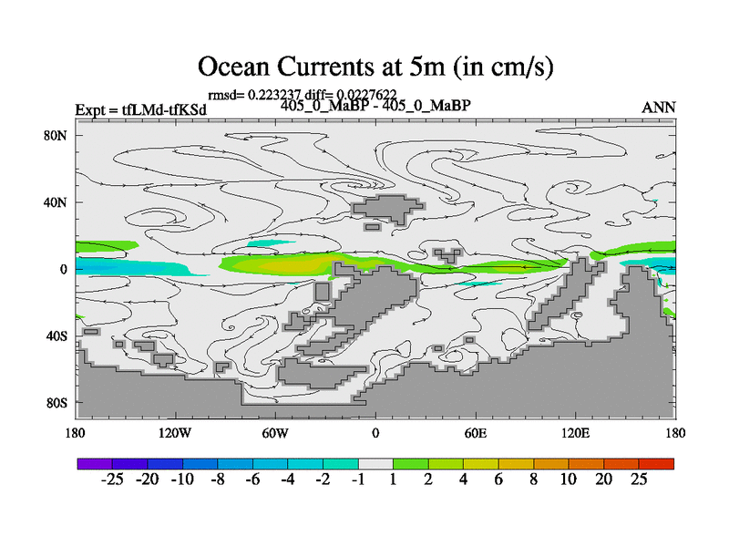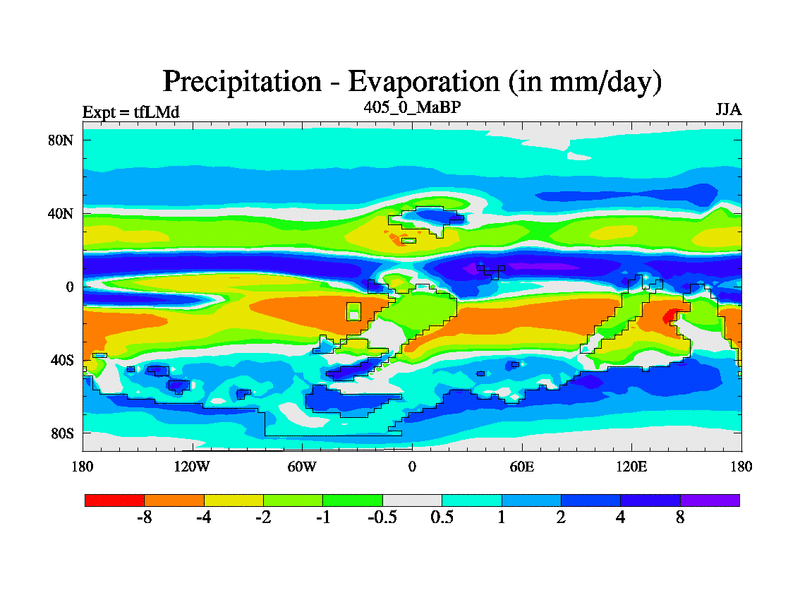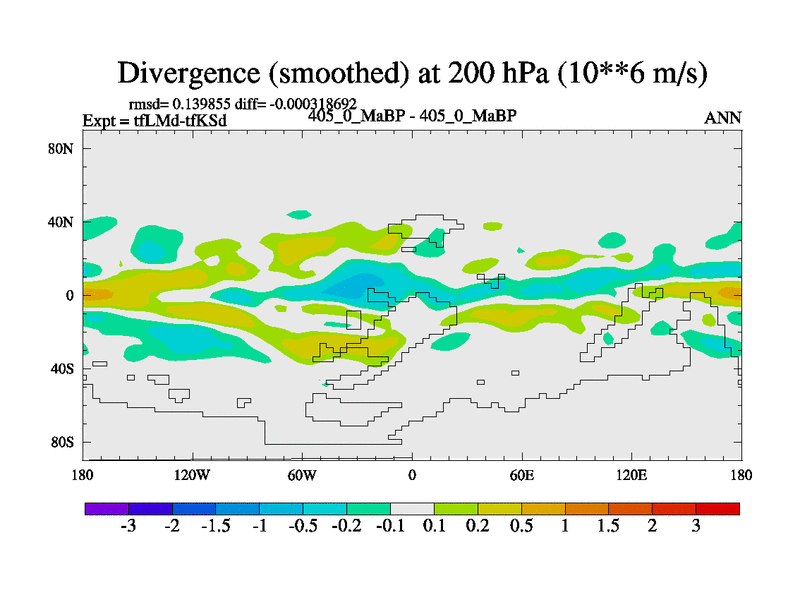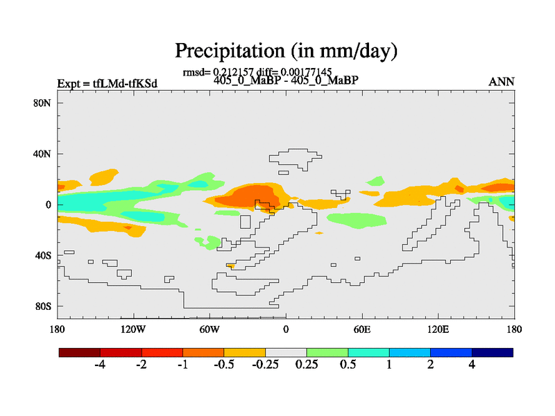 This is the 405.0 Ma simulation using the Scotese palaeogeographies and revised CCN etc. This version has islands and smoothing and desert albedo included. Tuned CO2 to give Scotese temperatures. Started from end of tfKSd. With JEDI output.