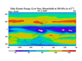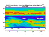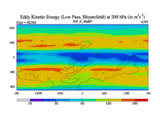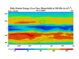 Low Pass Eddy Kinetic Energy at 200 hPa