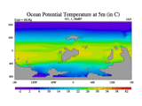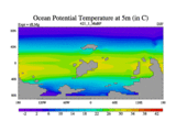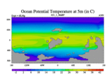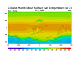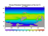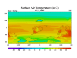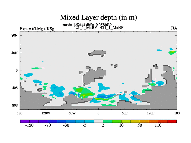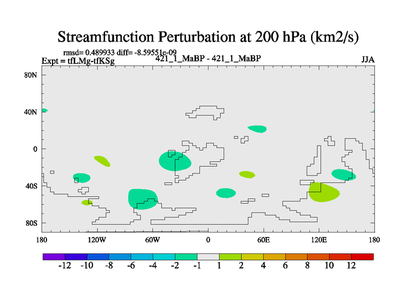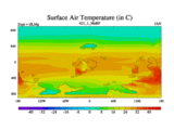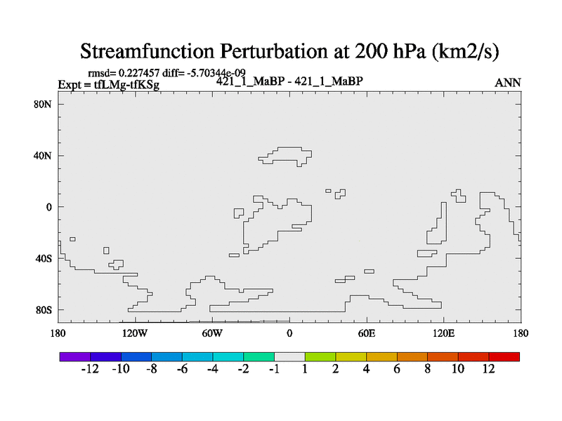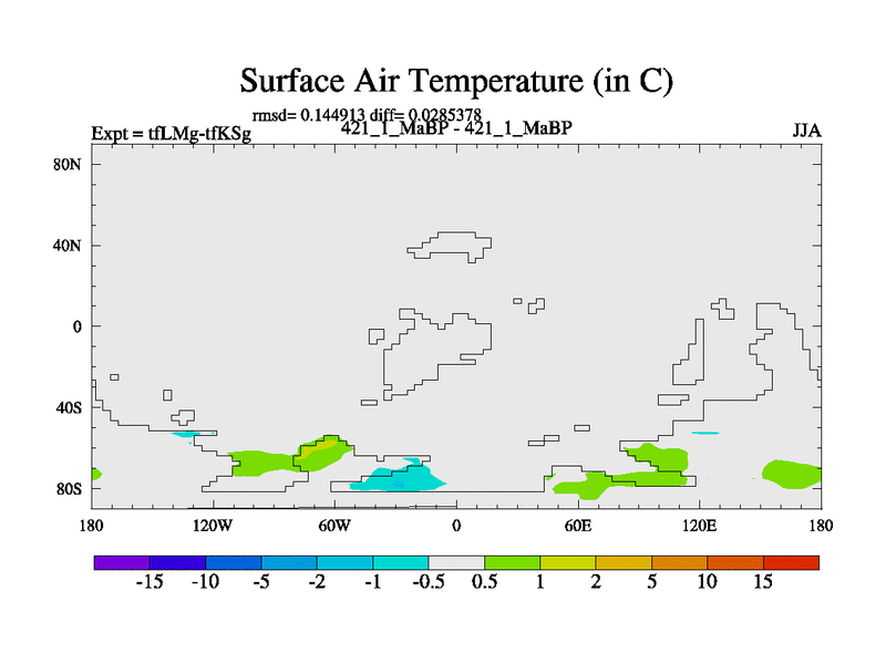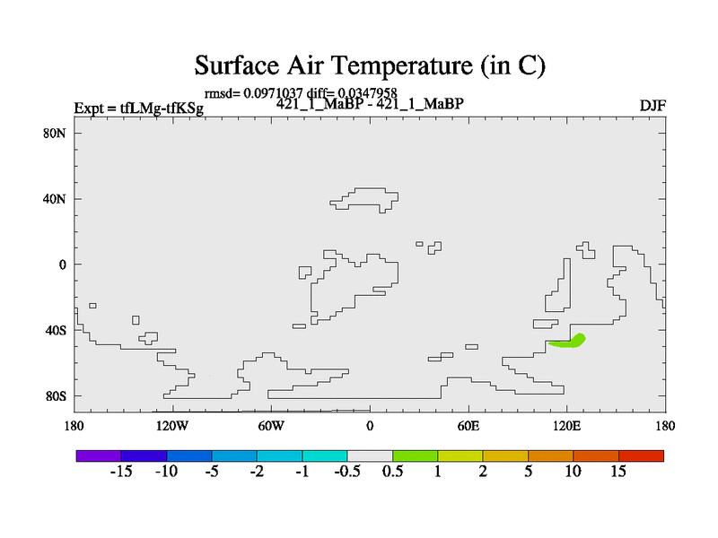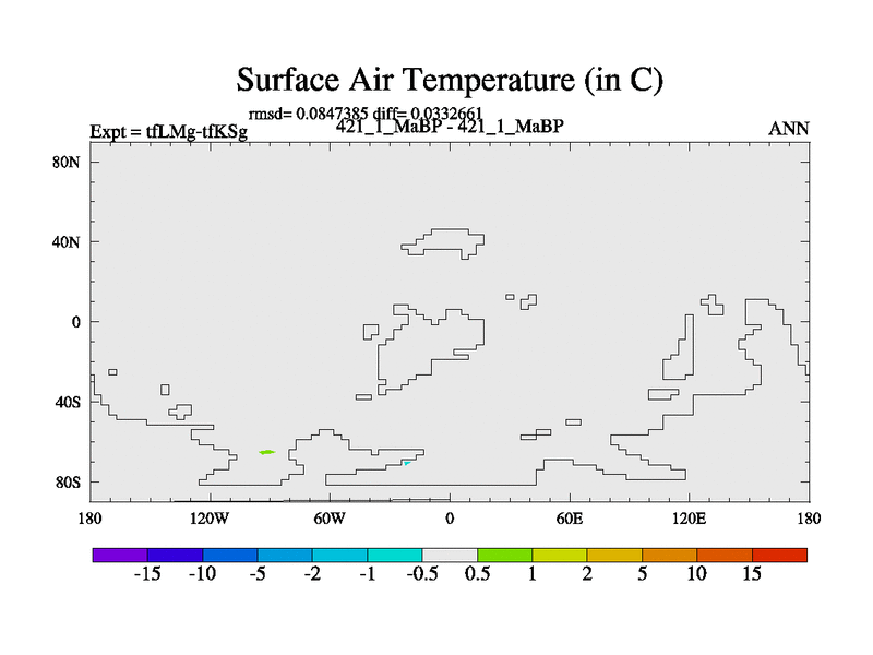 Scientifically as benchmark except using water age update, dark respiration, salinity conservation and revised ozone. Also using new orbital and solar update, and outputting leaf CO2. This version has islands included and atmospheric smoothing and desert albedo. Tuned CO2 to give Scotese temperatures. Started from end of tfKSg. With JEDI output.