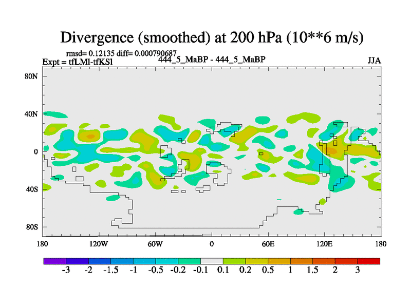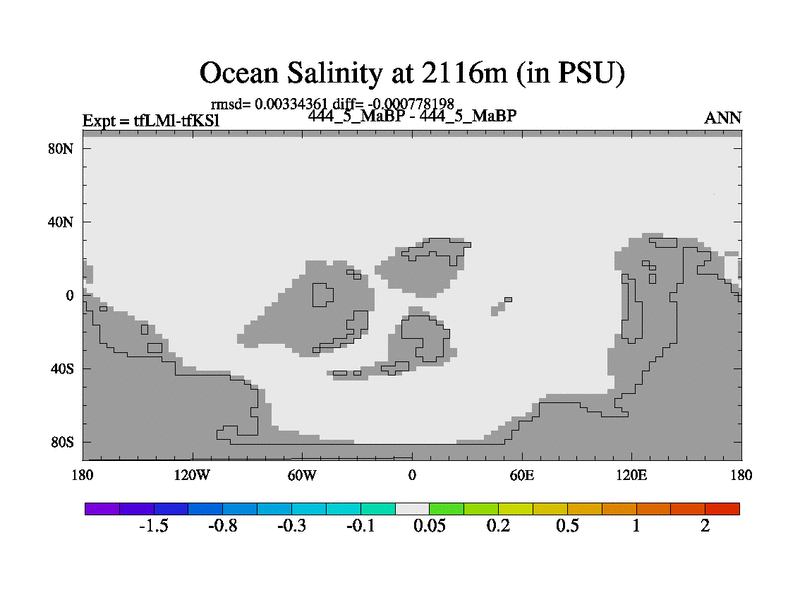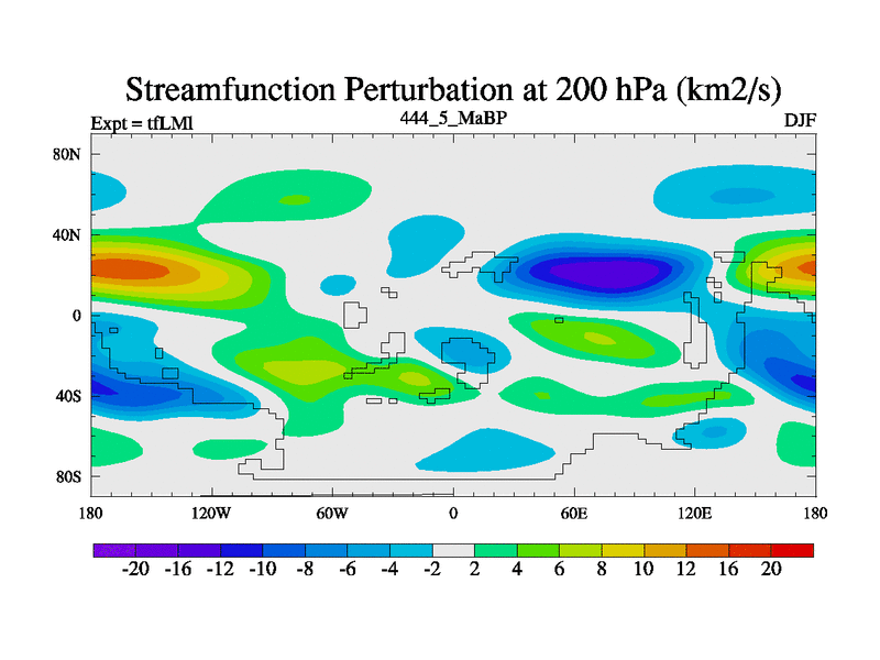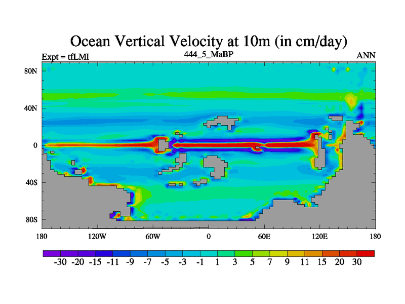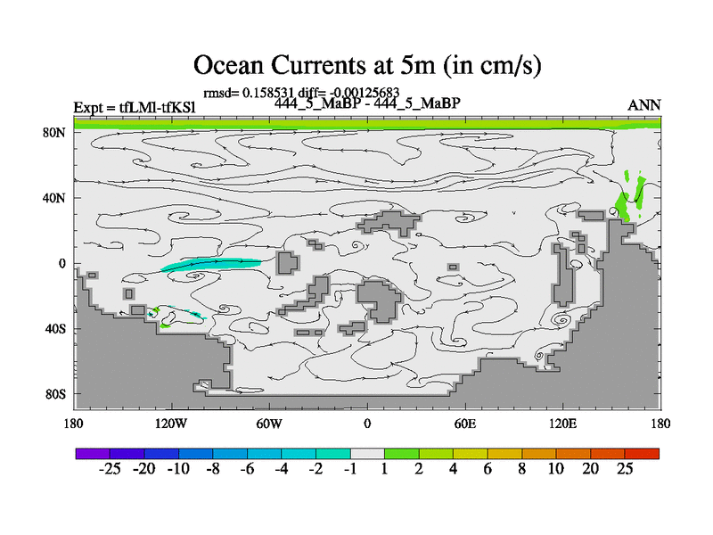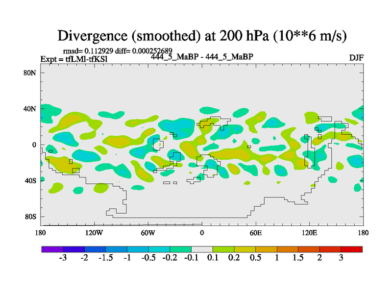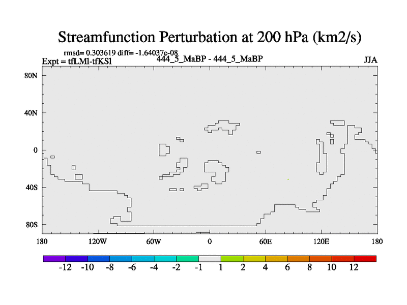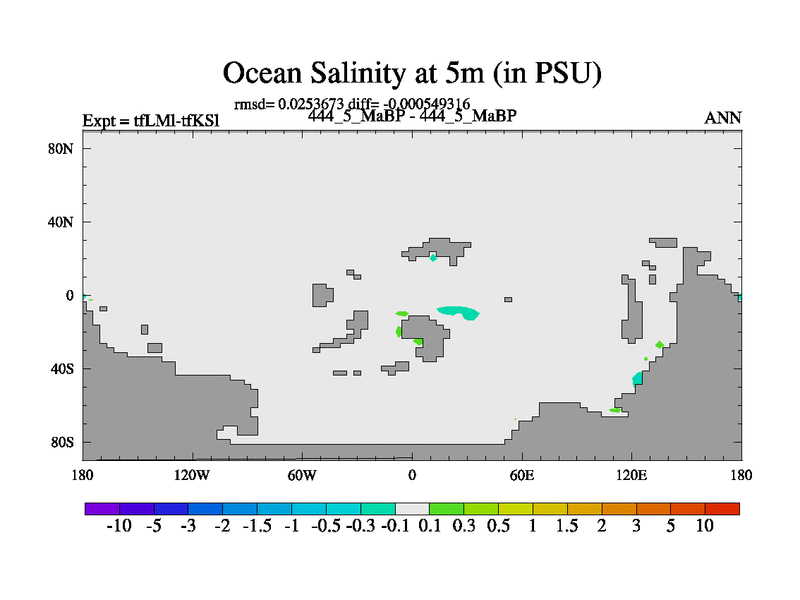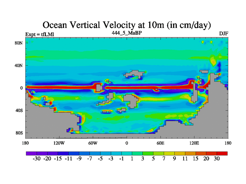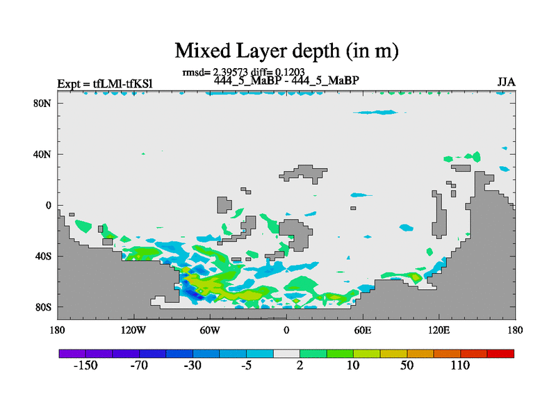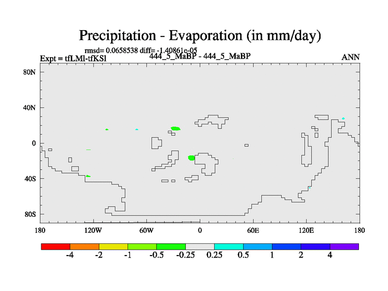 This is the 444.5 Ma simulation using the Scotese palaeogeographies and revised CCN etc. This version has islands and smoothing and desert albedo included. Tuned CO2 to give Scotese temperatures. Started from end of tfKSl. With JEDI output.