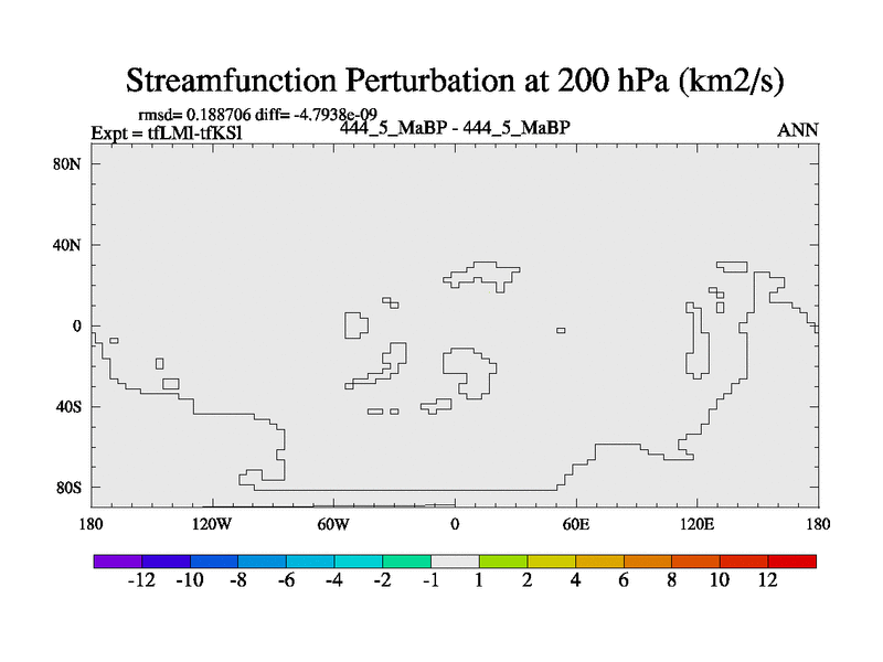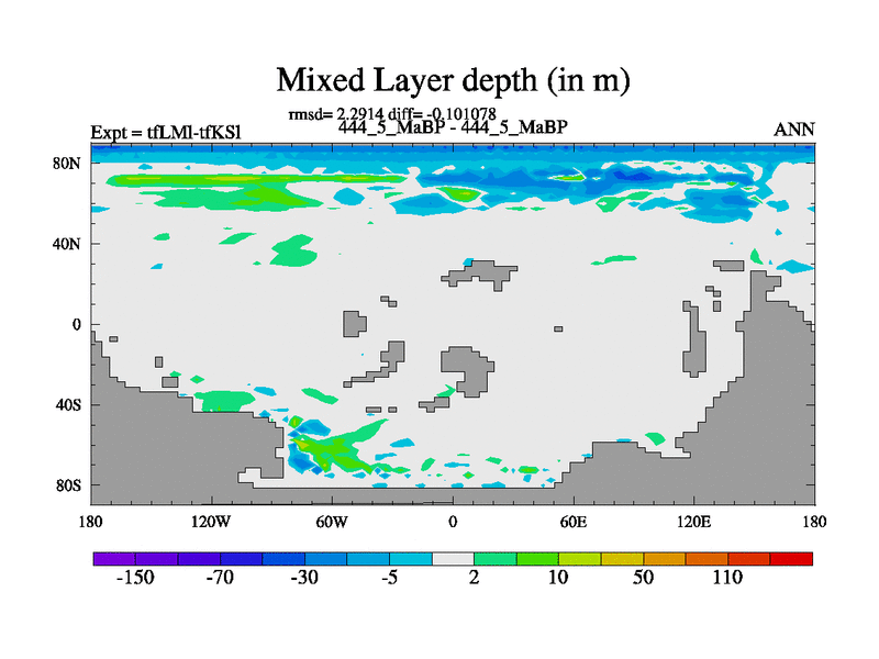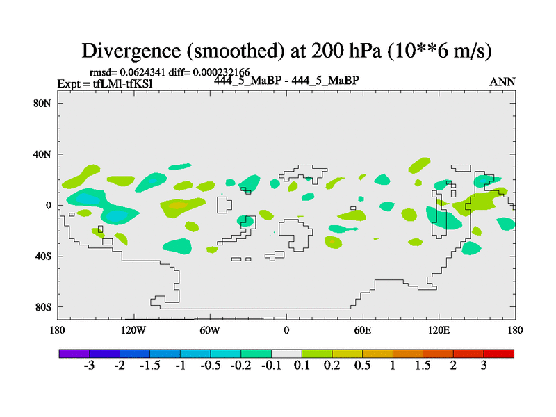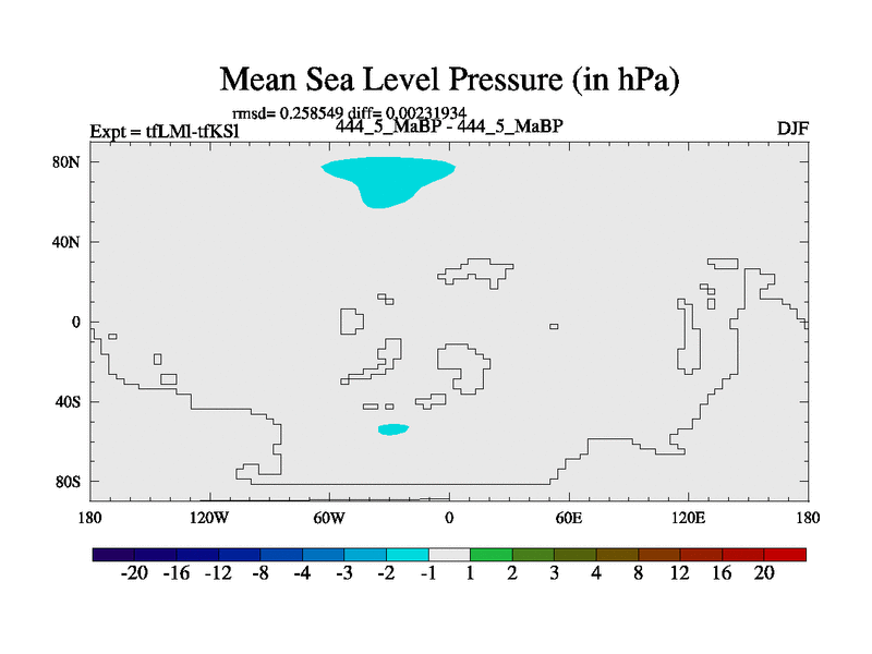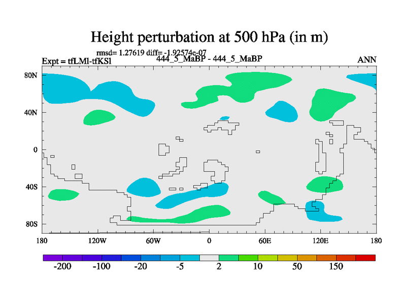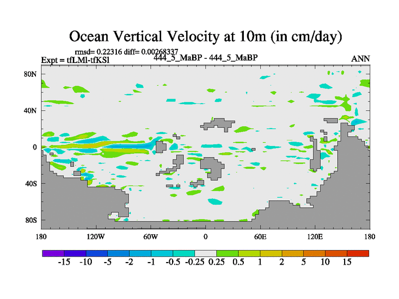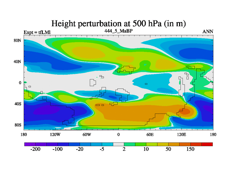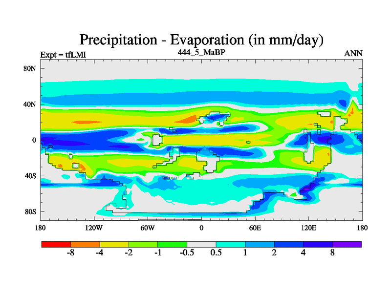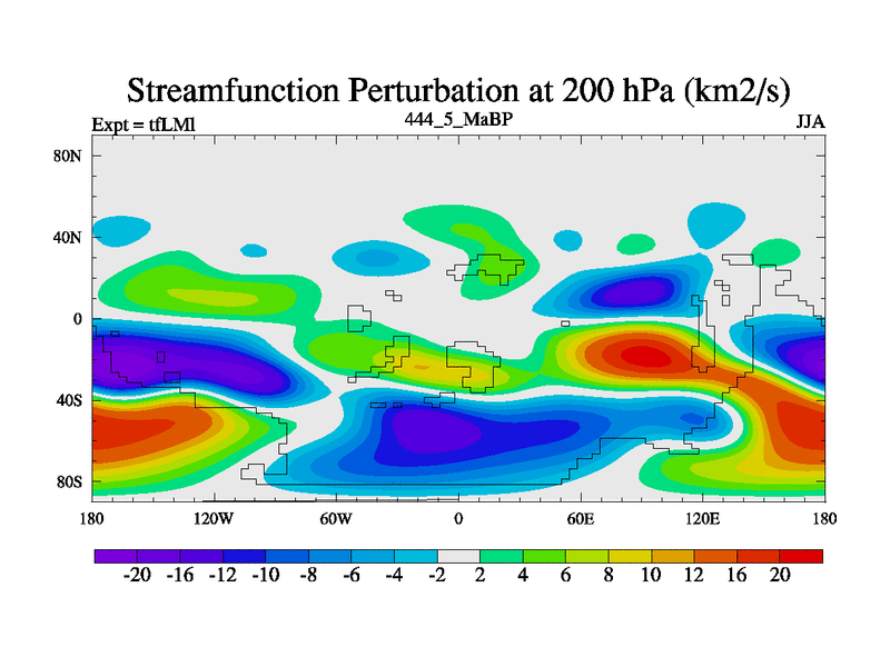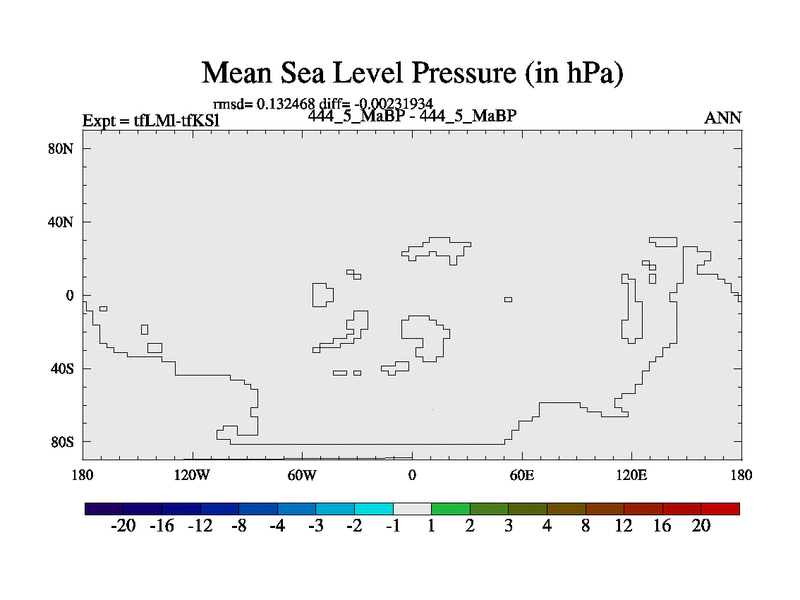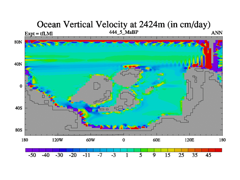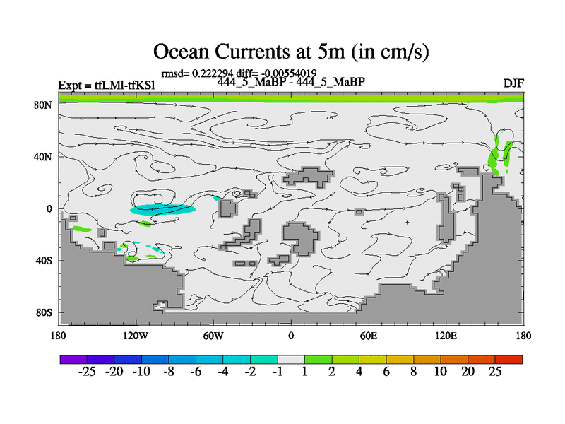 This is the 444.5 Ma simulation using the Scotese palaeogeographies and revised CCN etc. This version has islands and smoothing and desert albedo included. Tuned CO2 to give Scotese temperatures. Started from end of tfKSl. With JEDI output.