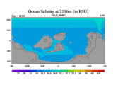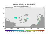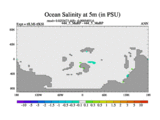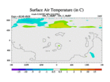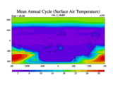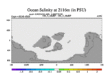 Scientifically as benchmark except using water age update, dark respiration, salinity conservation and revised ozone. Also using new orbital and solar update, and outputting leaf CO2. This version has islands included and atmospheric smoothing and desert albedo. Tuned CO2 to give Scotese temperatures. Started from end of tfKSl. With JEDI output.
