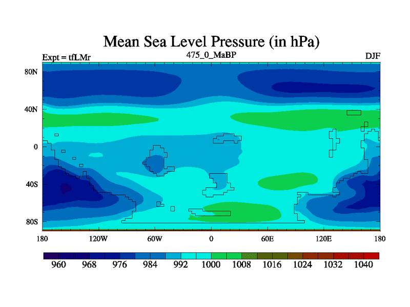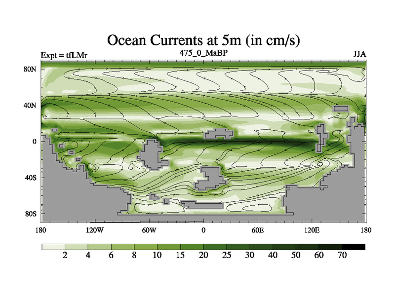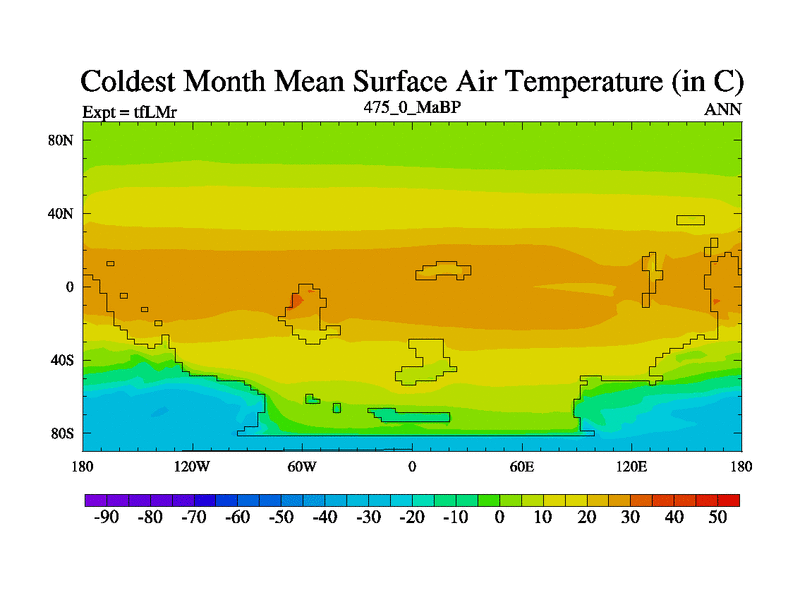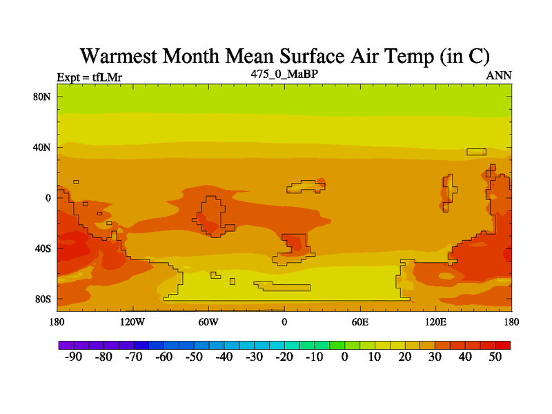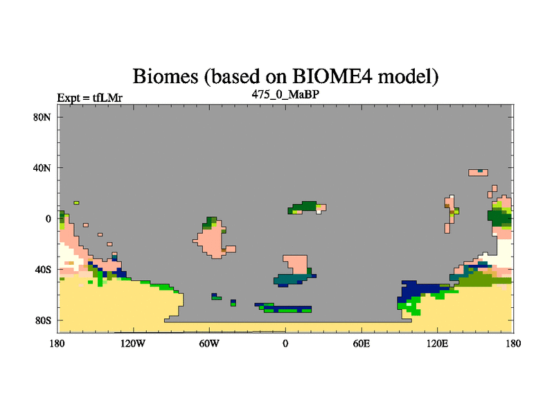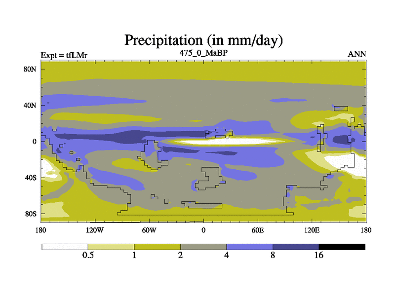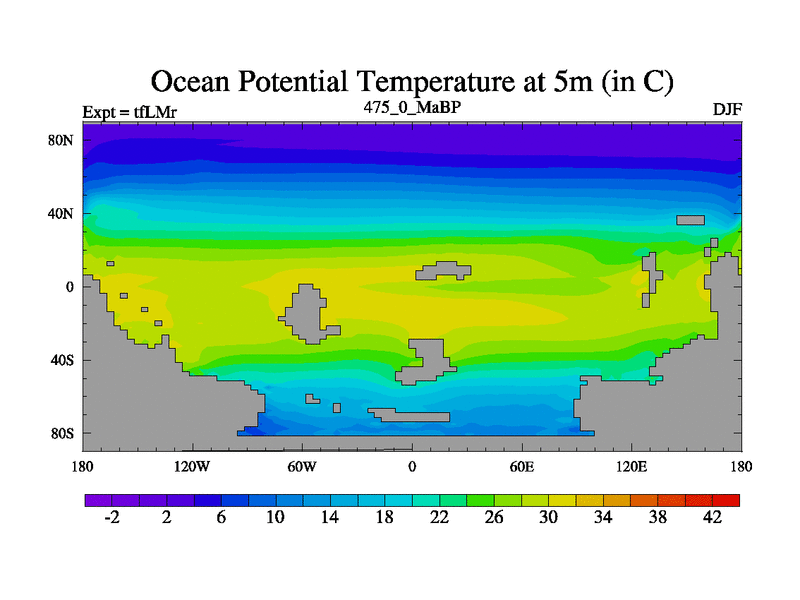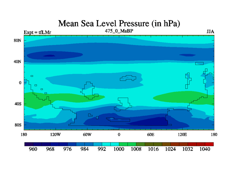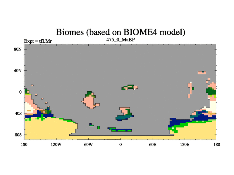 This is the 475.0 Ma simulation using the Scotese palaeogeographies and revised CCN etc. This version has islands and smoothing and desert albedo included. Tuned CO2 to give Scotese temperatures. Started from end of tfKSr. With JEDI output.