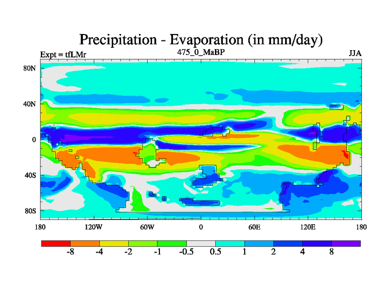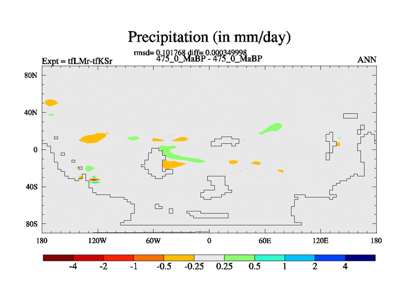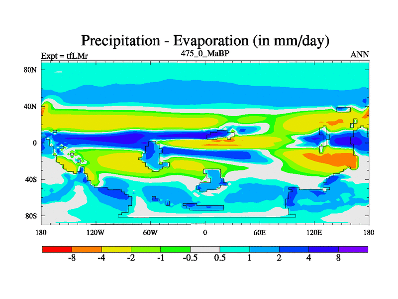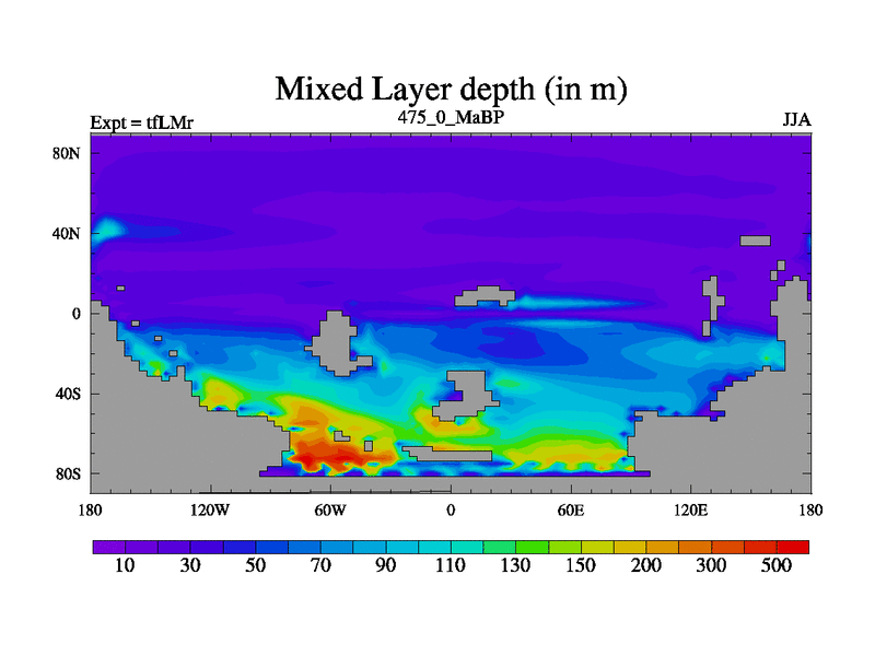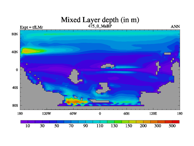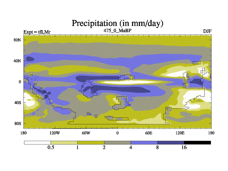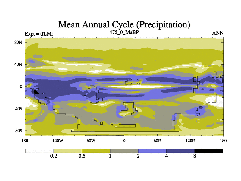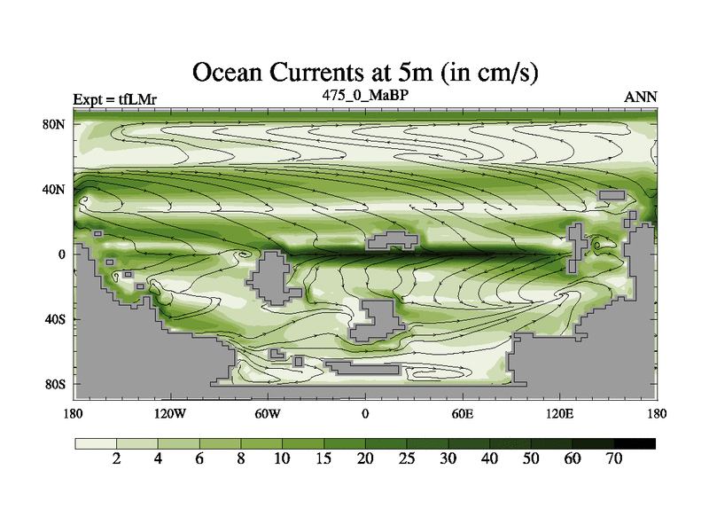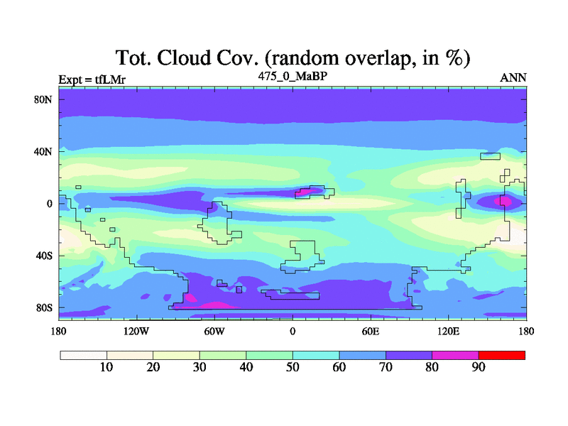 This is the 475.0 Ma simulation using the Scotese palaeogeographies and revised CCN etc. This version has islands and smoothing and desert albedo included. Tuned CO2 to give Scotese temperatures. Started from end of tfKSr. With JEDI output.