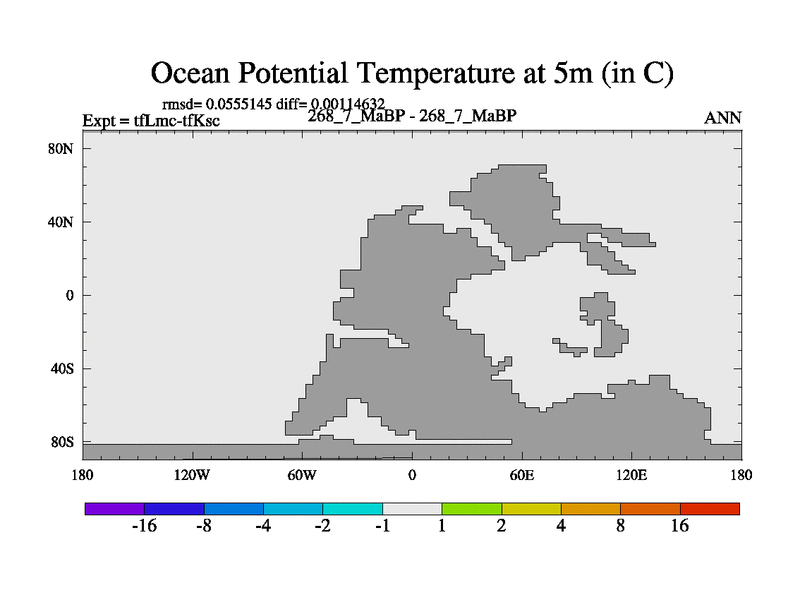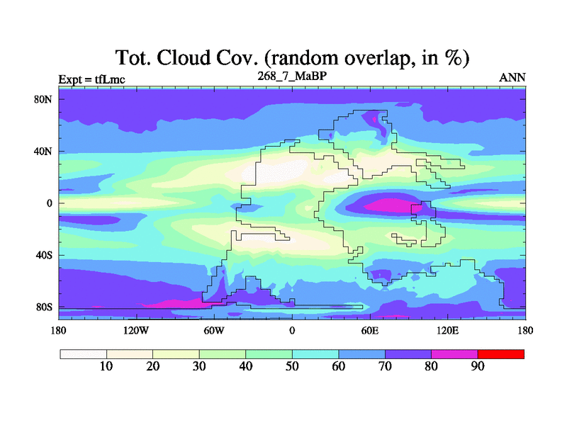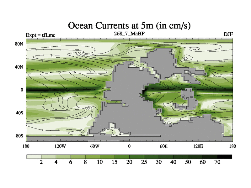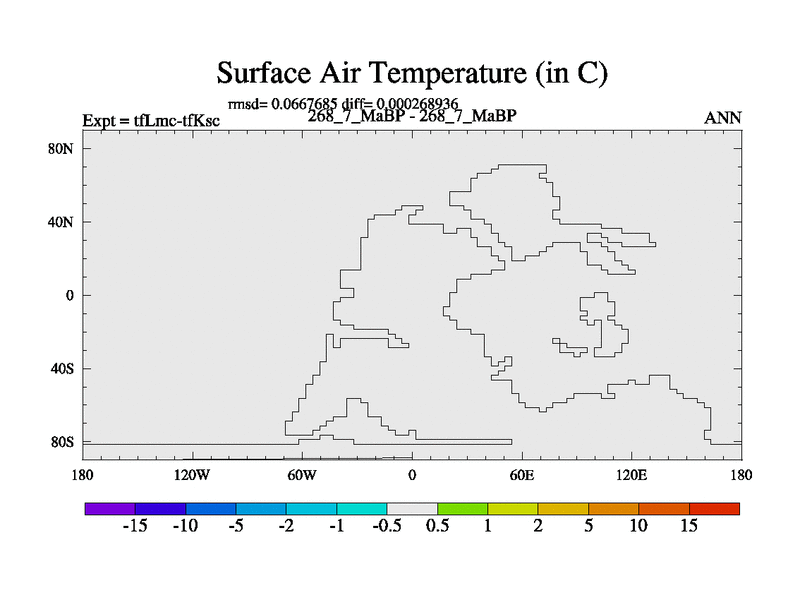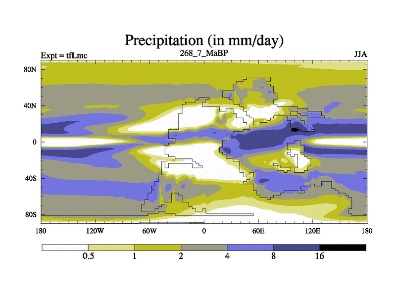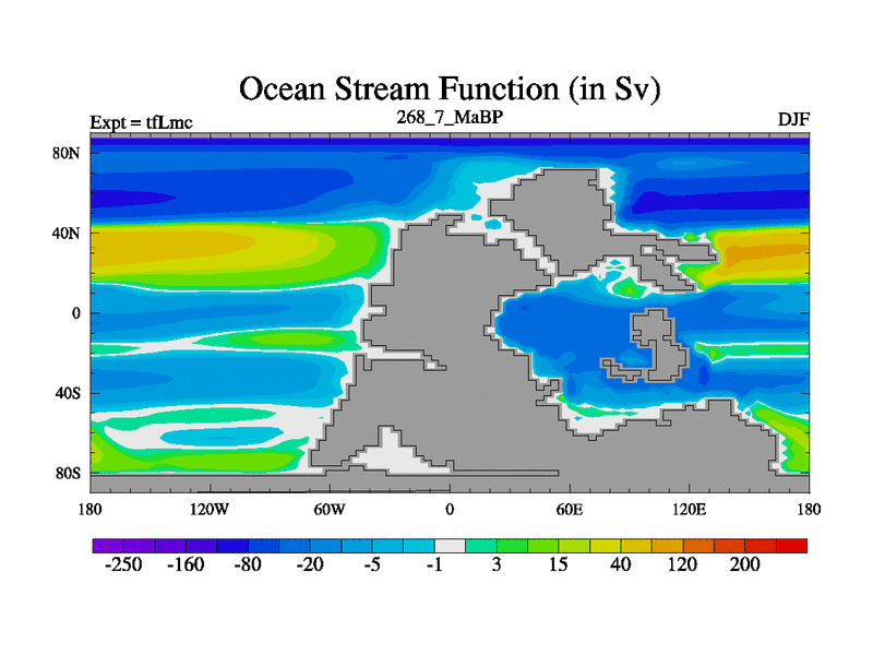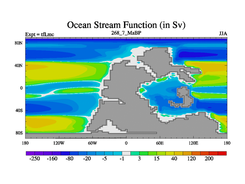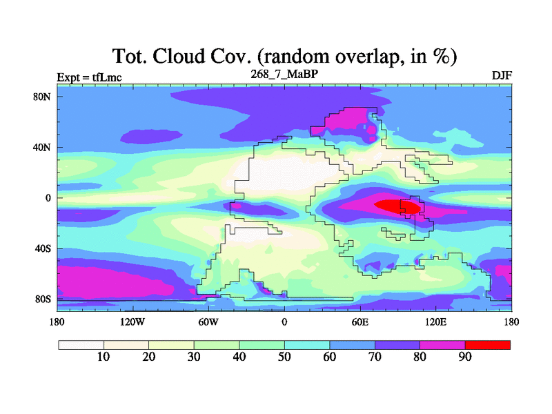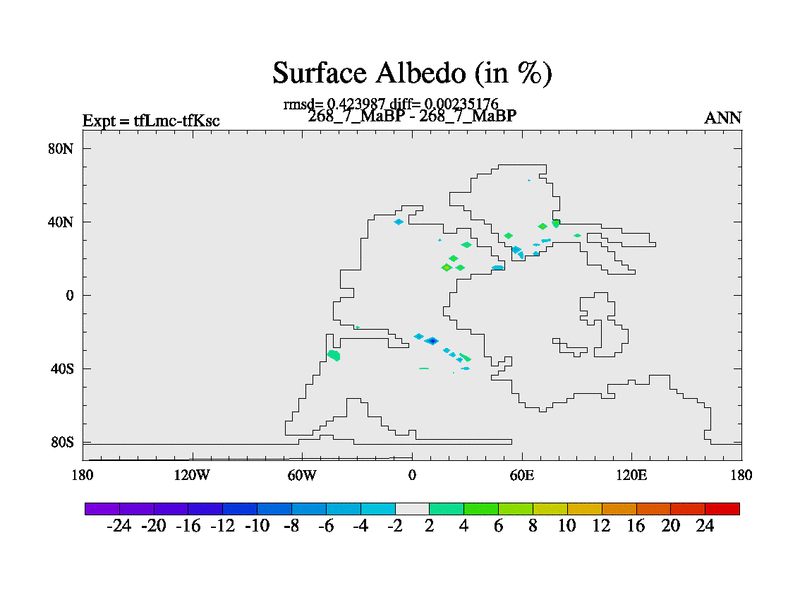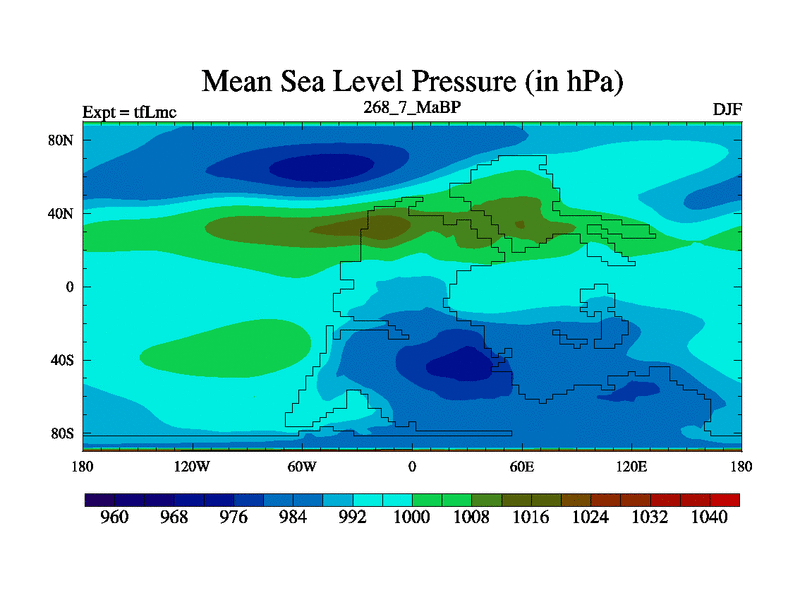 This is the 268.7 Ma simulation using the Scotese palaeogeographies and revised CCN etc. This version has islands and smoothing and desert albedo included. Tuned CO2 to give Scotese temperatures. Started from end of tfKsc. With JEDI output.