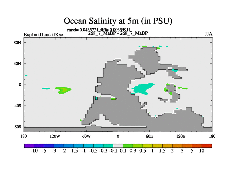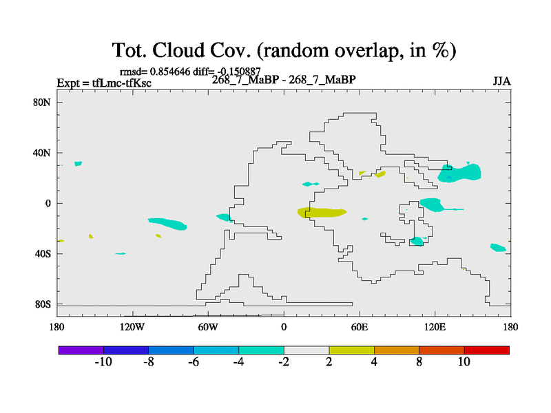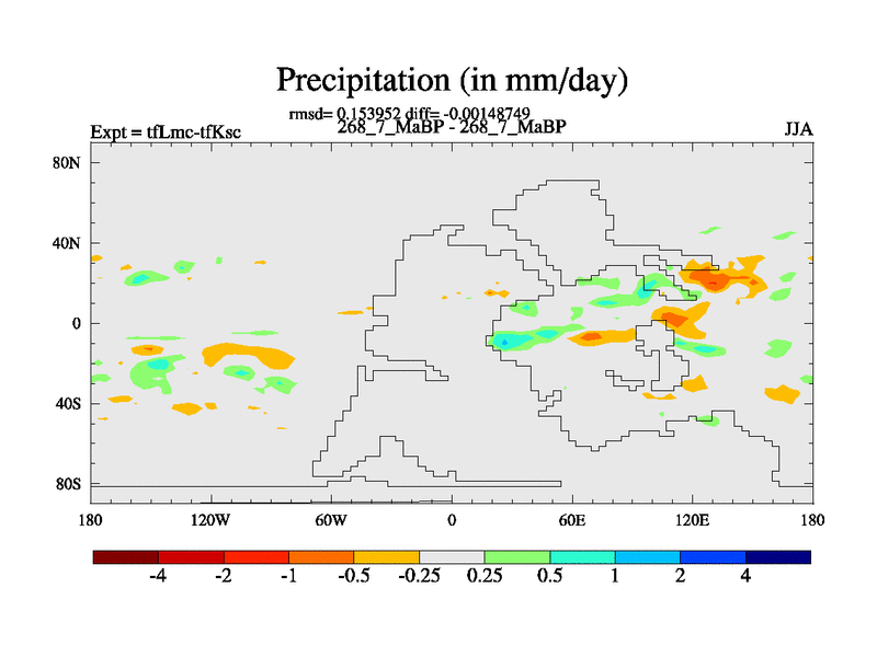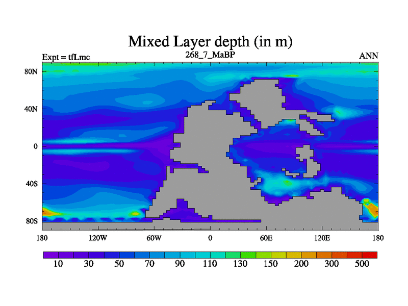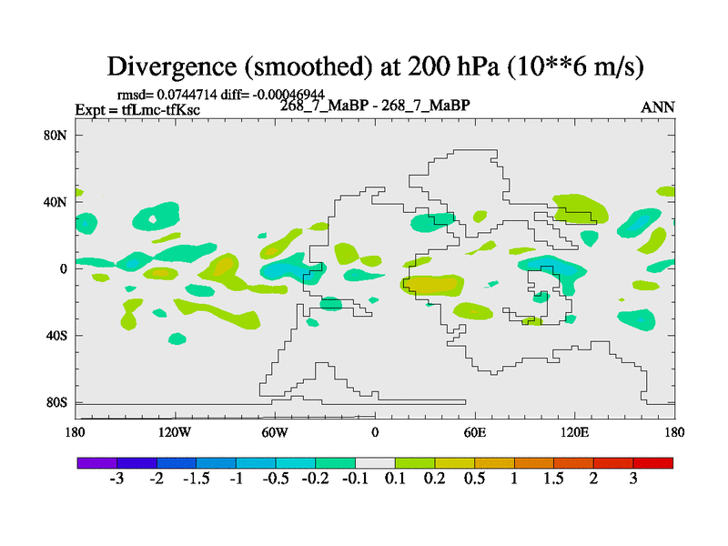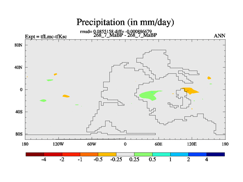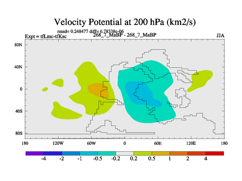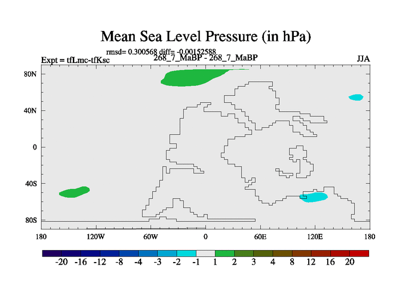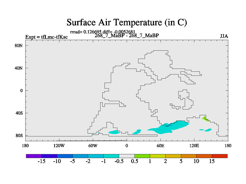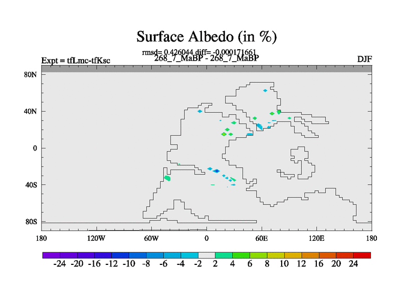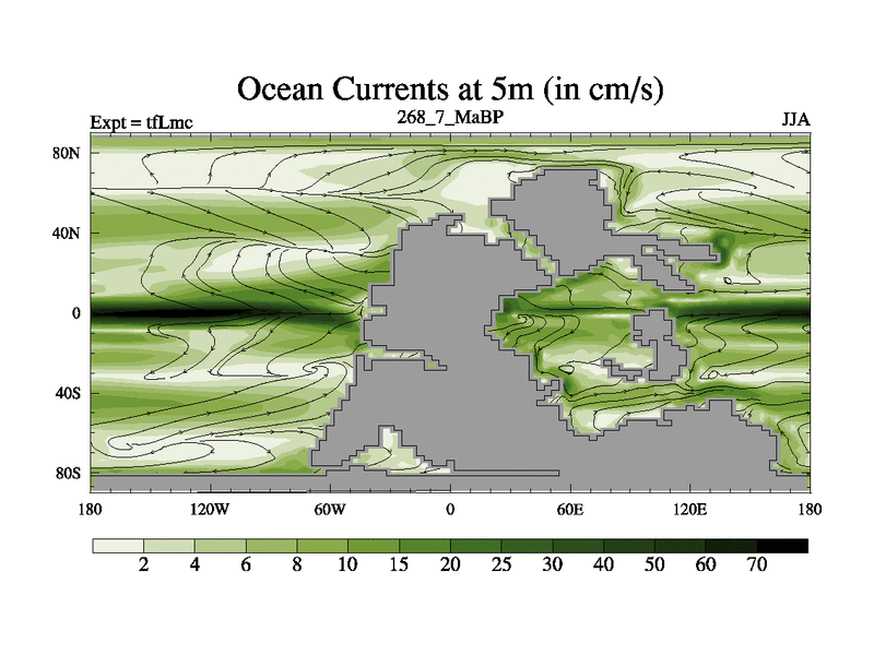 This is the 268.7 Ma simulation using the Scotese palaeogeographies and revised CCN etc. This version has islands and smoothing and desert albedo included. Tuned CO2 to give Scotese temperatures. Started from end of tfKsc. With JEDI output.