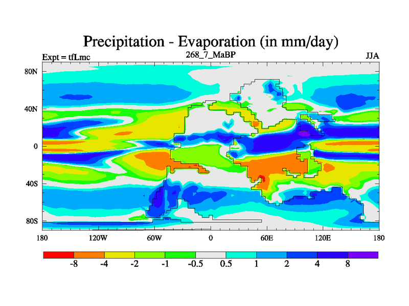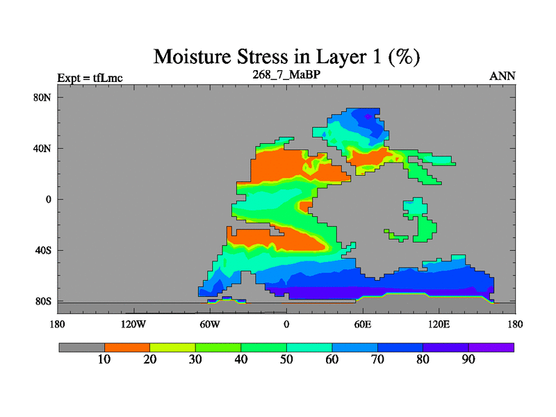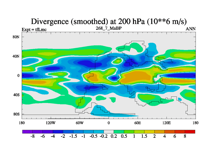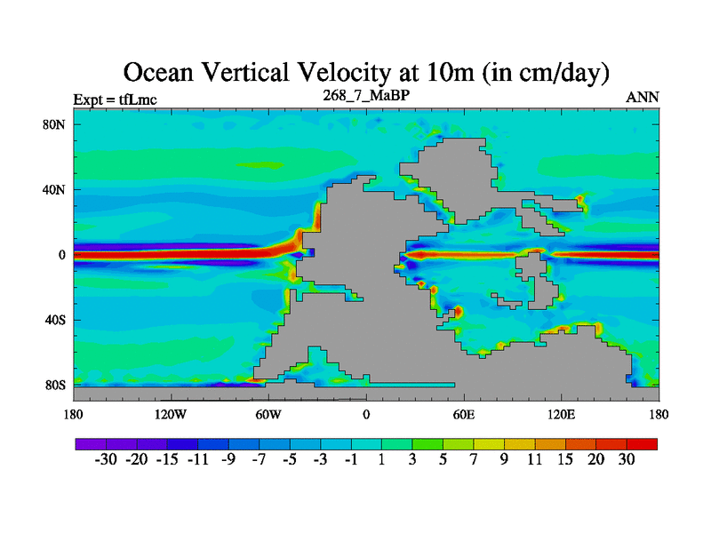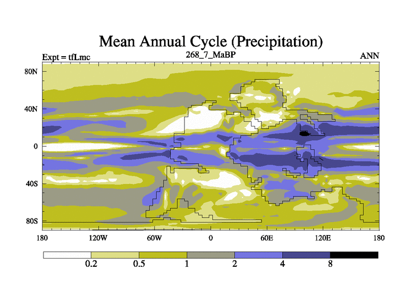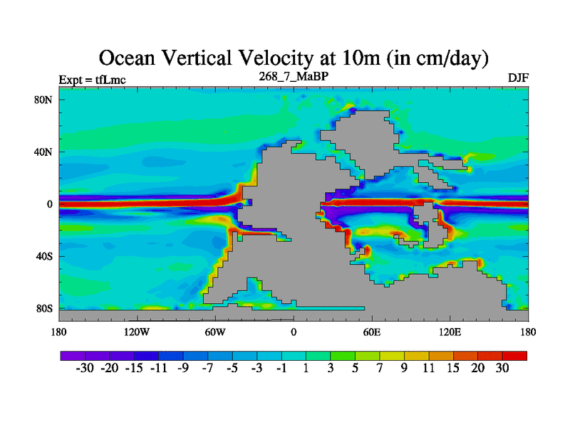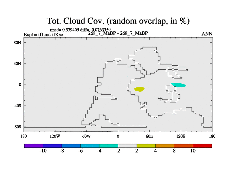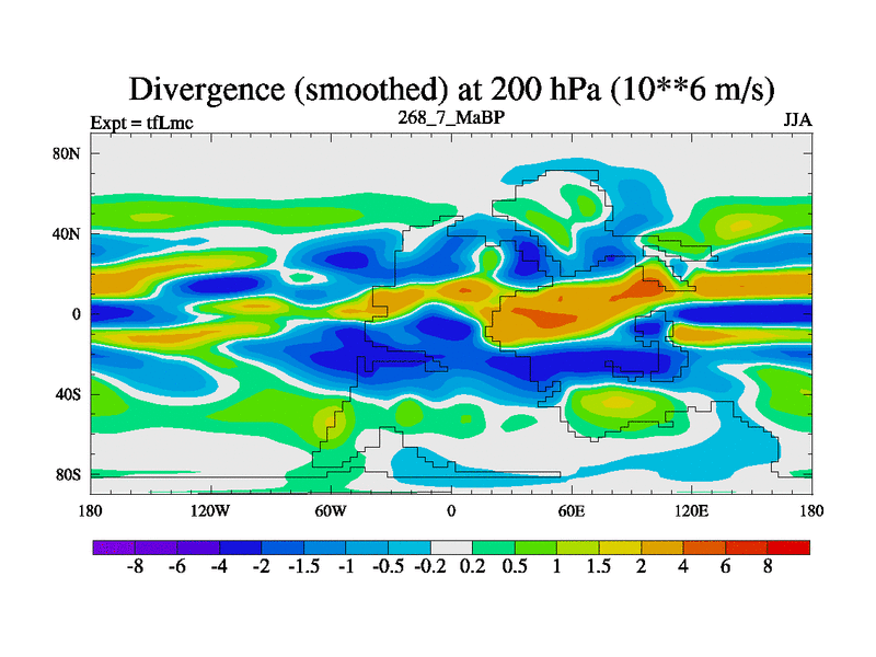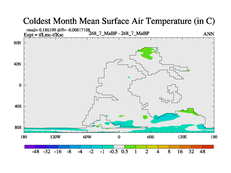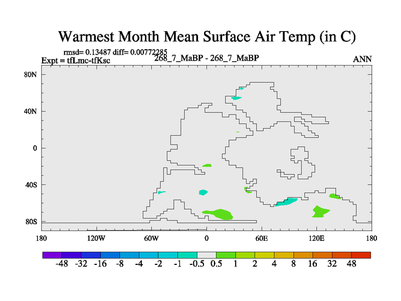 This is the 268.7 Ma simulation using the Scotese palaeogeographies and revised CCN etc. This version has islands and smoothing and desert albedo included. Tuned CO2 to give Scotese temperatures. Started from end of tfKsc. With JEDI output.