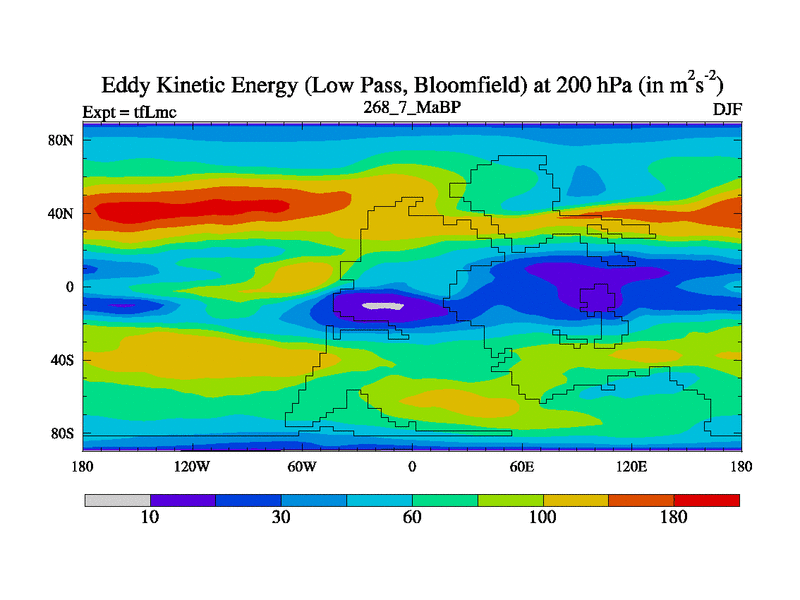 Low Pass Eddy Kinetic Energy at 200 hPa