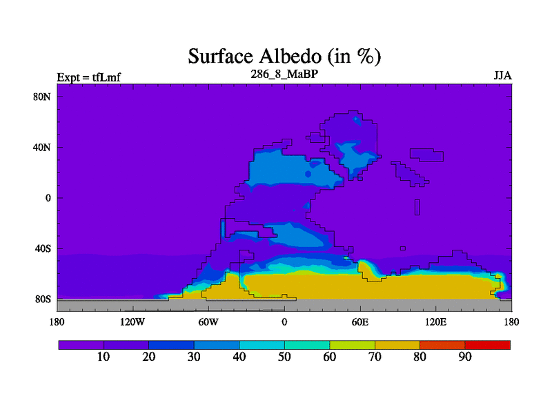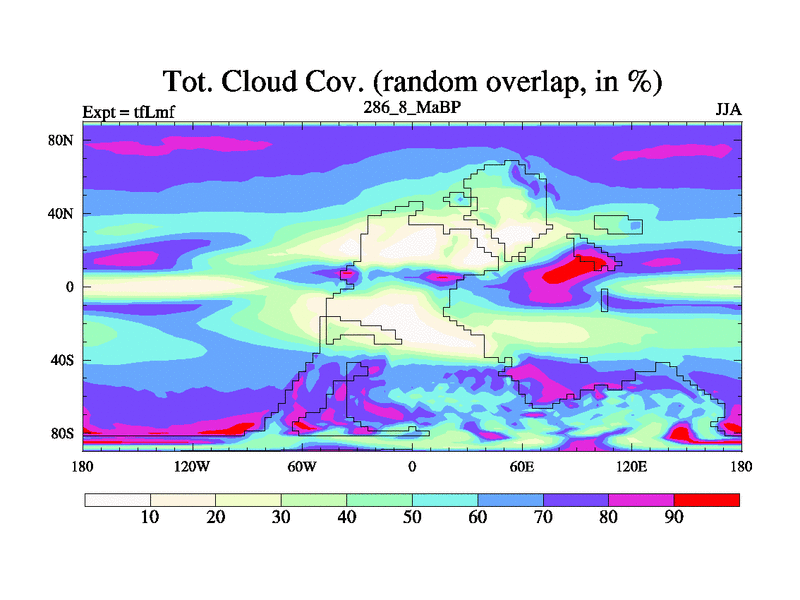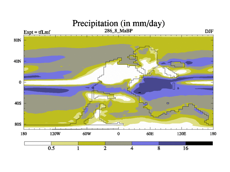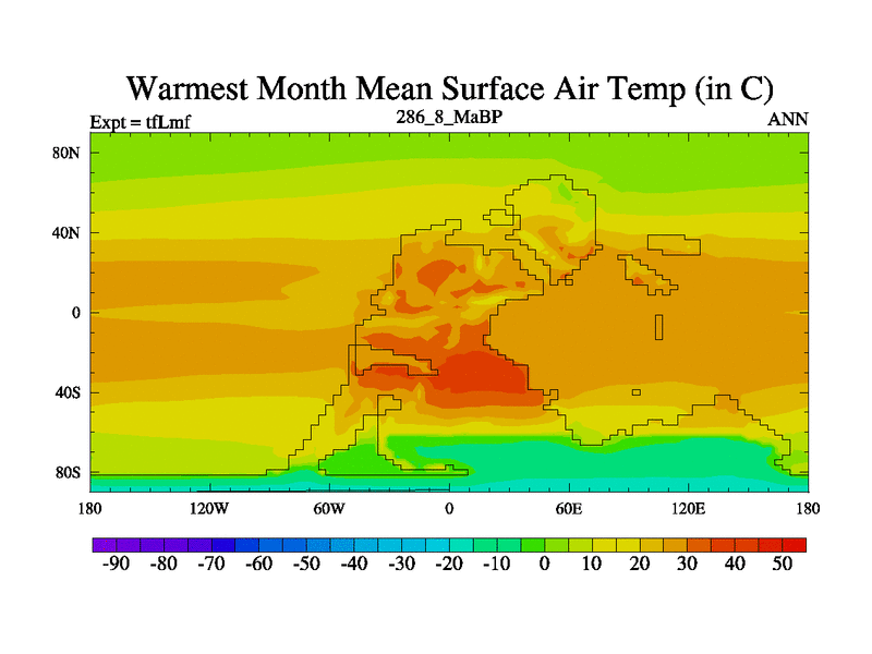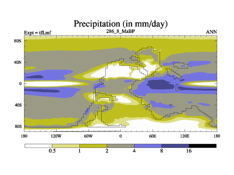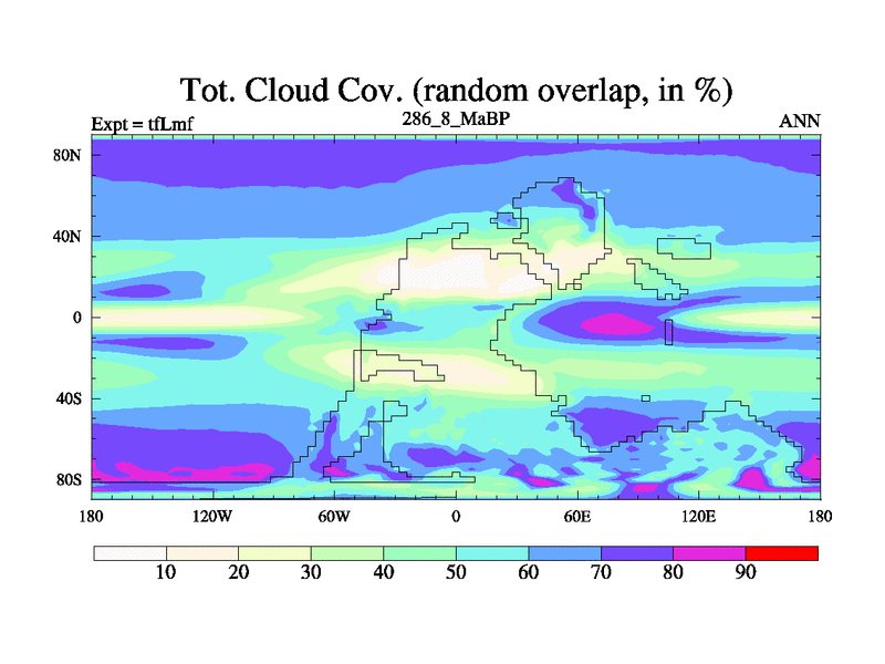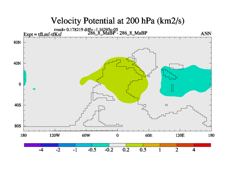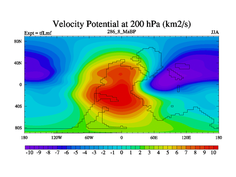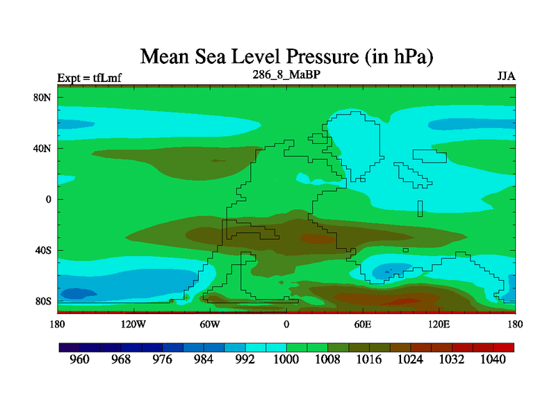 This is the 286.8 Ma simulation using the Scotese palaeogeographies and revised CCN etc. This version has islands and smoothing and desert albedo included. Tuned CO2 to give Scotese temperatures. Started from end of tfKsf. With JEDI output.