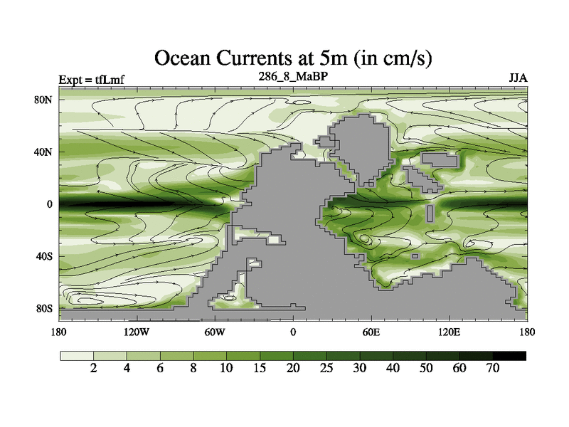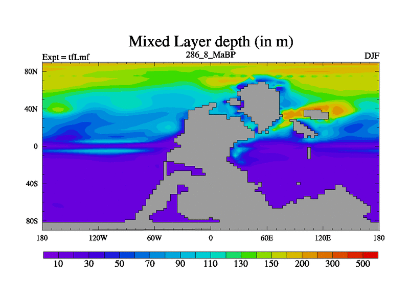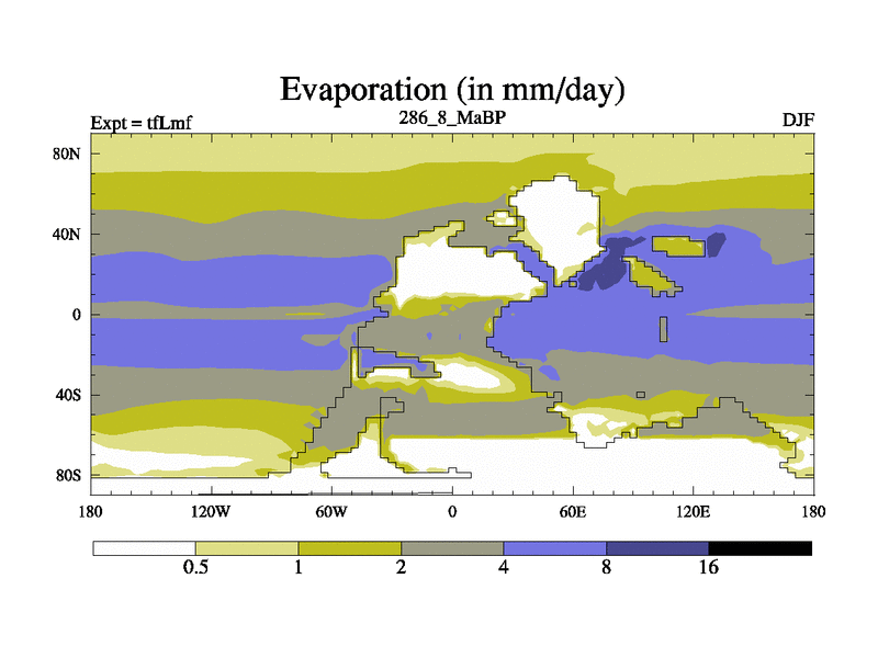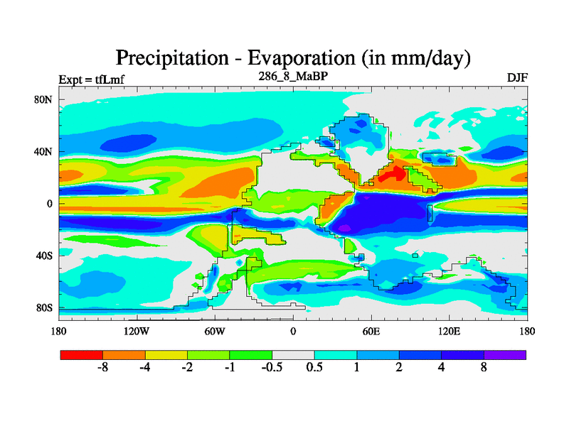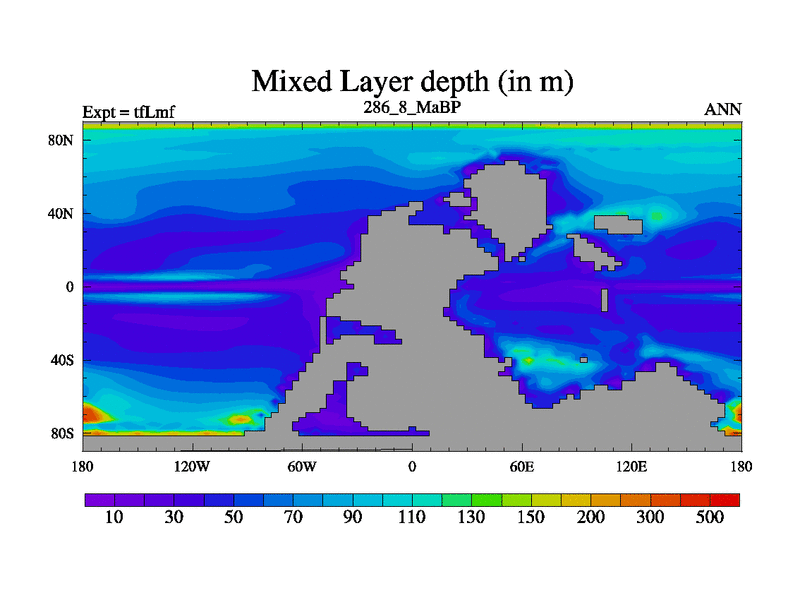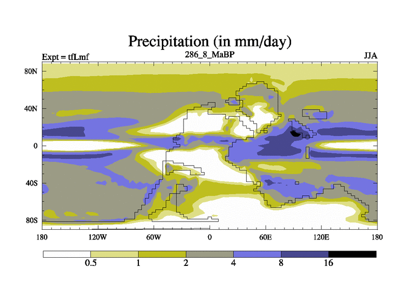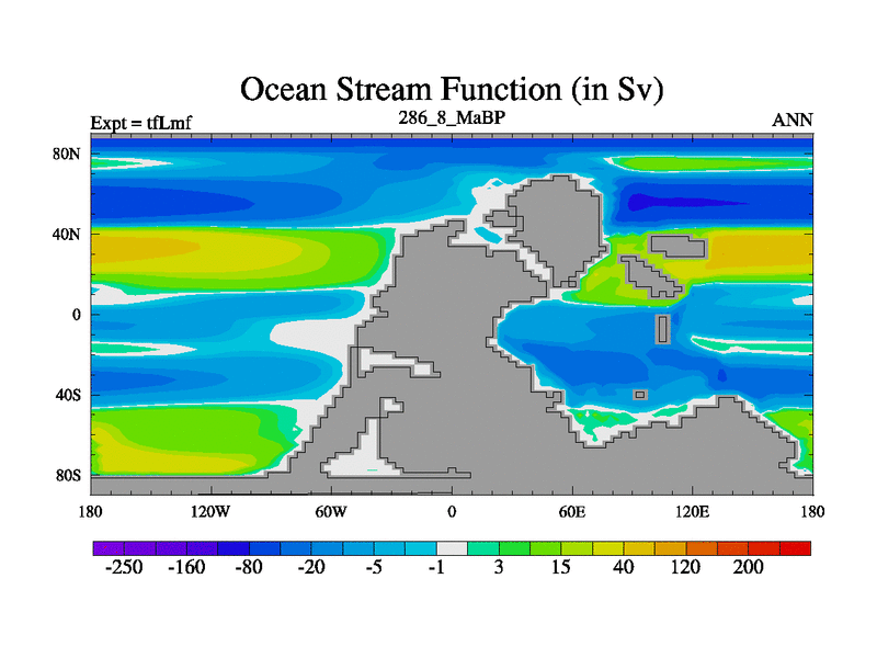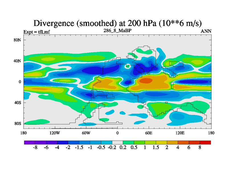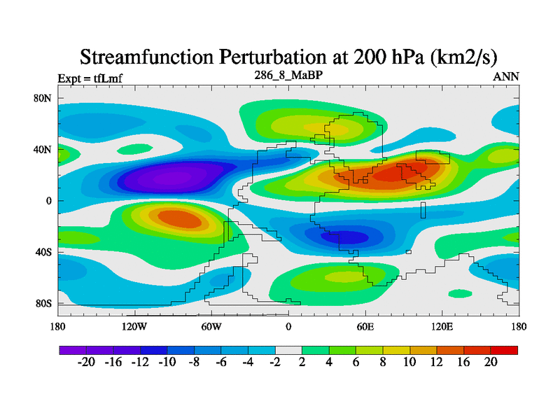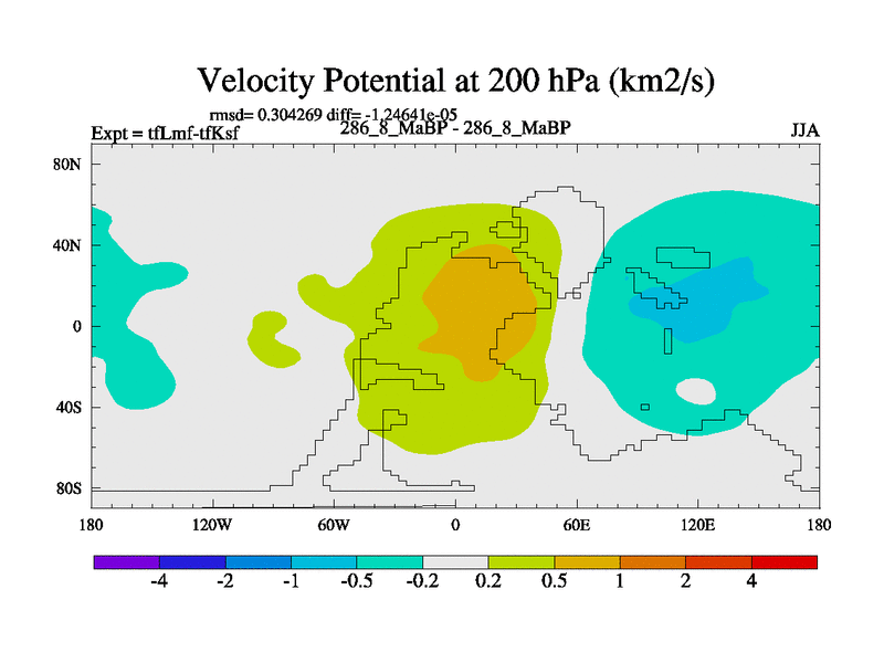 This is the 286.8 Ma simulation using the Scotese palaeogeographies and revised CCN etc. This version has islands and smoothing and desert albedo included. Tuned CO2 to give Scotese temperatures. Started from end of tfKsf. With JEDI output.