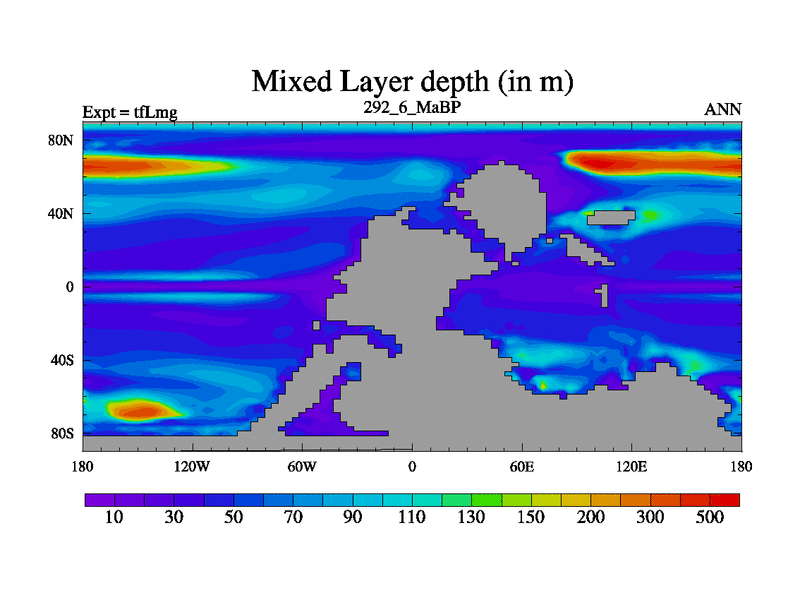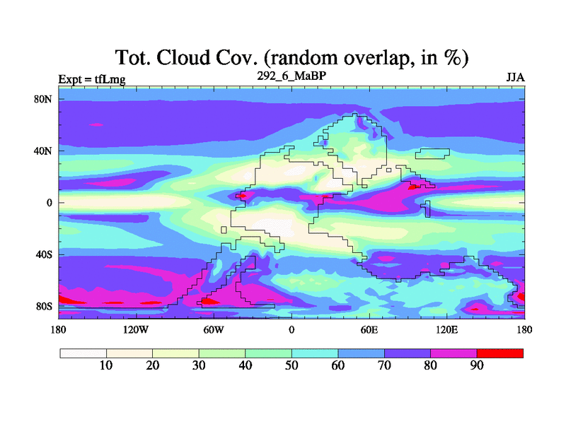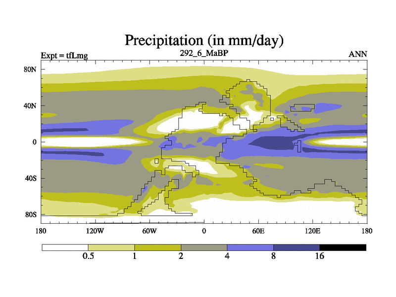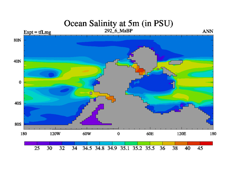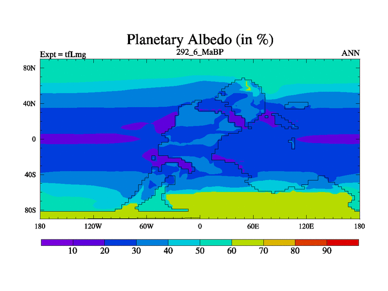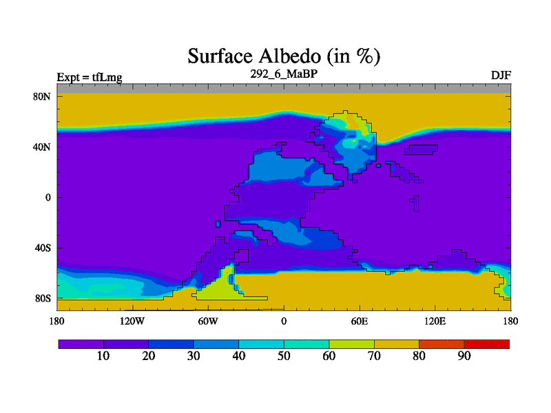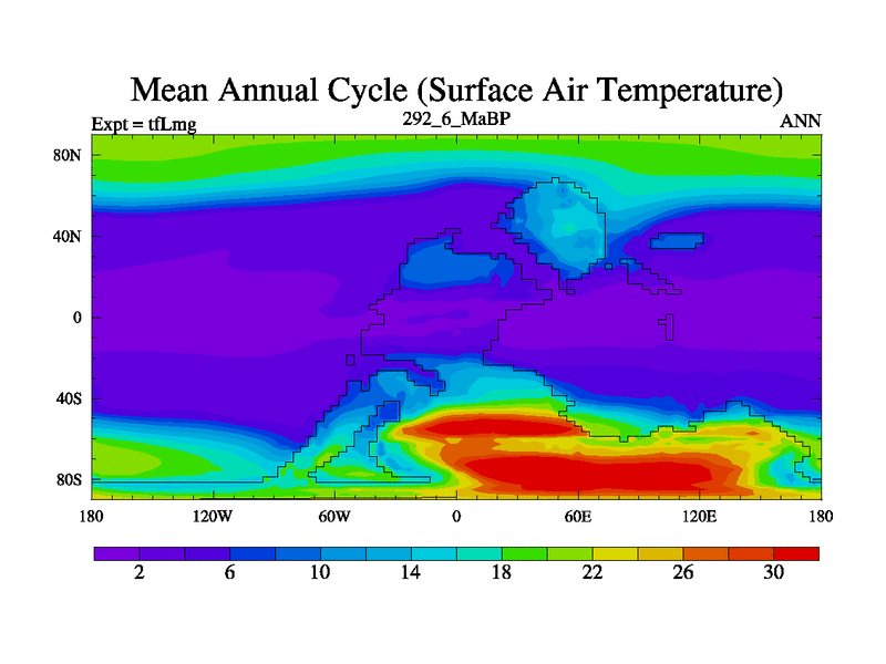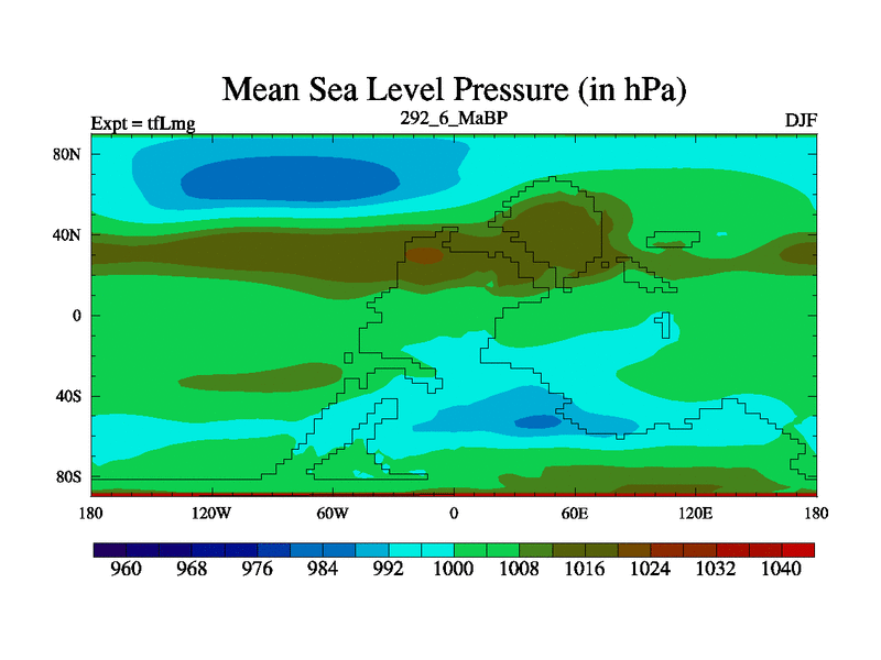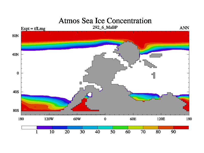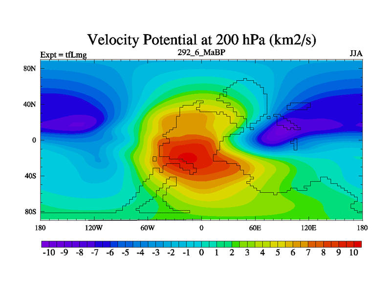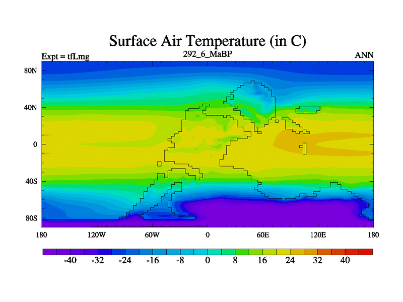 This is the 292.6 Ma simulation using the Scotese palaeogeographies and revised CCN etc. This version has islands and smoothing and desert albedo included. Tuned CO2 to give Scotese temperatures. Started from end of tfKsg. With JEDI output.