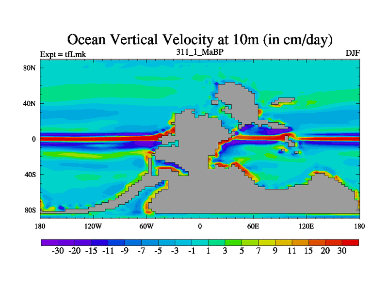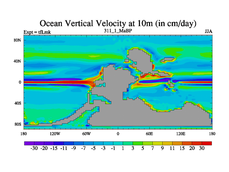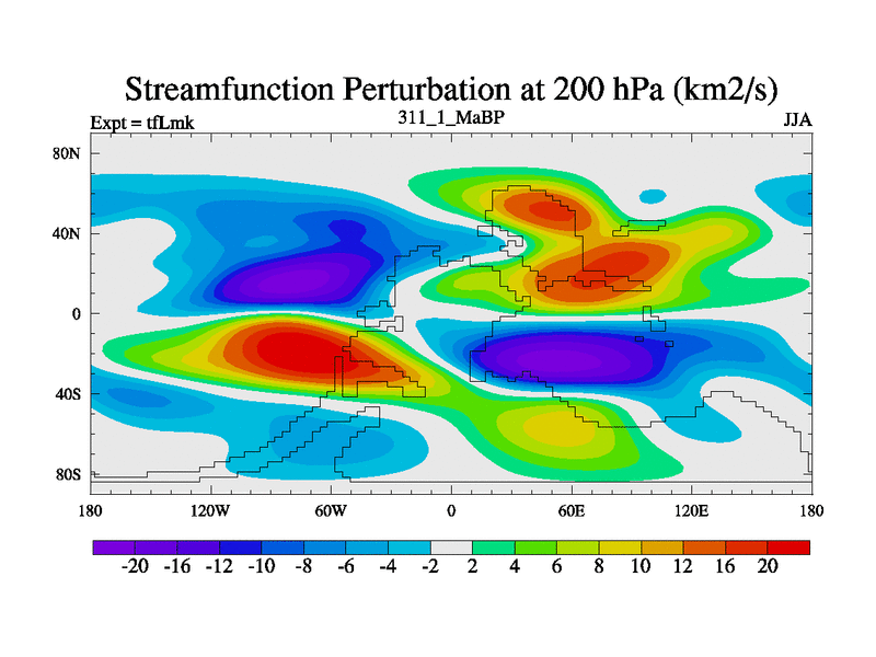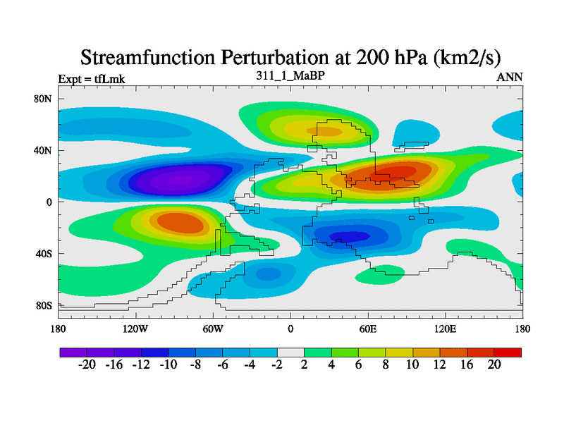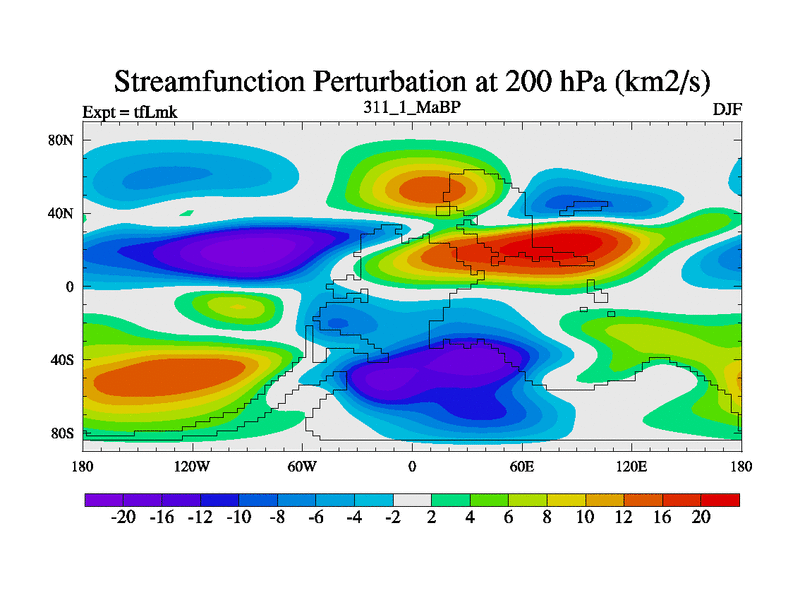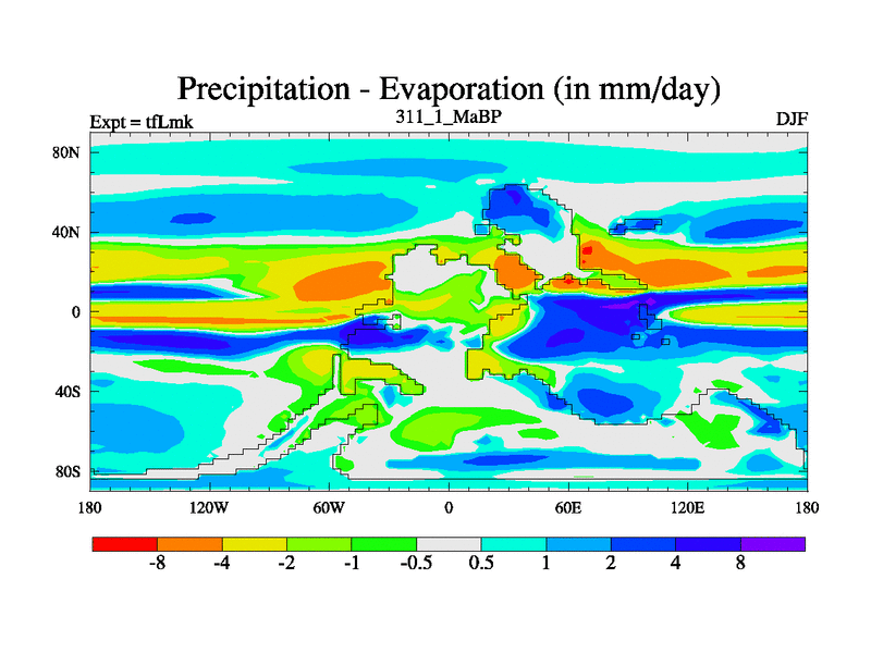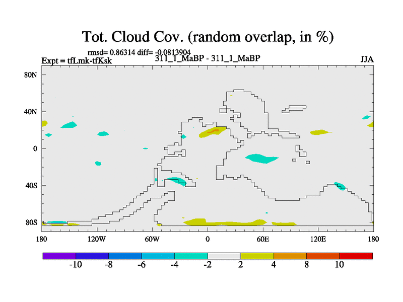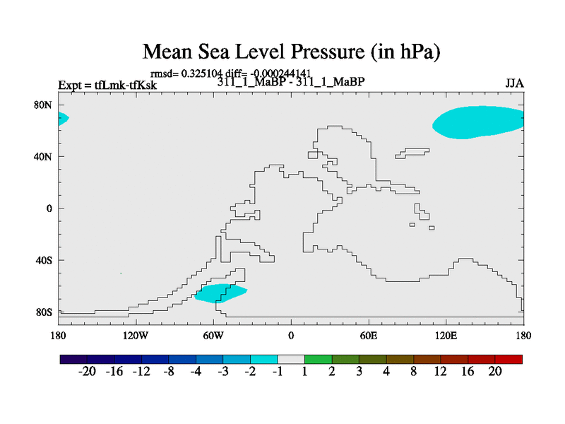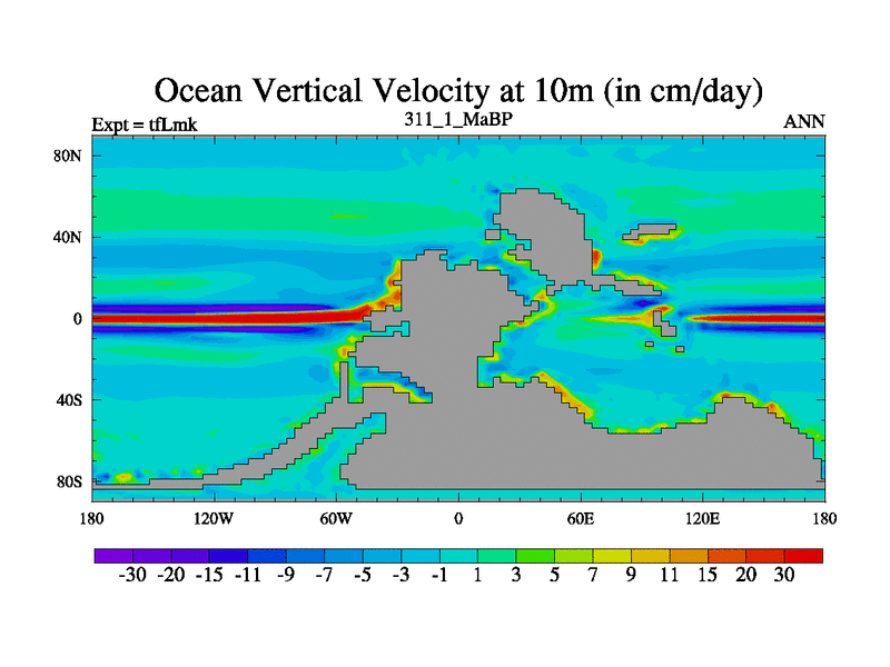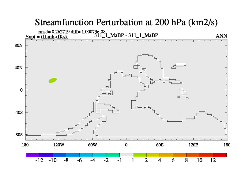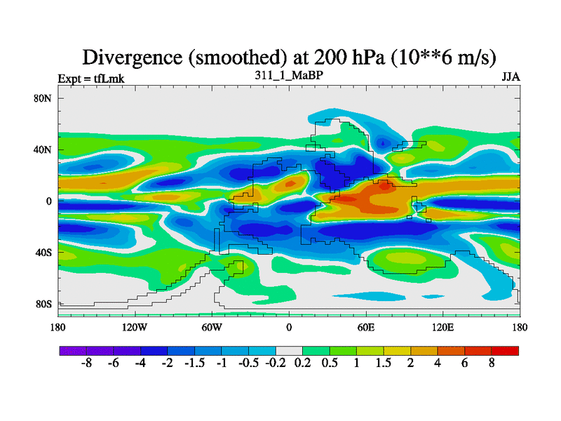 This is the 311.1 Ma simulation using the Scotese palaeogeographies and revised CCN etc. This version has islands and smoothing and desert albedo included. Tuned CO2 to give Scotese temperatures. Started from end of tfKsk. With JEDI output.