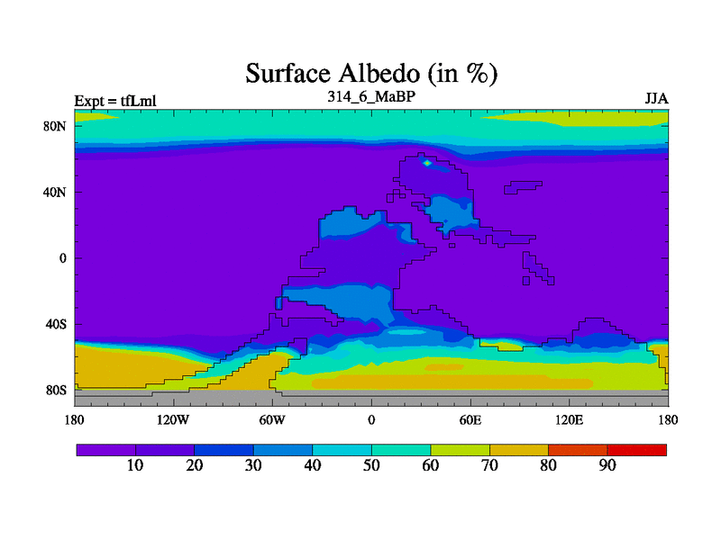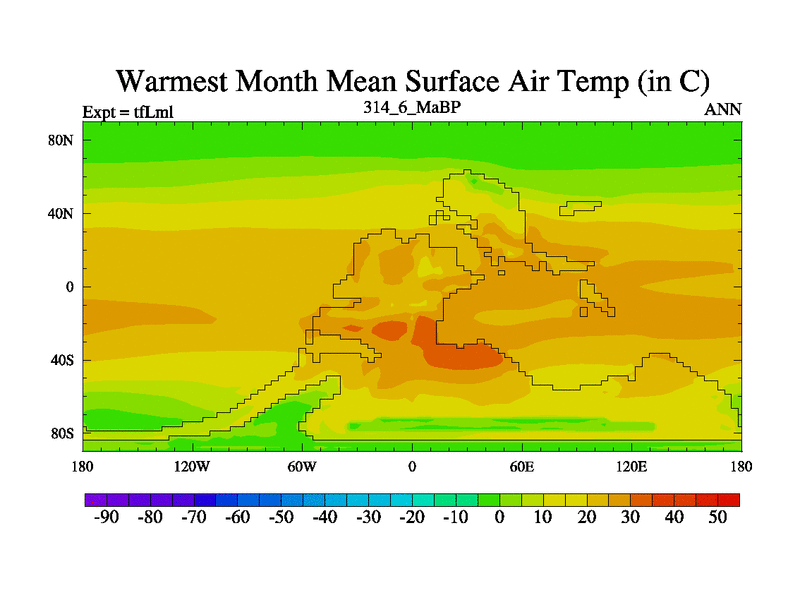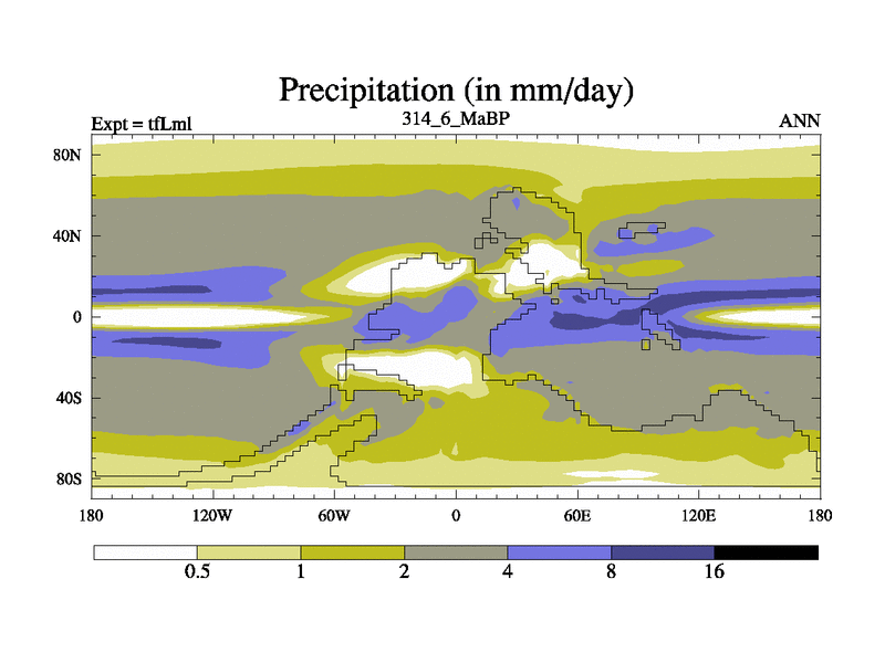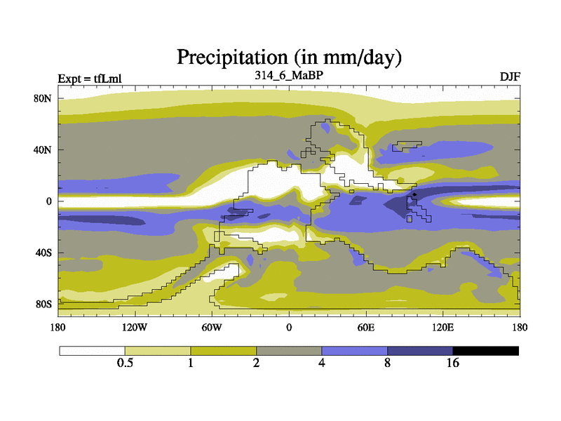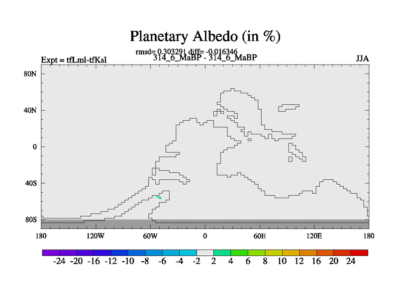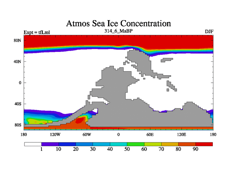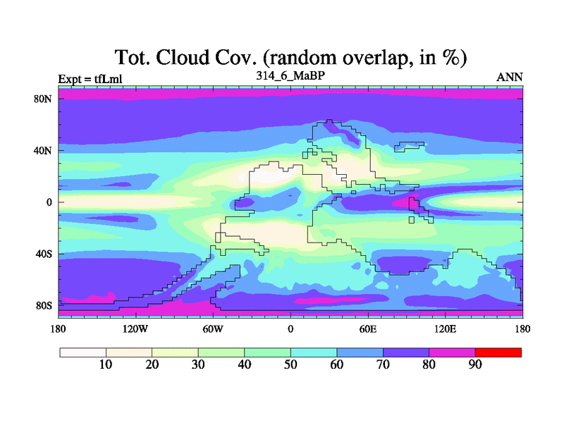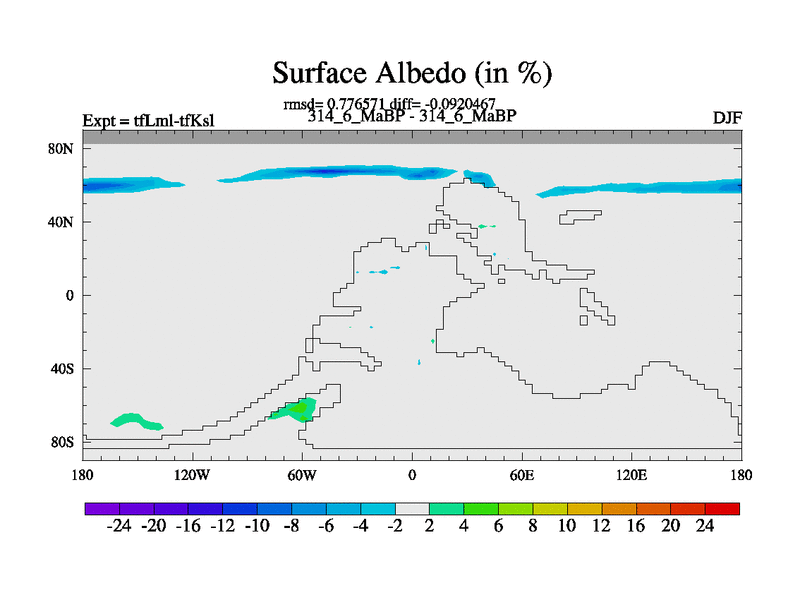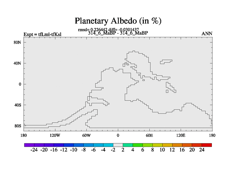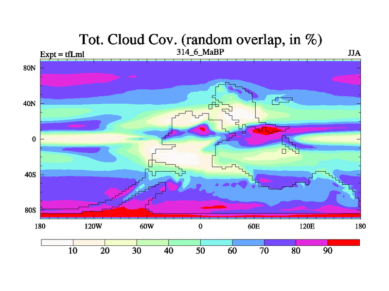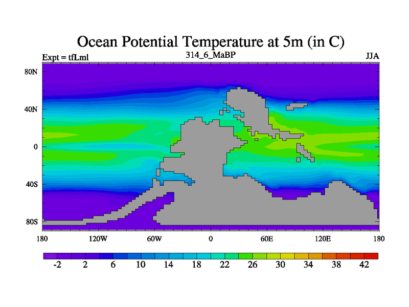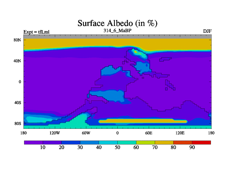 This is the 314.6 Ma simulation using the Scotese palaeogeographies and revised CCN etc. This version has islands and smoothing and desert albedo included. Tuned CO2 to give Scotese temperatures. Started from end of tfKsl. With JEDI output.
