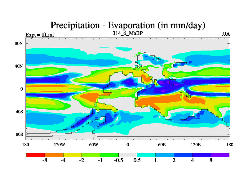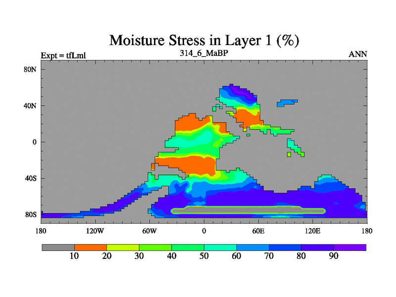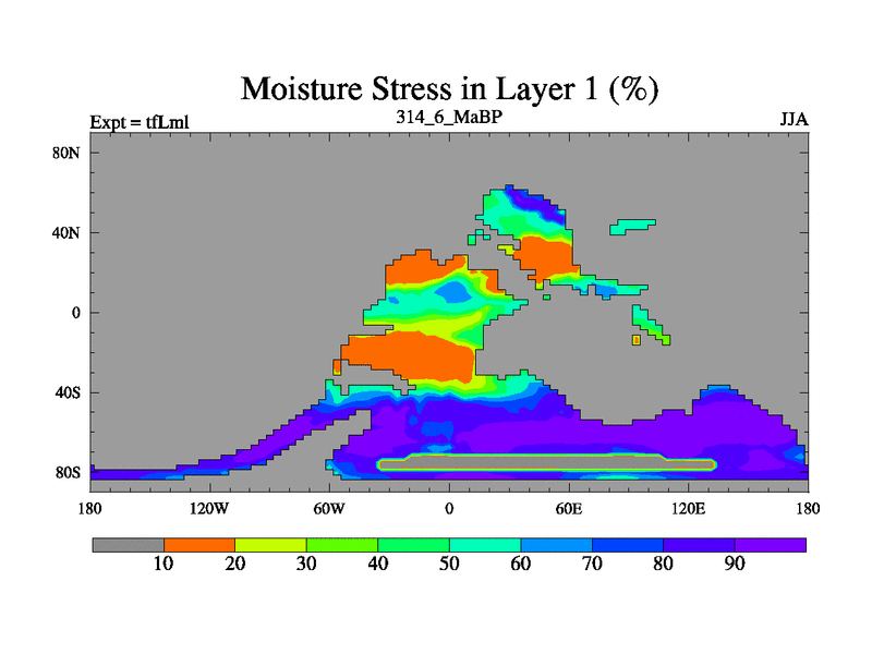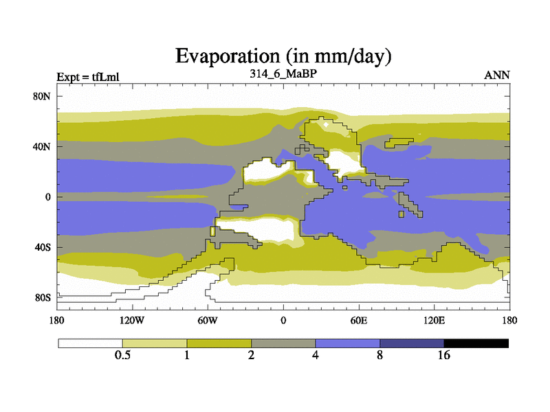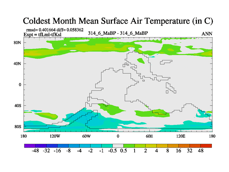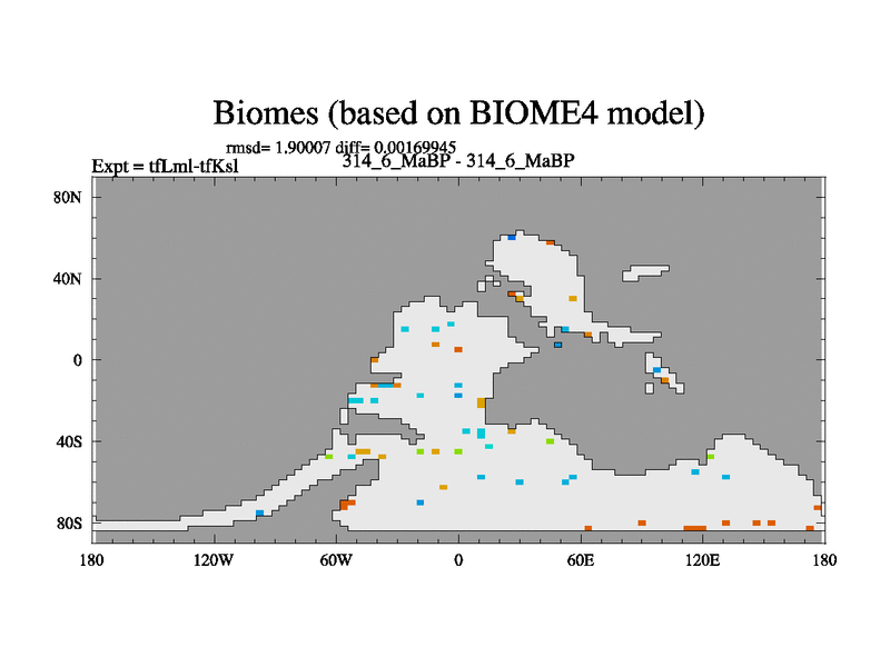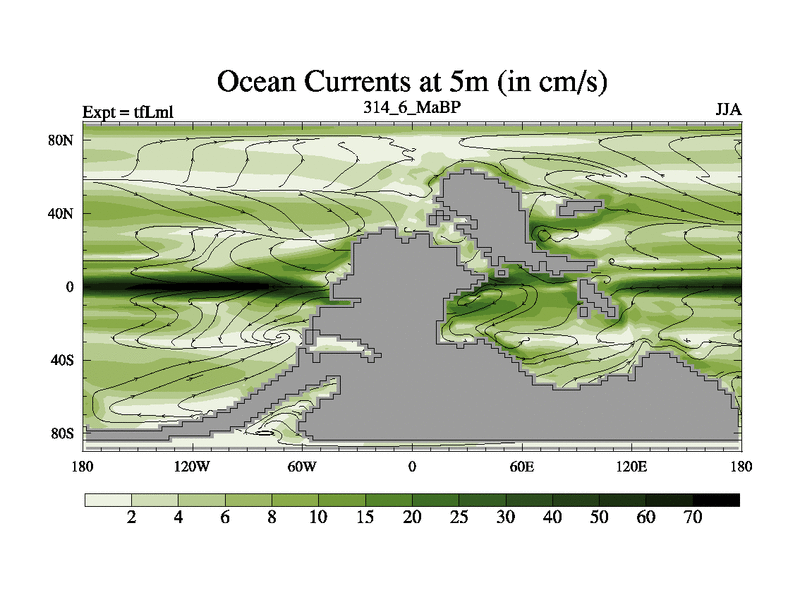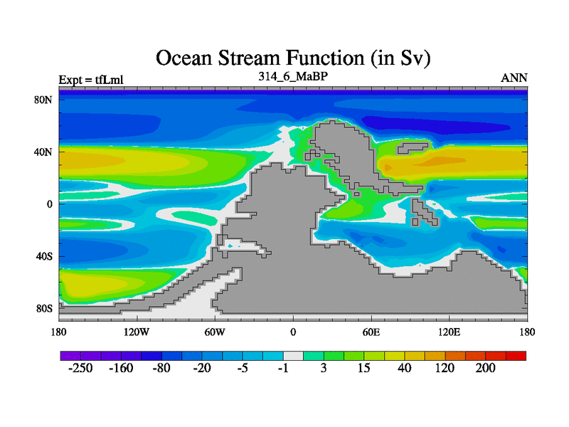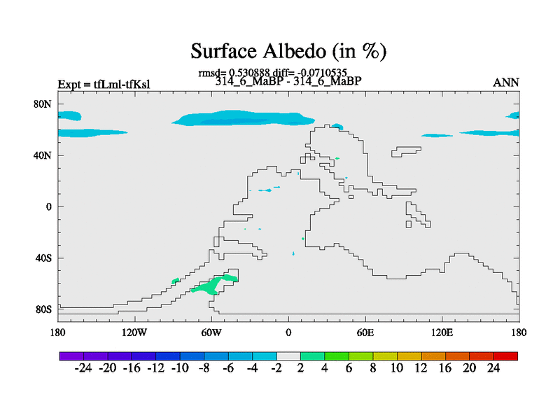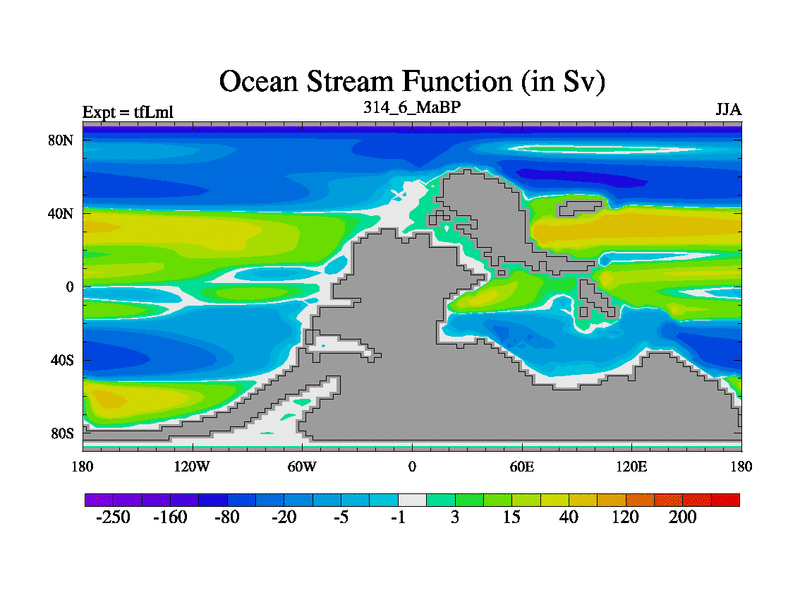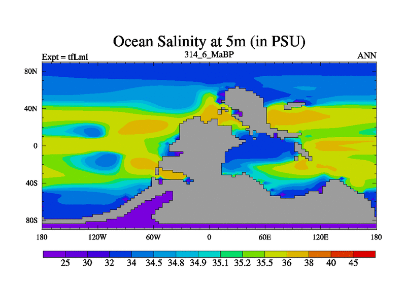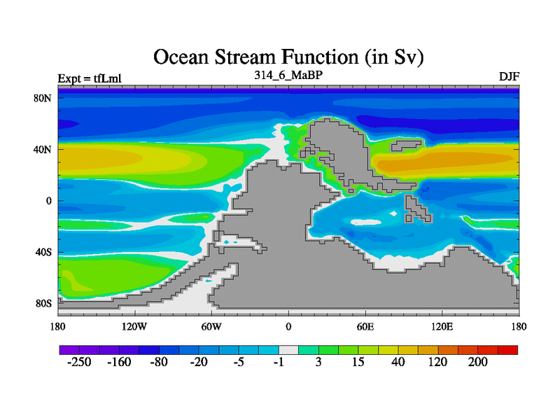 This is the 314.6 Ma simulation using the Scotese palaeogeographies and revised CCN etc. This version has islands and smoothing and desert albedo included. Tuned CO2 to give Scotese temperatures. Started from end of tfKsl. With JEDI output.