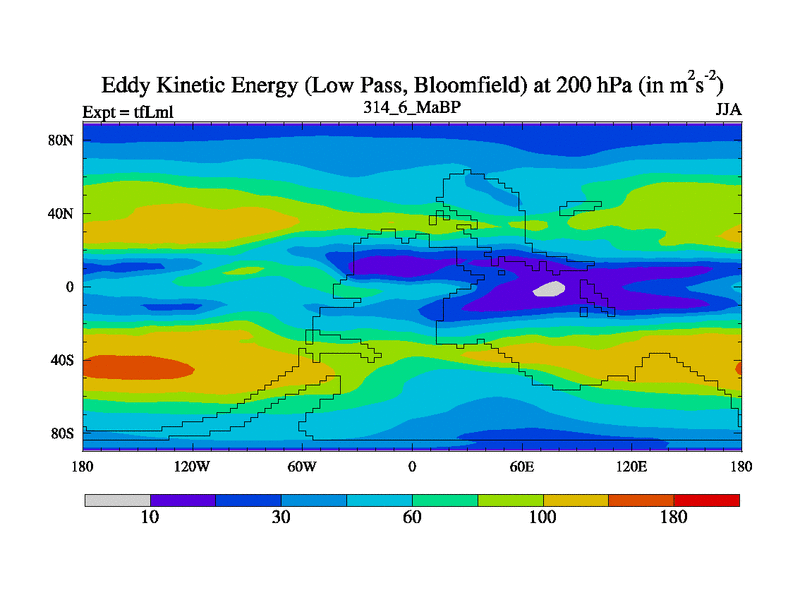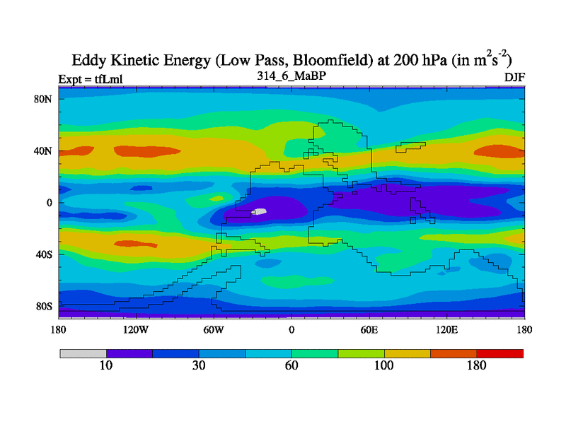 Low Pass Eddy Kinetic Energy at 200 hPa