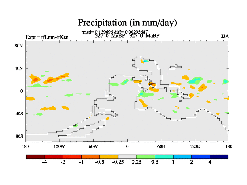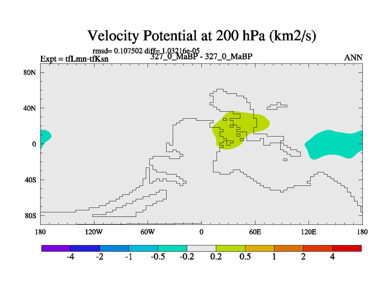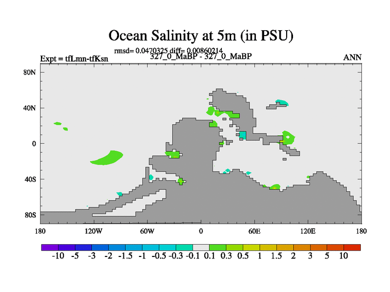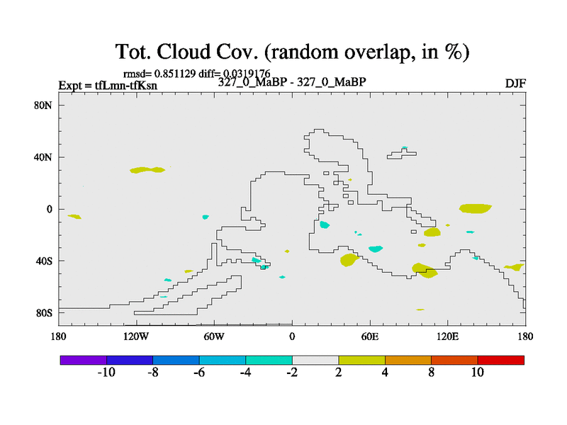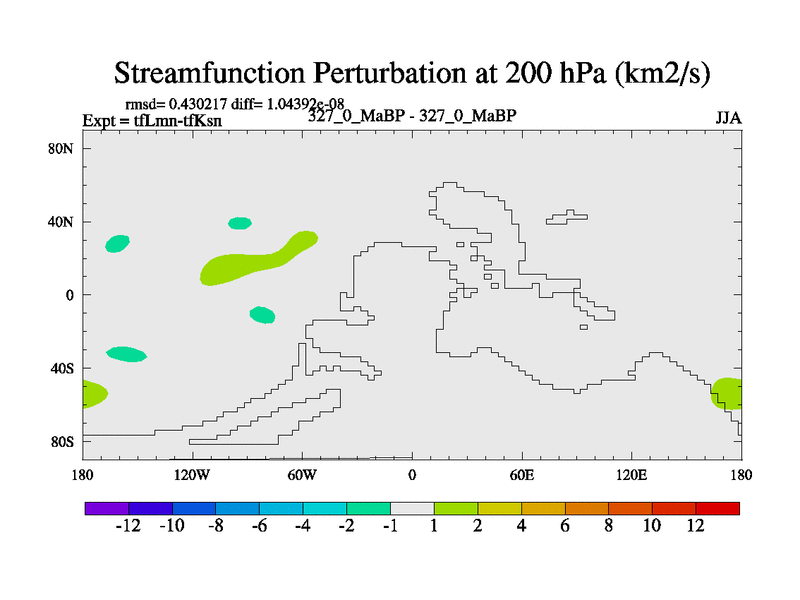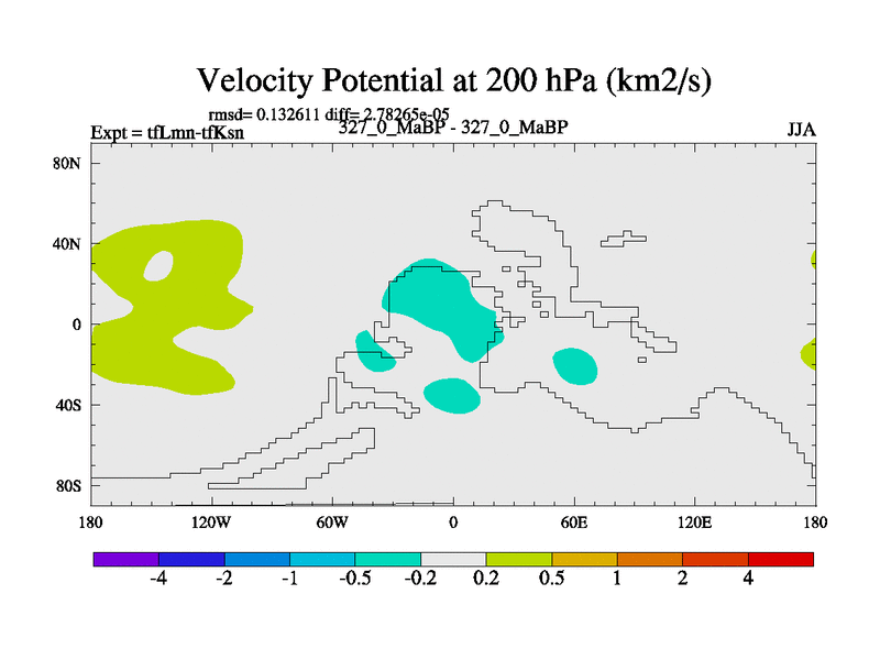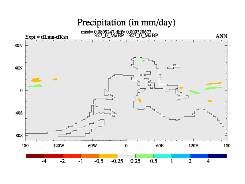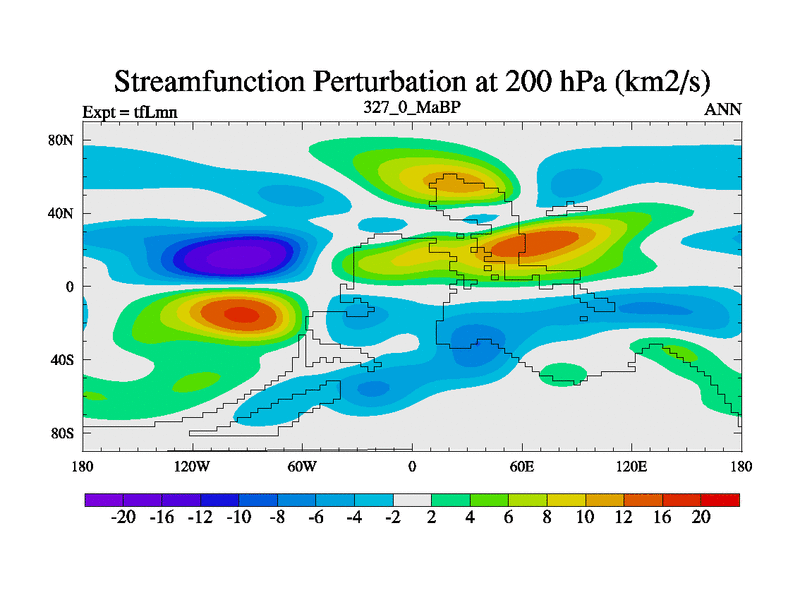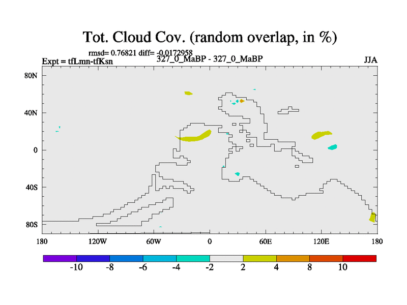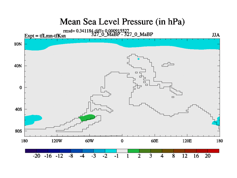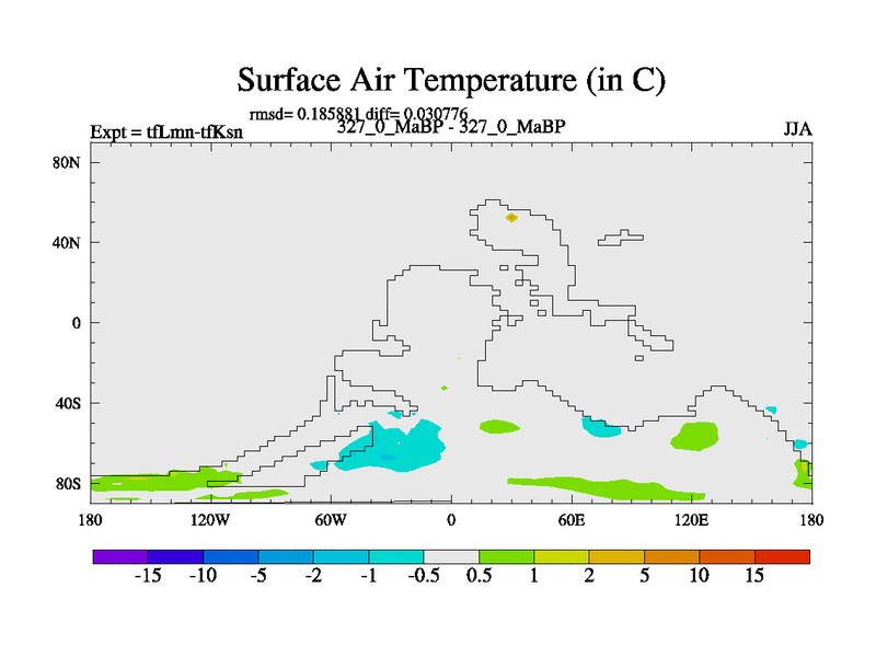 This is the 327.0 Ma simulation using the Scotese palaeogeographies and revised CCN etc. This version has islands and smoothing and desert albedo included. Tuned CO2 to give Scotese temperatures. Started from end of tfKsn. With JEDI output.