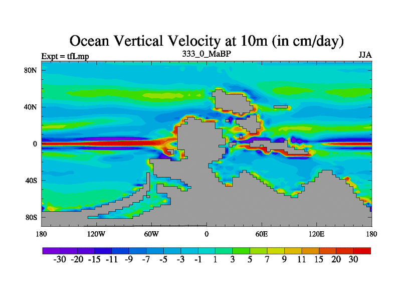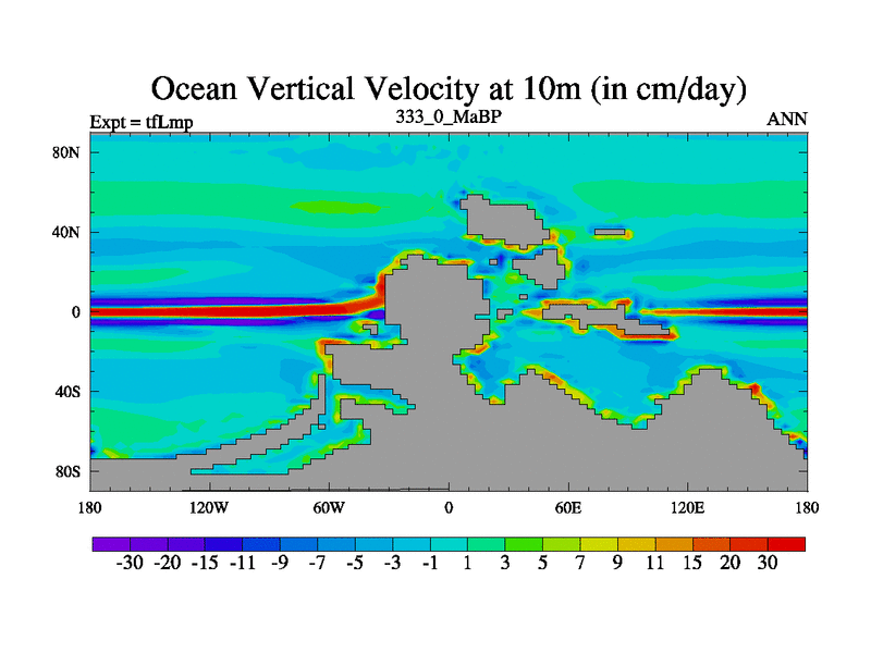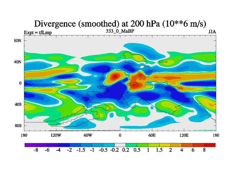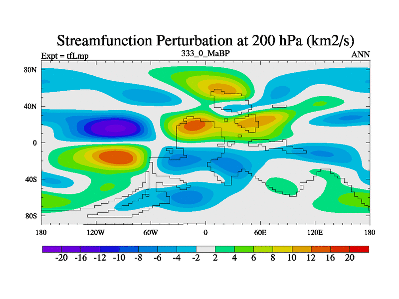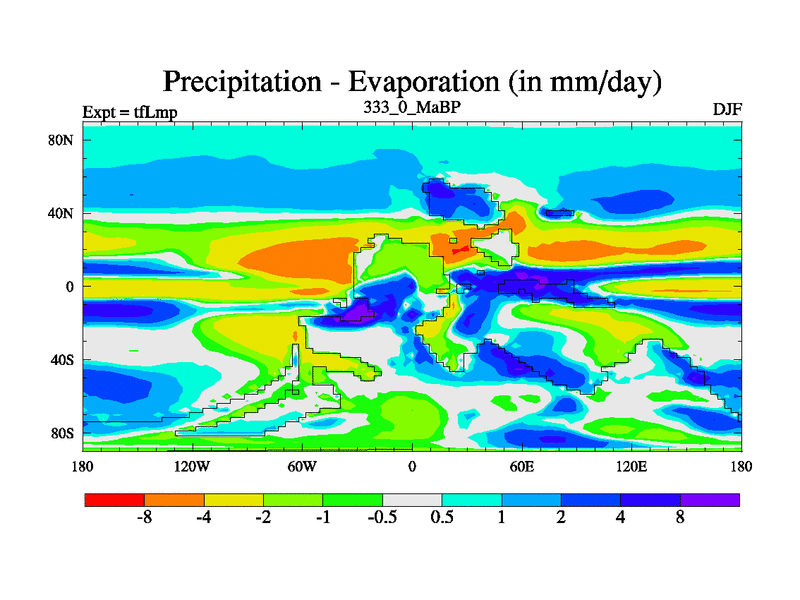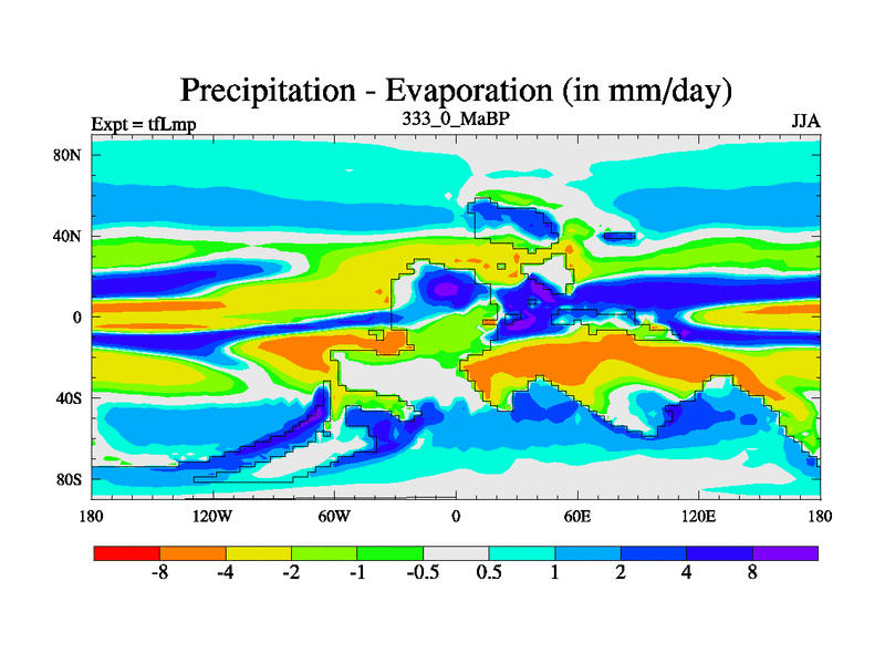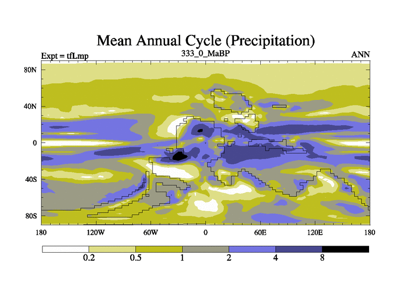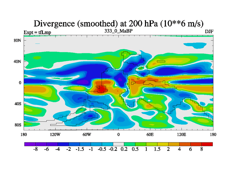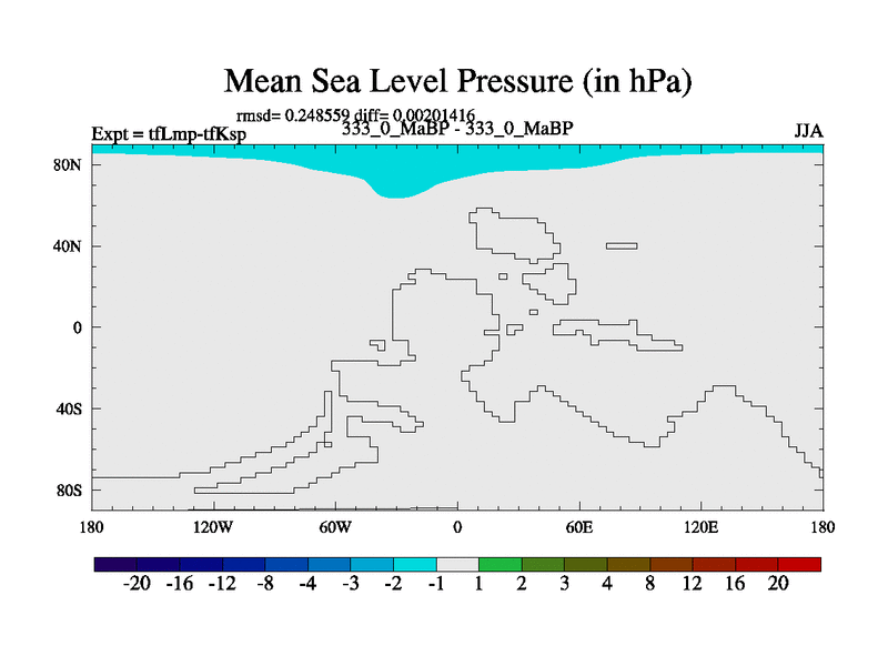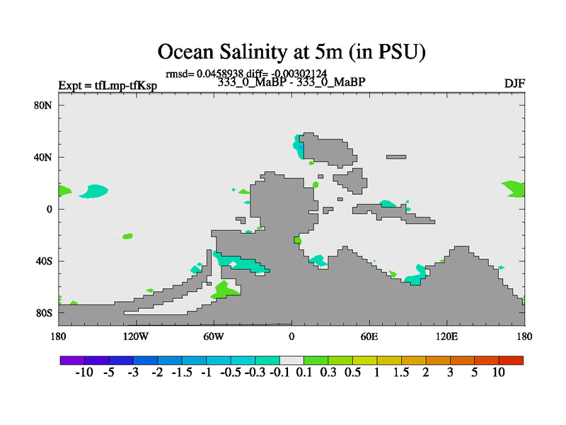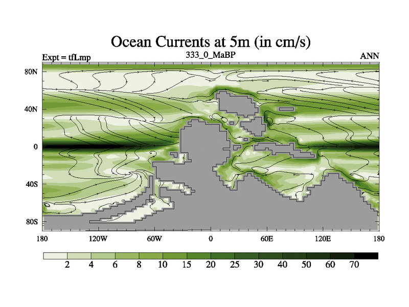 This is the 333.0 Ma simulation using the Scotese palaeogeographies and revised CCN etc. This version has islands and smoothing and desert albedo included. Tuned CO2 to give Scotese temperatures. Started from end of tfKsp. With JEDI output.