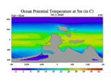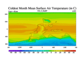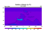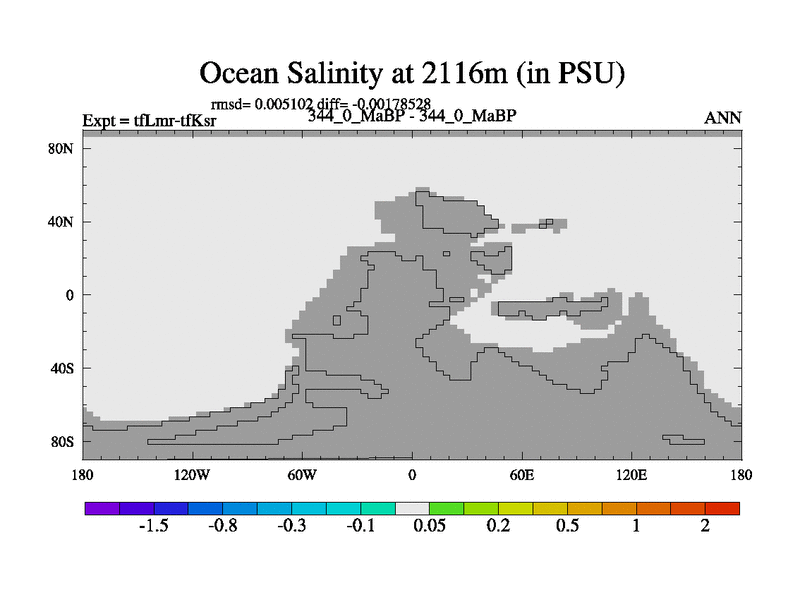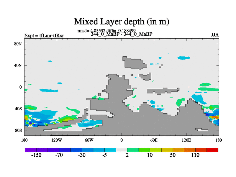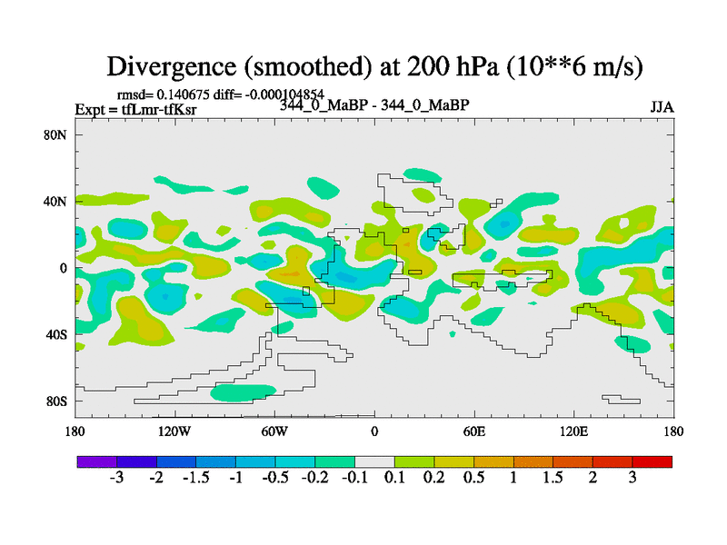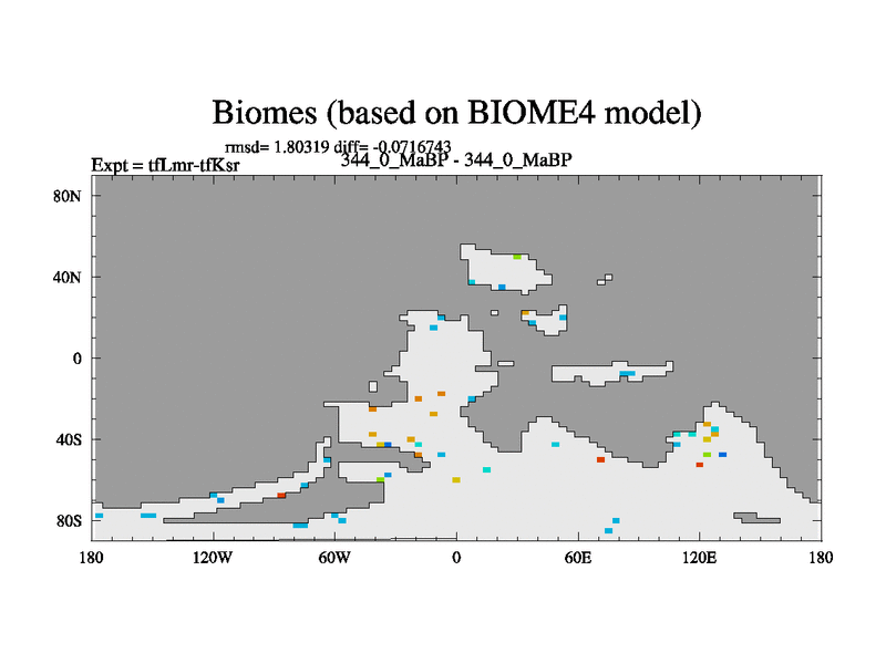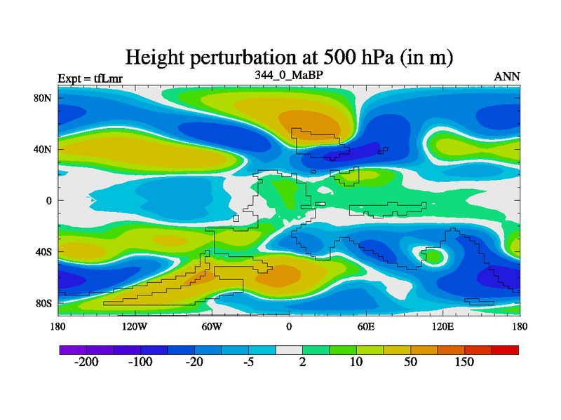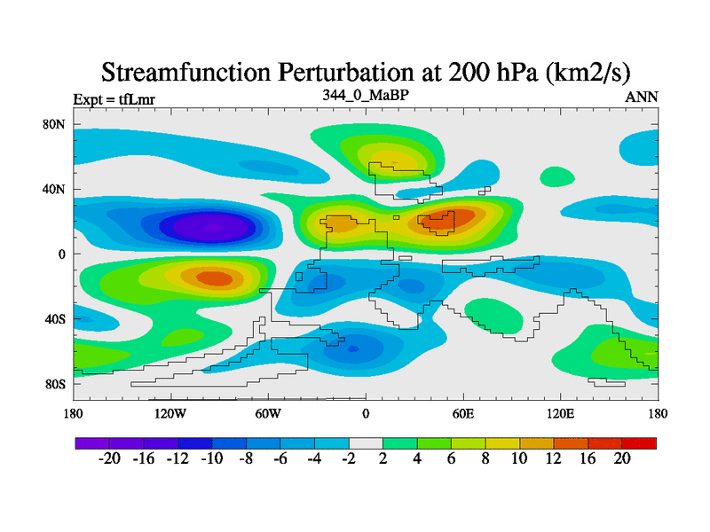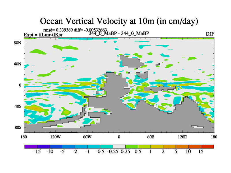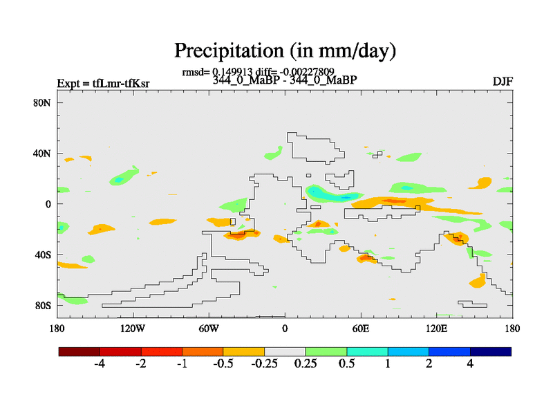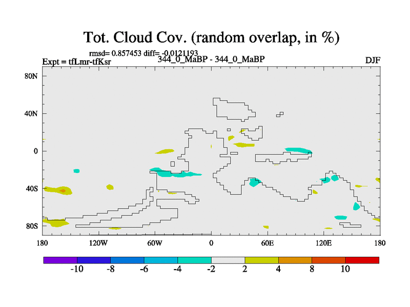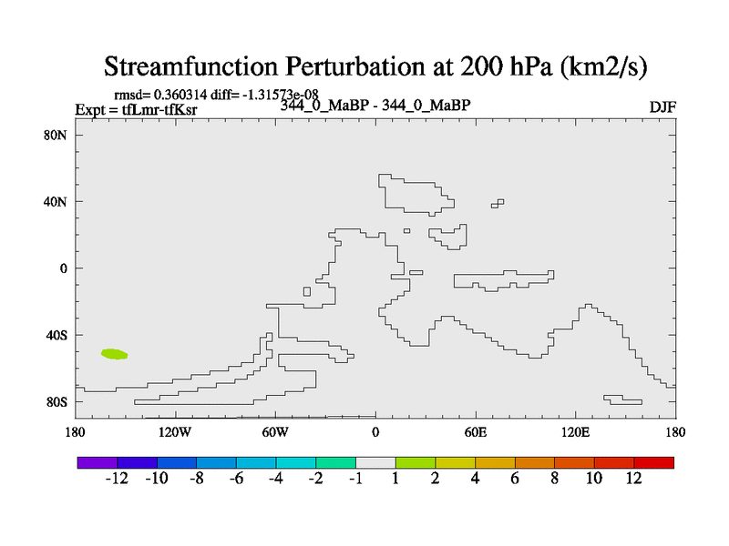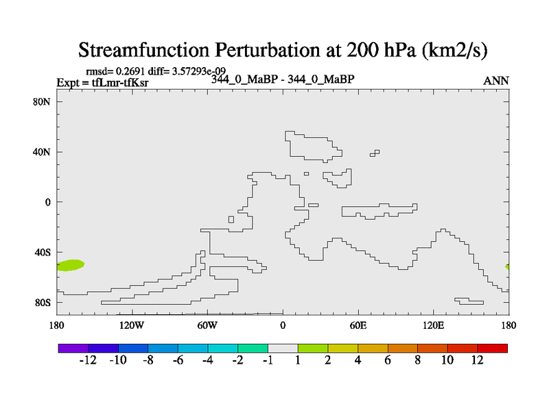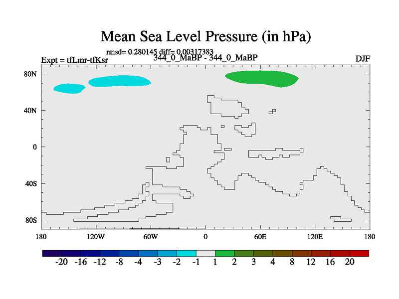 This is the 344.0 Ma simulation using the Scotese palaeogeographies and revised CCN etc. This version has islands and smoothing and desert albedo included. Tuned CO2 to give Scotese temperatures. Started from end of tfKsr. With JEDI output.