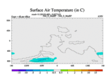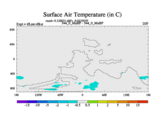 Scientifically as benchmark except using water age update, dark respiration, salinity conservation and revised ozone. Also using new orbital and solar update, and outputting leaf CO2. This version has islands included and atmospheric smoothing and desert albedo. Tuned CO2 to give Scotese temperatures. Started from end of tfKsr. With JEDI output.