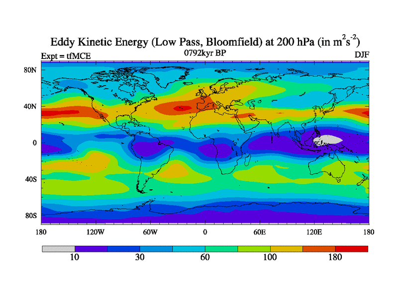 Low Pass Eddy Kinetic Energy at 200 hPa