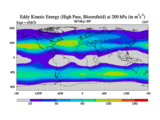 Low Pass Eddy Kinetic Energy at 200 hPa