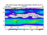 Low Pass Eddy Kinetic Energy at 200 hPa