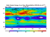 Low Pass Eddy Kinetic Energy at 200 hPa