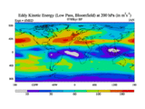 Low Pass Eddy Kinetic Energy at 200 hPa