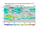 Low Pass Eddy Kinetic Energy at 200 hPa