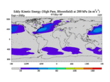Low Pass Eddy Kinetic Energy at 200 hPa