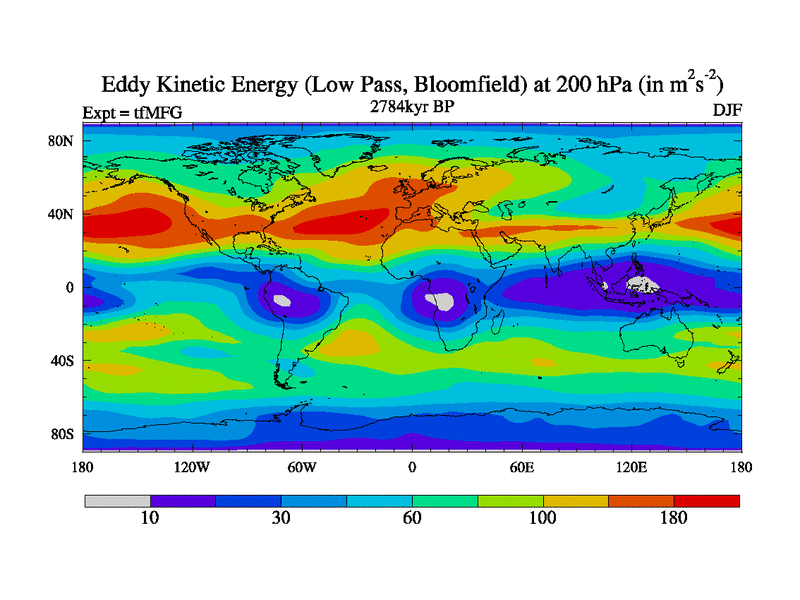Low Pass Eddy Kinetic Energy at 200 hPa