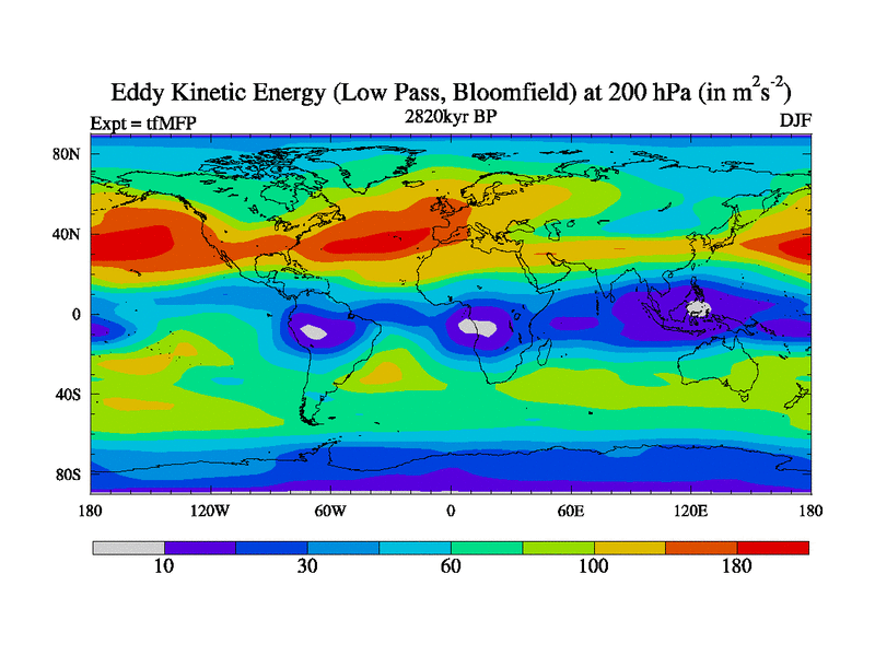Low Pass Eddy Kinetic Energy at 200 hPa