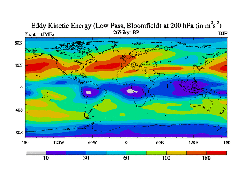 Low Pass Eddy Kinetic Energy at 200 hPa