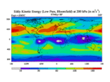 Low Pass Eddy Kinetic Energy at 200 hPa