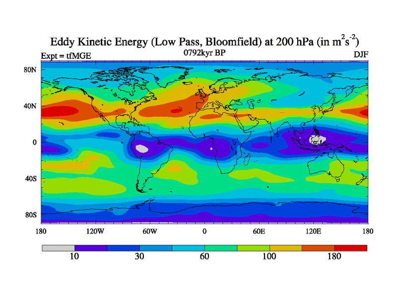 Low Pass Eddy Kinetic Energy at 200 hPa