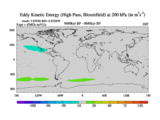 Low Pass Eddy Kinetic Energy at 200 hPa