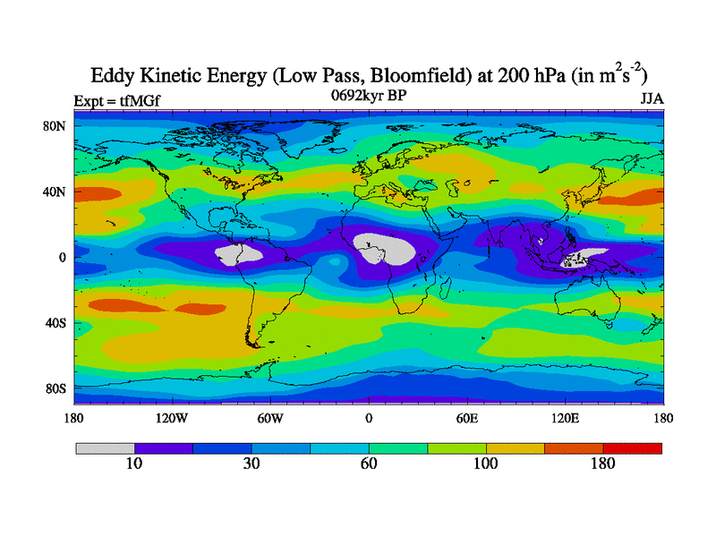 Low Pass Eddy Kinetic Energy at 200 hPa