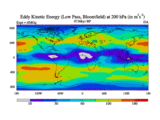 Low Pass Eddy Kinetic Energy at 200 hPa