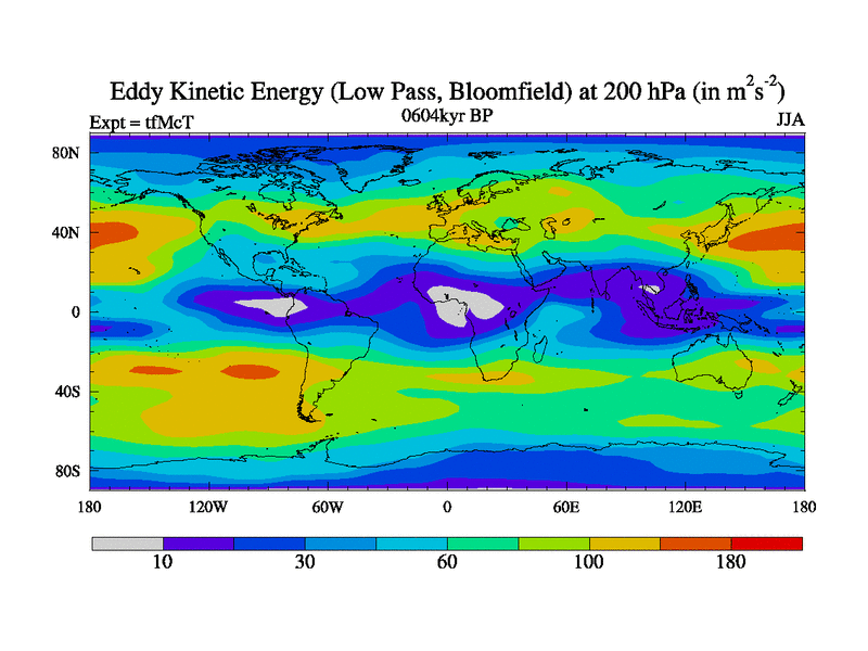 Low Pass Eddy Kinetic Energy at 200 hPa
